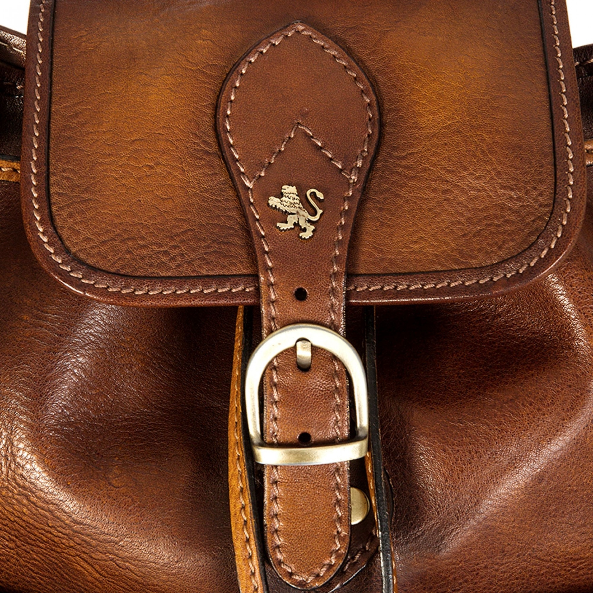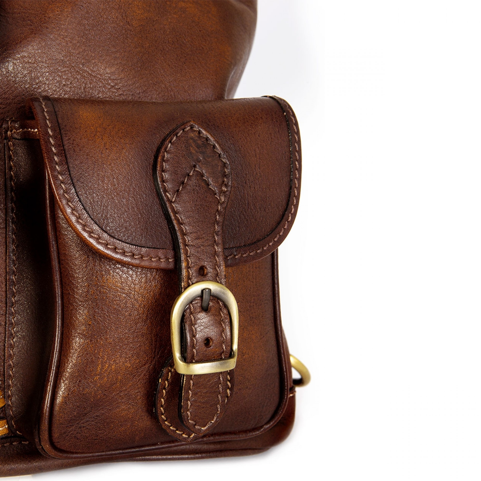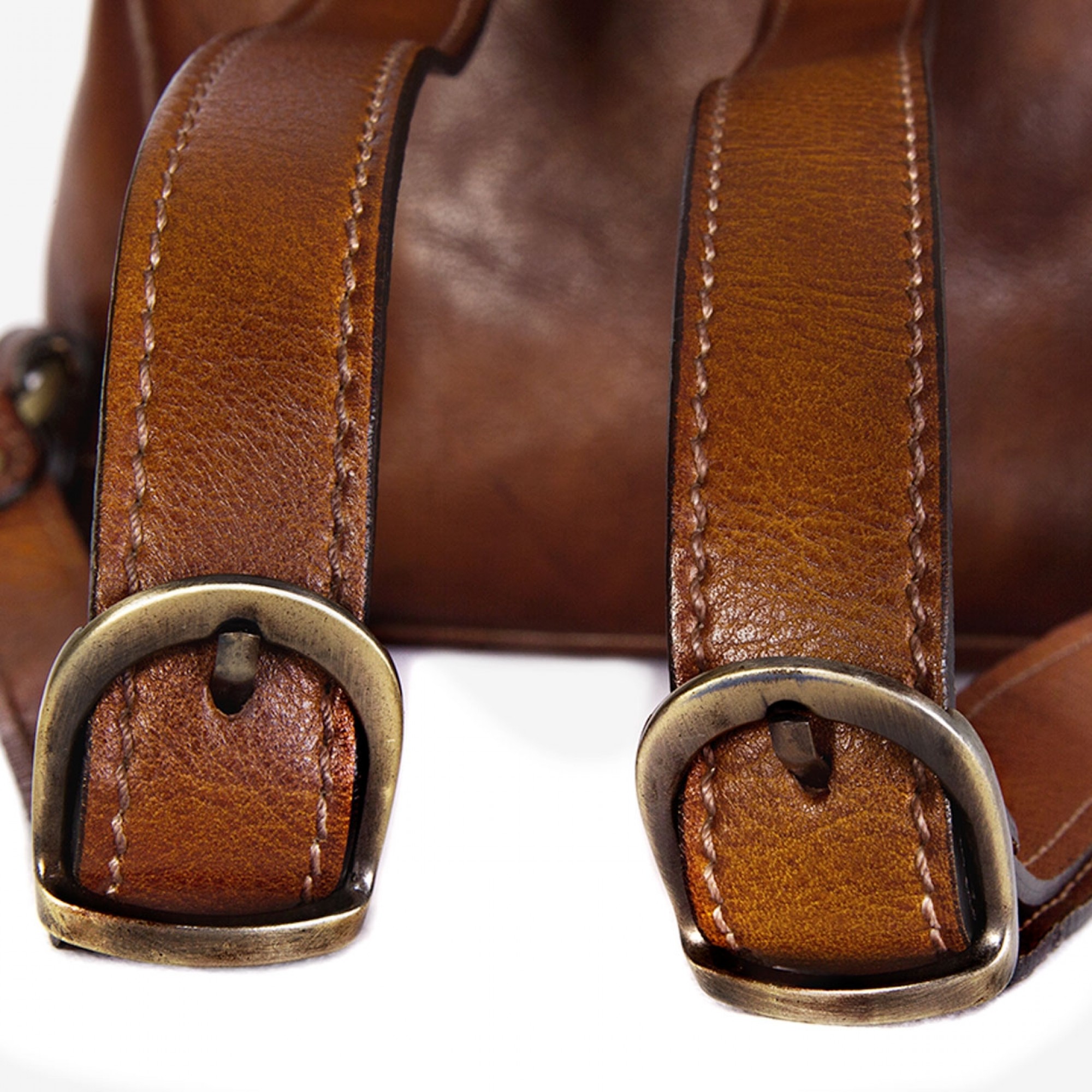Stylish backpack made of full-grain leather obtained through a unique aging tanning method that uses only natural products. The Caporalino backpack has the peculiarity of aging over time, gaining more and more charm, day after day.