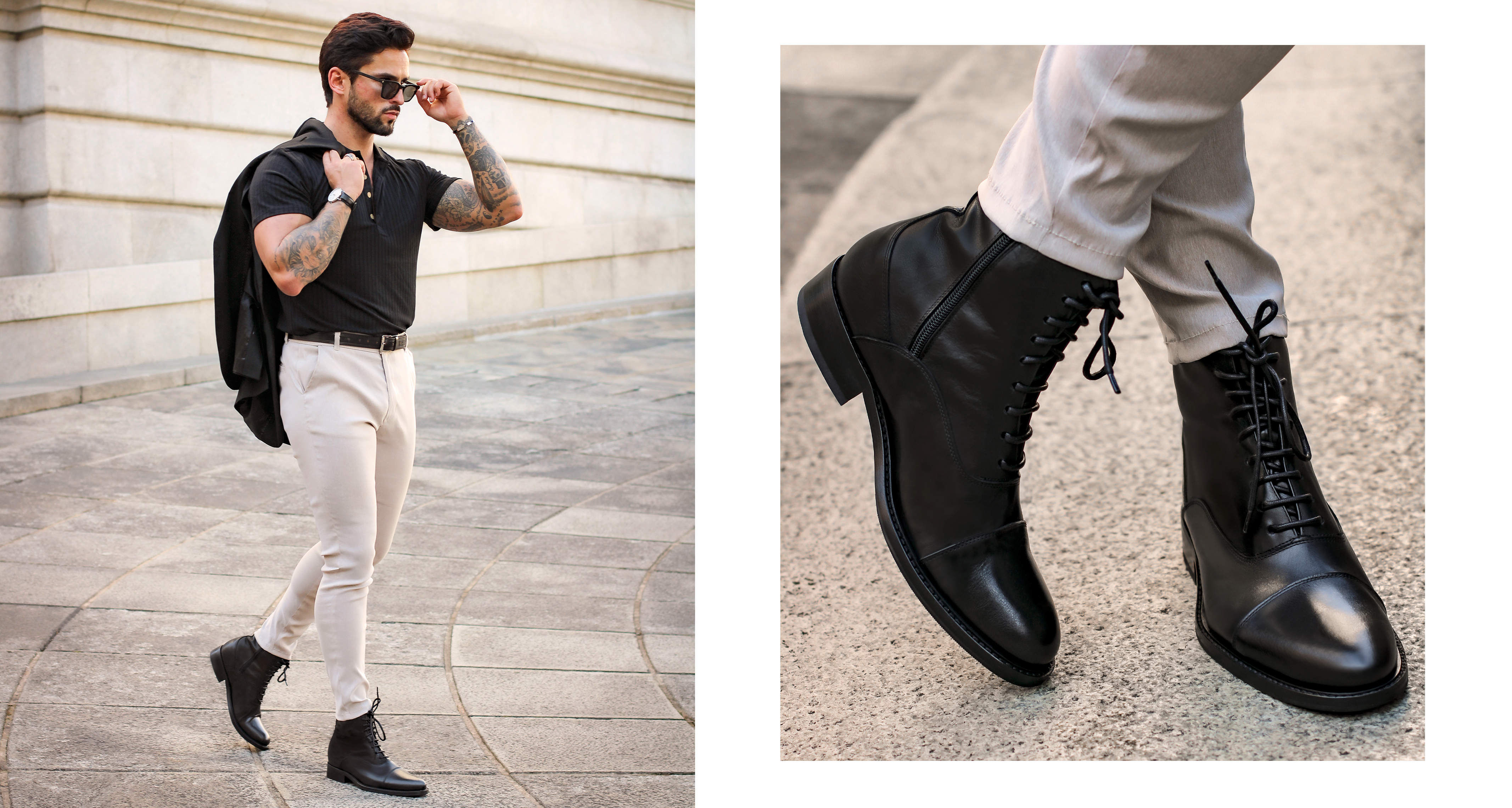 Sooner or later, every man faces the moment of wearing a black suit. But which shoes should you choose? Classic rules aren’t enough anymore: today you can mix style and height without limiting yourself to plain black lace-ups. With the right shoes for a men’s black suit, you can create original, elegant combinations that make you stand outwhile gaining a few extra inches without sacrificing style. Read more