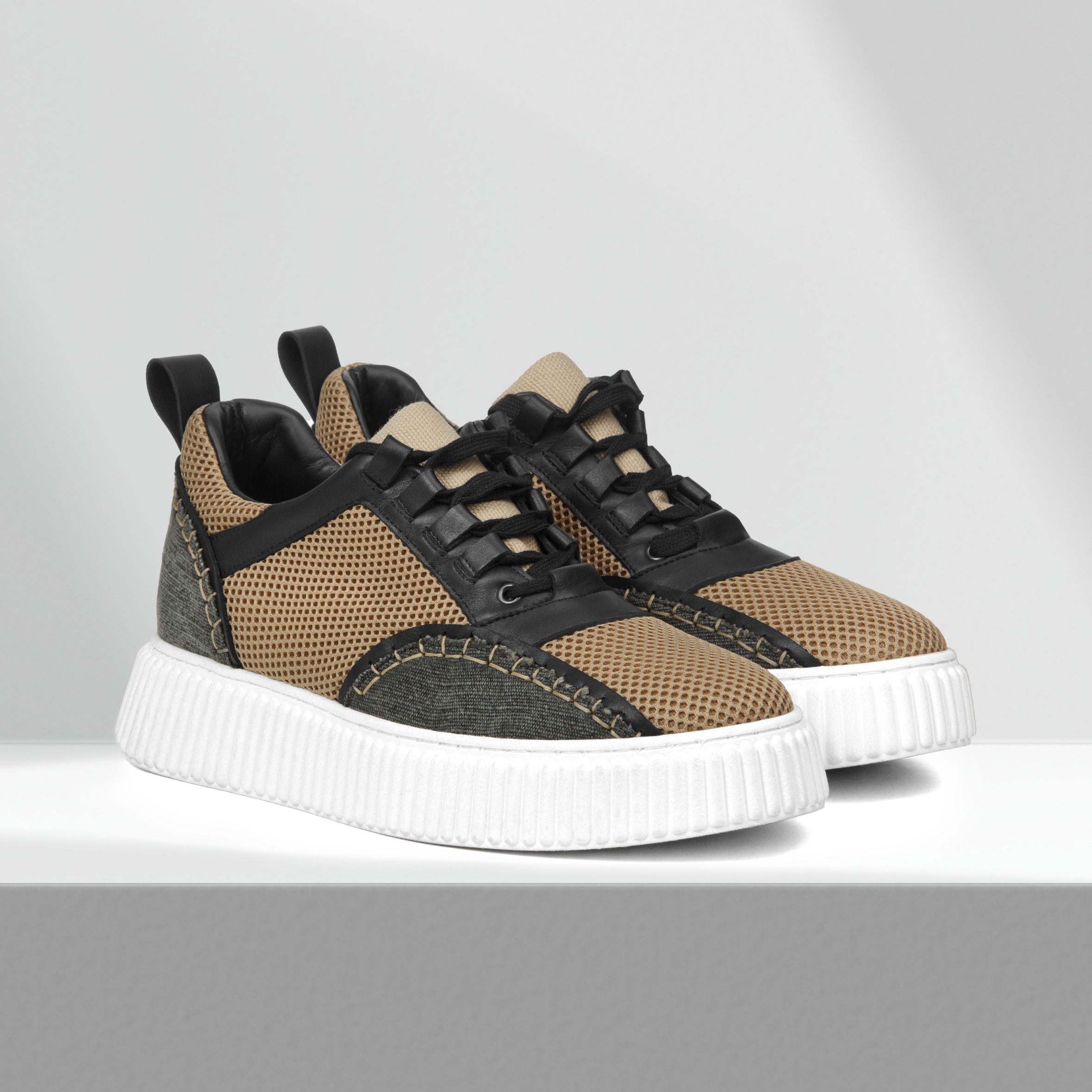 Mix and match is a trend of recent years and this could not fail to apply to sneakers as well. That’s why among the best men’s winter trainers of the moment are those that combine leather and fabric. In the GuidoMaggi autumn-winter collection, the Jasper is the perfect expression of that urban style that mixes different materials. This model is made unique by the combination of grey perforated fabric and beige leather of the highest quality, as well as an innovative, comfortable and light white sole. The snappy line and elegant design make a pair of Jasper’s perfect even with an office outfit that plays precisely with the tones of beige and grey, colours that are all the rage in men’s fashion this year. Height increase from 6 to 9 centimetres.