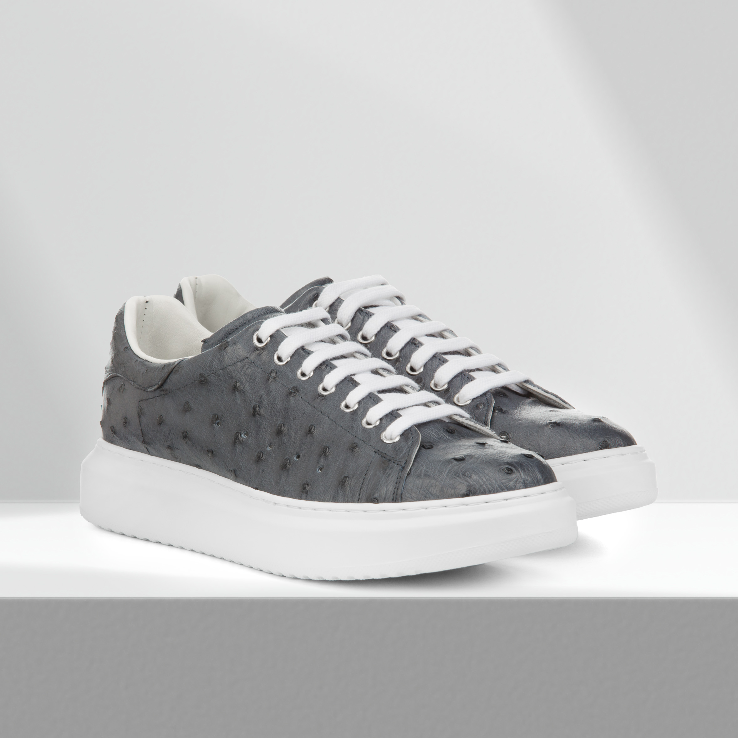 This year grey is back stronger than ever among the fashion colours of winter 2024. Many consider it an elegant and timeless (non) colour, but today it is being revived as never before by fashion houses and pulled out to a shine even for the youngest outfits. And if a grey jumper and a grey coat are a must in this year’s wardrobe, so is a pair of grey sneakers like the Ocala from GuidoMaggi’s latest collection. Ostrich leather and craftsmanship make this model an exclusive piece to wear under every outfit. Height increase from 6 to 8 centimetres.