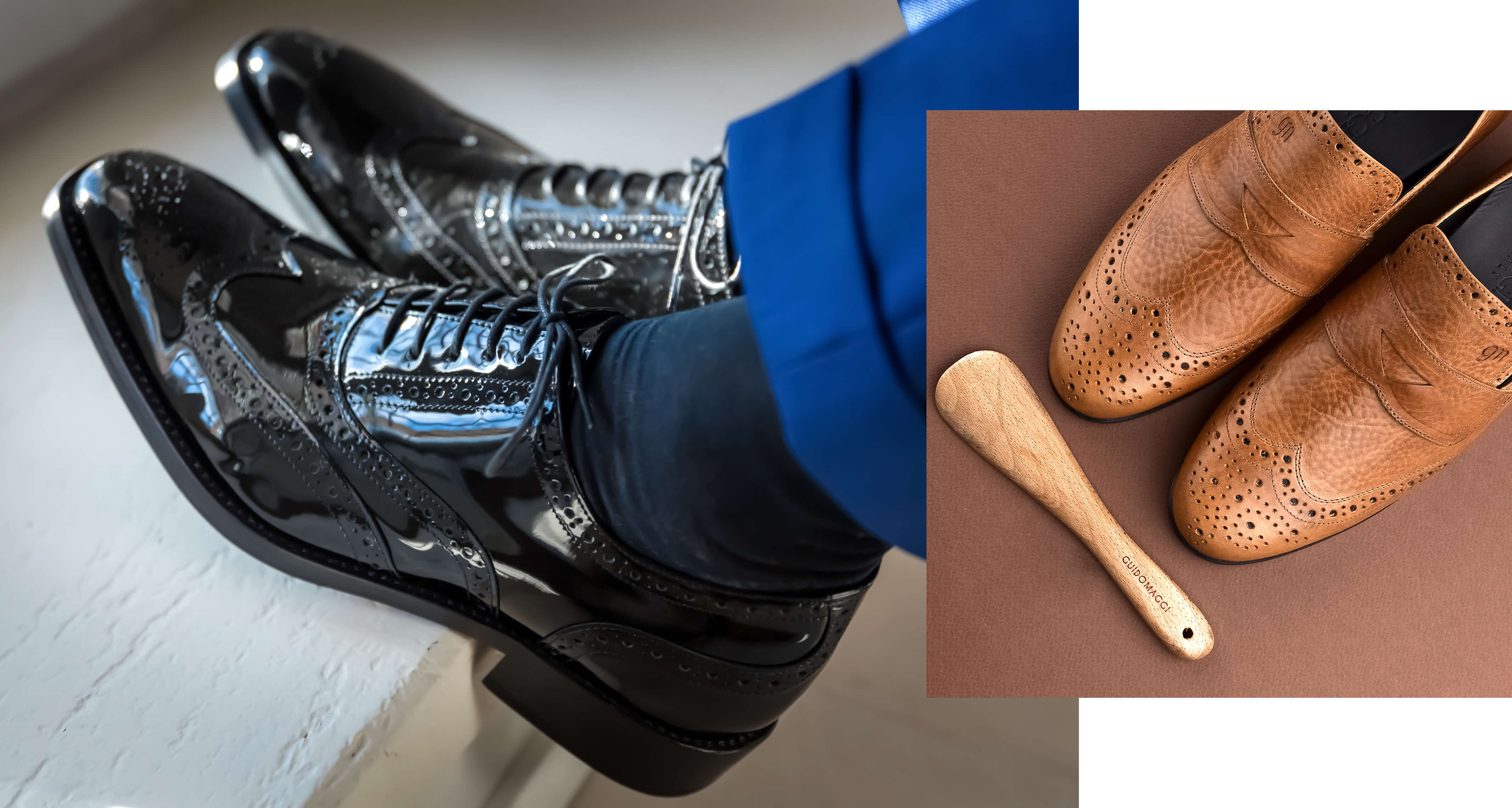 To complete the outfit, Oxford shoes are an absolute must. GuidoMaggi’s Canaletto represents perfection: a elevator shoe in black abrasivated leather, embellished with brogue work and a decorative flower at the toe. The Goodyear stitched leather sole guarantees quality and style. With an internal rise from 2,4 to 3,1 inches, then, Canaletto is ideal for ceremonies and gala evenings, offering a unique elegance that can be personalised with your initials.