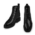 Stylish and with a strong character, these elevator boots are made with black patent leather upper and a durable sole in super-light rubber.