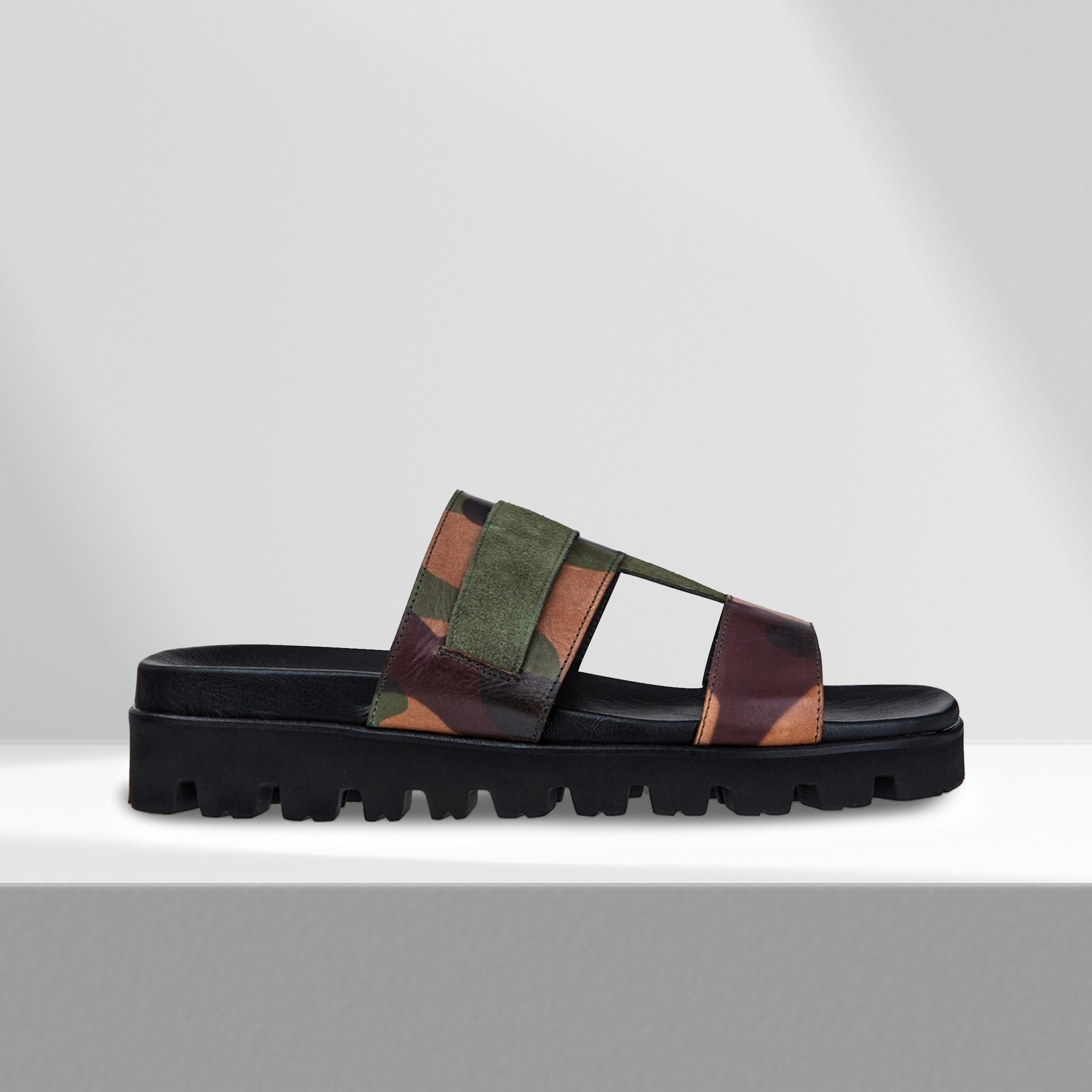 1. Double-strap leather sandals. Characterised by a double strap and available with a thin or chunky sole, they are a versatile and sophisticated option. Men’s leather sandals have the super power to make easy chic outfits that would otherwise be too informal. You can wear them with a pair of smart trousers or with a more casual look, but double-strap sandals will always add a touch of elegance without sacrificing comfort. The quality of the leather and the careful design make them an ideal accessory for multiple occasions, easily transforming your style from ordinary to elegant. In GuidoMaggi’s catalogue of elevator sandals, double-strap sandals are declined in different leathers and colours to allow you to always find the right one for your style. From the very elegant Noha in super-light black tumbled leather, to the adventurous Palawan in camouflage calfskin, passing through the more fashionable Fiji in electric blue full-grain leather and the more retro Puka in precious green leather with an aged effect. Each model, moreover, gives an additional 6 centimetres of stature thanks to an ergonomic footbed and a hard-wearing, tank-like sole made of super-light natural rubber.
