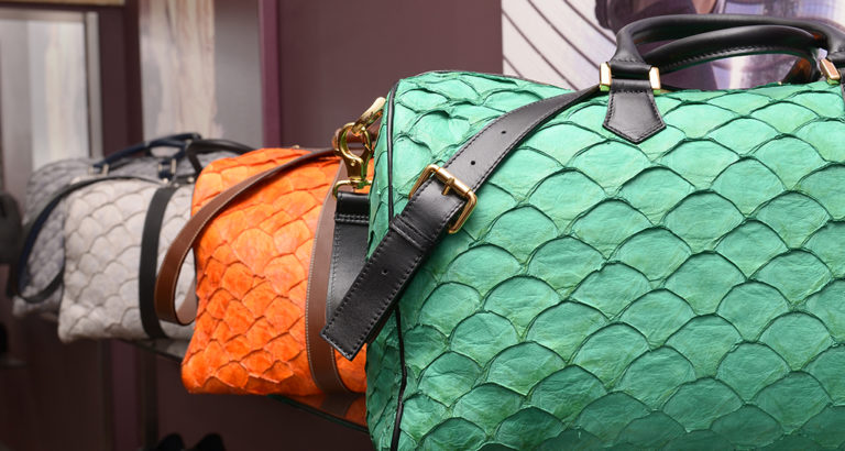 Starting off with a refined light blue pirarucu leather classic, the Klimt travel bag is handmade by the experienced artisans of GuidoMaggi. The model is perfect for those who travel often, regardless of whether it is for work or pleasure. The Klimt model features one large compartment, which has several internal pockets, adjustable shoulder strap, and a zip. Such a design allows travelers to have everything they need with them. Beautiful and valuable, Klimt is an ideal bag for the lovers of luxury.