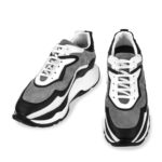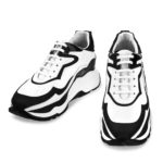 Last but definitely not least, the Giant Dragon sneakers have a name that cannot be more appropriate. The trainers are trendy streetwear, inspired by the world of urban style and rap. The Giant Dragon chunky sneakers have an upper in rubberized calfskin, which is hued in white, black, and blue. The sole is in extra light rubber and it is colored in black and white. The model increases the height of the wearer from 2.4 (6 cm) to 4.3 inches (11 cm).