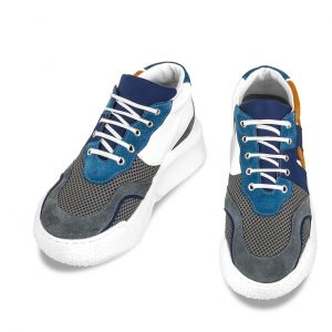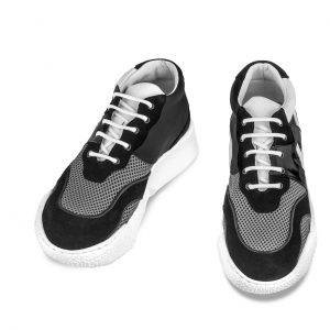 Not least, another elevator sneaker is worth mentioning, that can increase height from 2.4 up to 4 inches, dedicated to the world of basketball: Jordan is made with six different precious materials: black suede and brushed calfskin, white rubberized calfskin, fabric perforated steel gray and full-grain Tuscan vegetable-tanned black leather.
