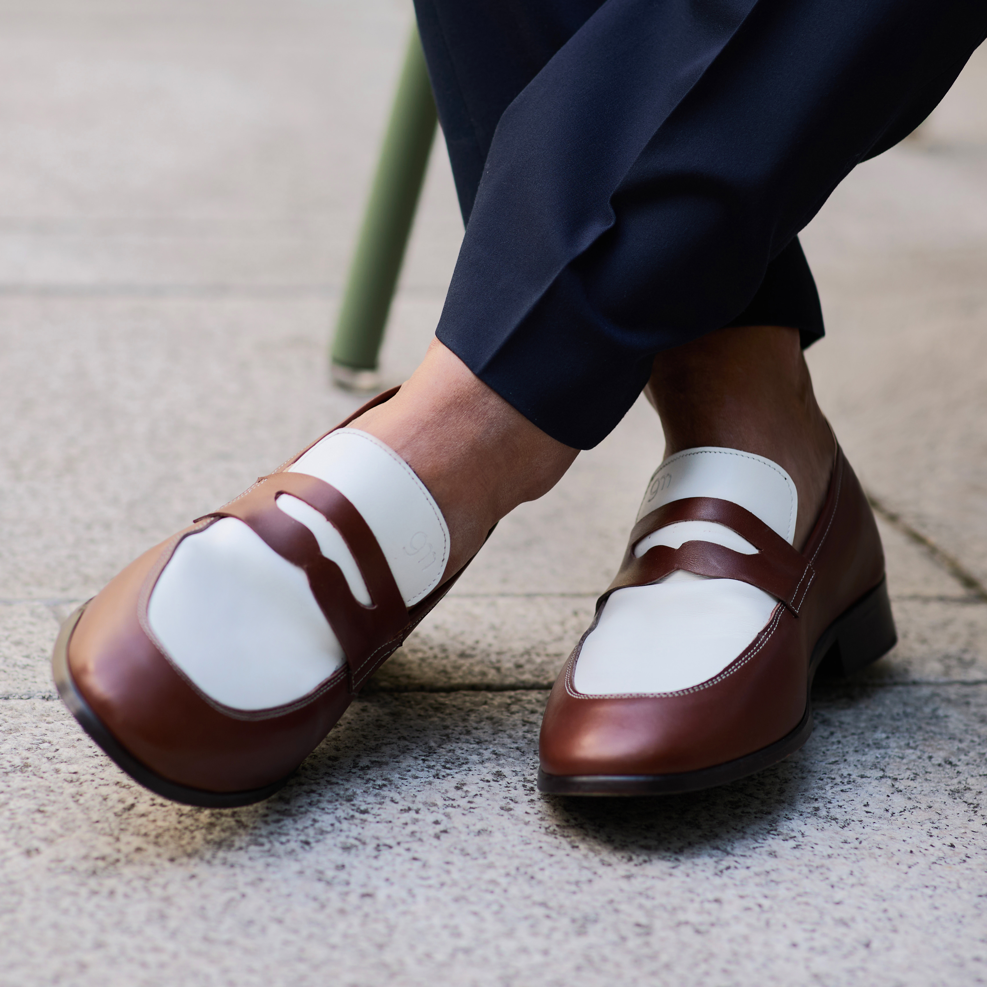 The bi-color full-grain leather upper in white and hazelnut creates a refined contrast, making them perfect for formal events, summer weddings, or a sharp business-chic look. Pair them with tailored trousers, a linen shirt, or a lightweight blazer. Want to highlight your legs? Go for cropped pants or pants with a high cuff, this draws attention to the shoes and elongates your frame.