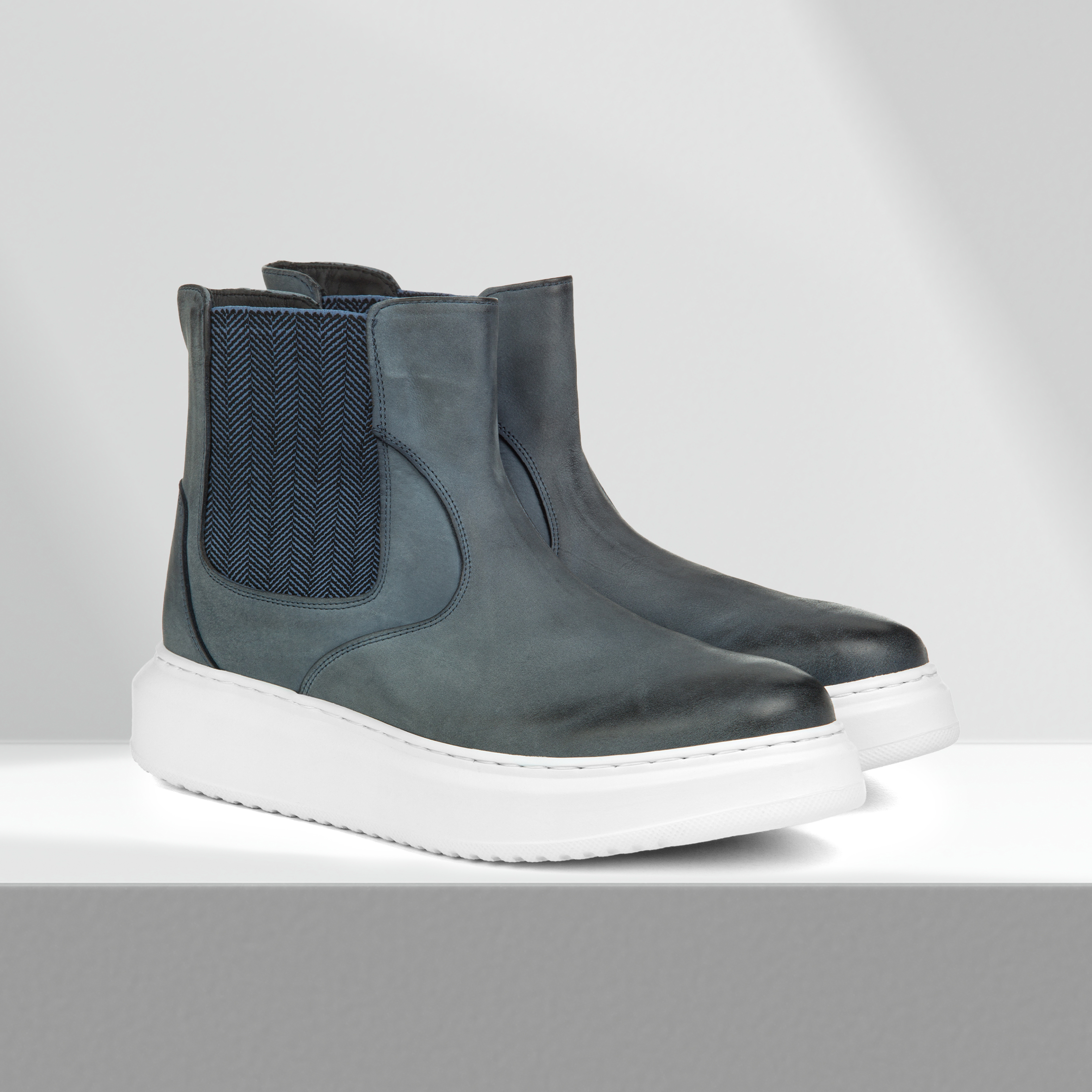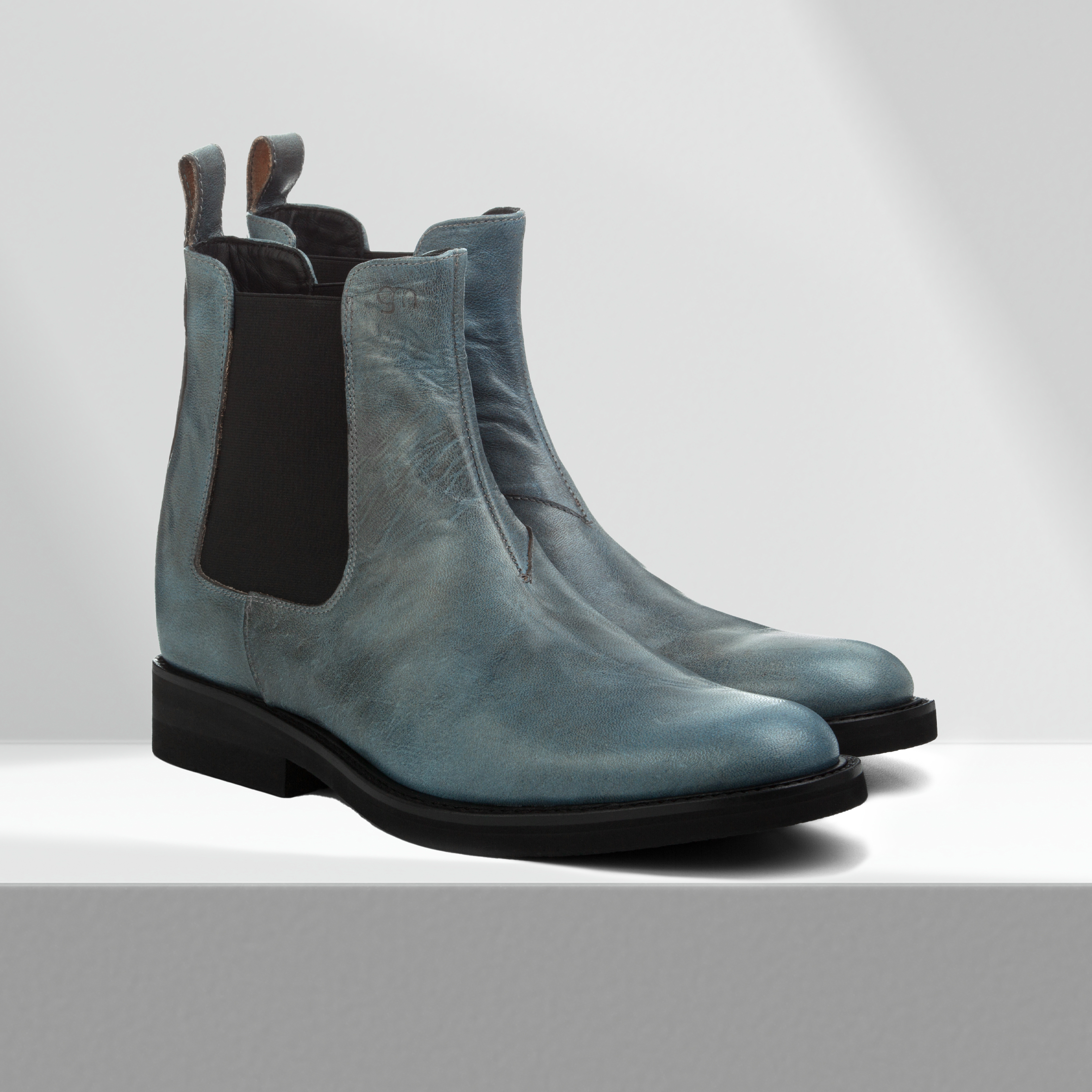 1. Powder blue Chelsea ankle boots – A pair of Santene’s are a Cordovan leather Chalsea ankle boots with Japanese Cordovan upper in gray/celeste hues. The super-lightweight Vibram rubber sole ensures durability and comfort, while the silk elastic and soft calfskin lining add a touch of luxury. The vintage elegance of this pair of ankle boots is perfect whether paired with a suit for a business look or with a pair of jeans for a decidedly casual outfit. The rise can reach up to 10 centimeters in total comfort and secrecy.