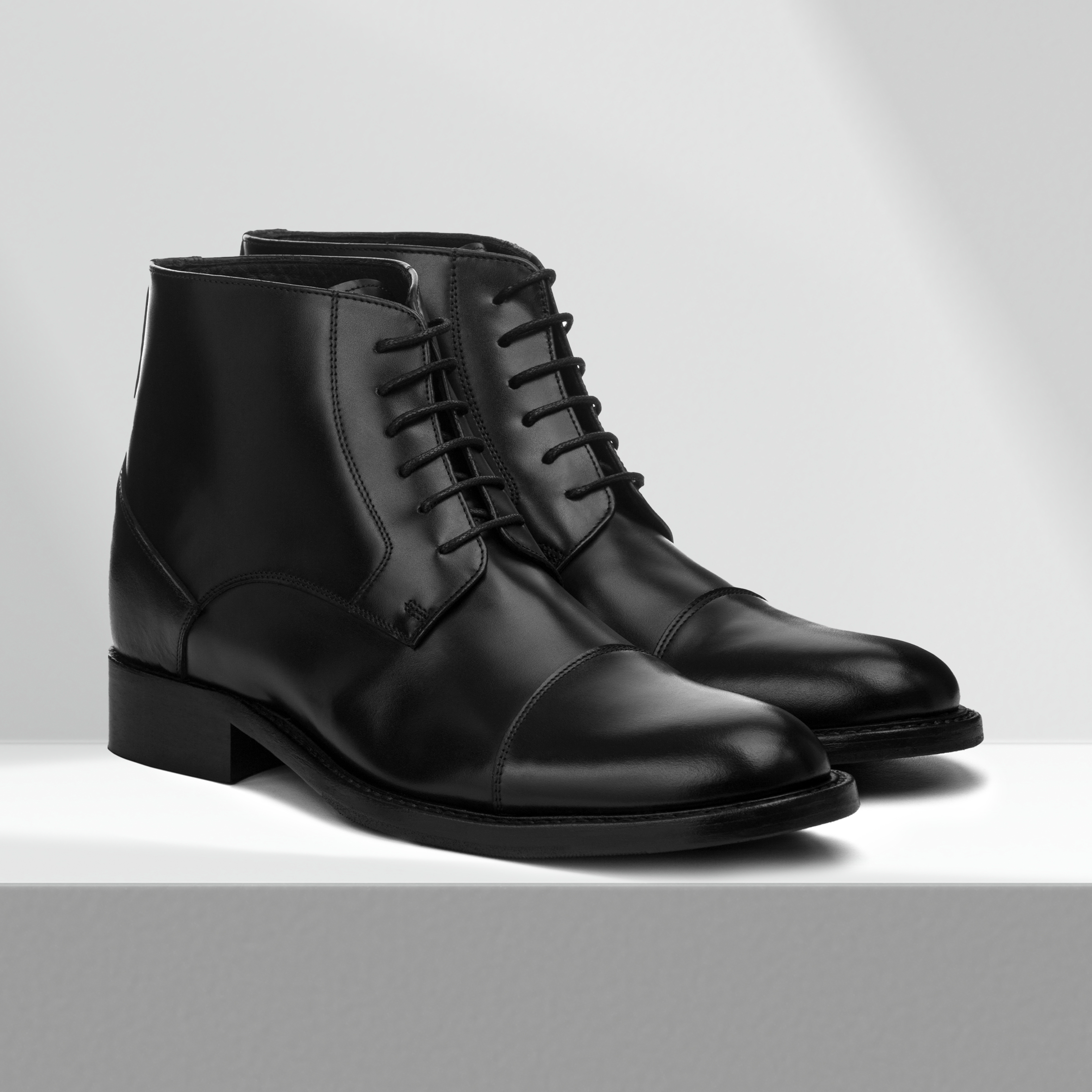 Black ankle boots represent the pinnacle of masculine elegance, and the Kaunas model is the epitome of it. Handcrafted in Italy from full-grain calfskin, they are a refined and versatile choice for every occasion, from work to a formal evening. The handcrafted leather sole adds a touch of timeless class, while the invisible elevator system, which increases the height from 2.4 to 3.1 inches, offers discreet comfort and a more confident stance.