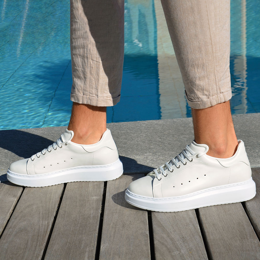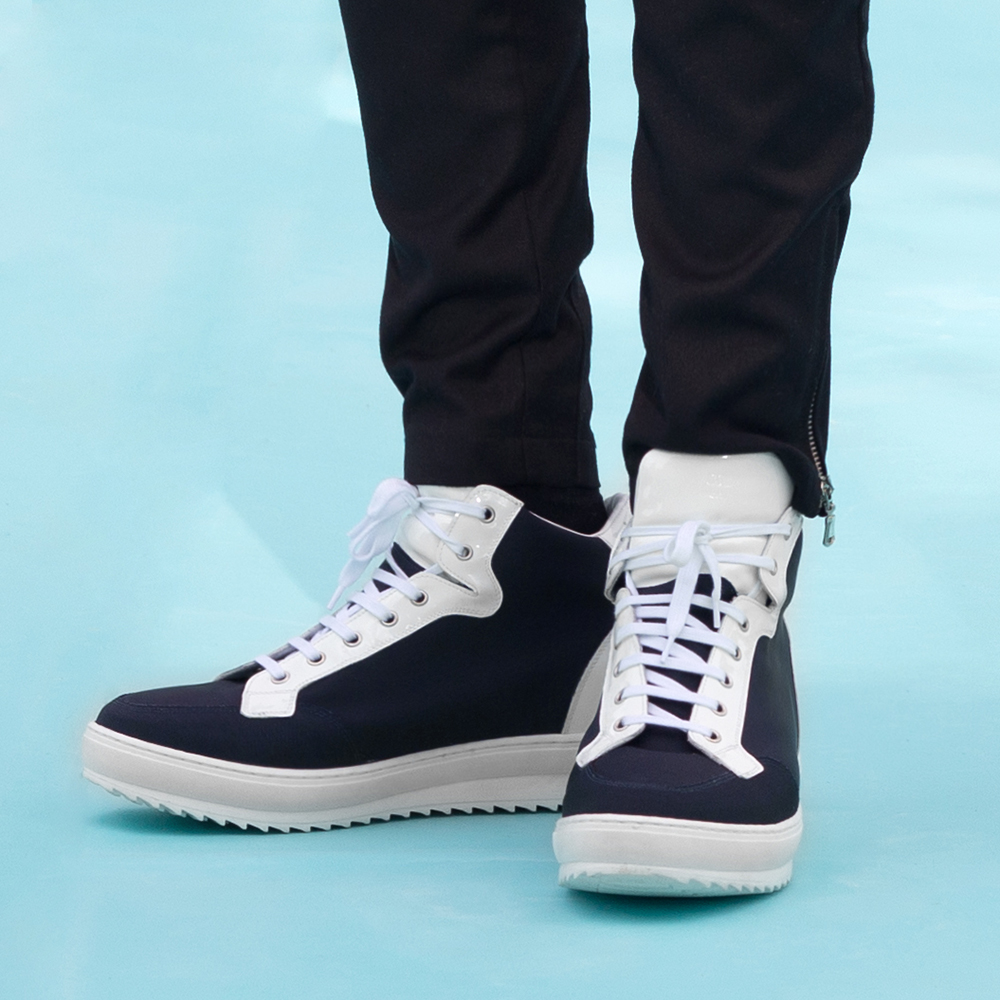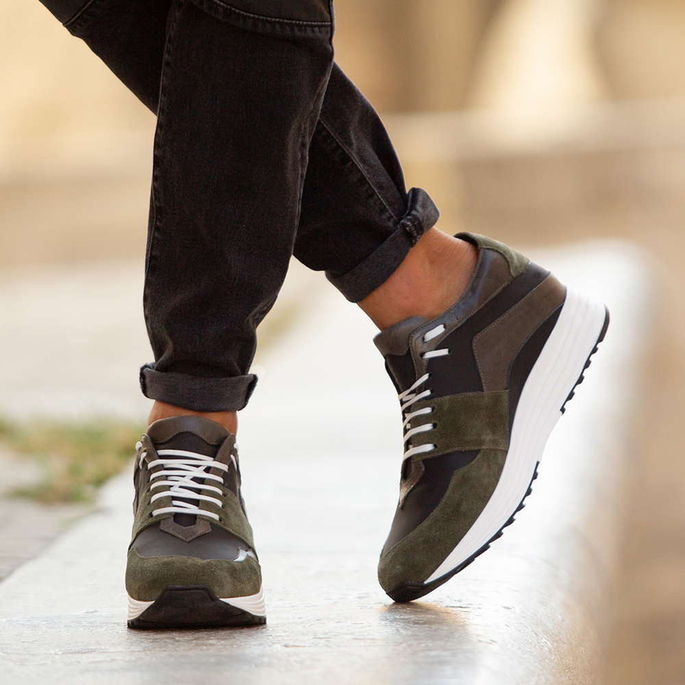 The men’s bomber jacket is the key garment of college style. But if in the past it was simply the uniform of American students, today you don’t have to be a Yale scion to wear it. On the contrary, a blue or green bomber jacket can be the perfect jacket to complete a sporty look with a checked shirt and a pair of sweat trousers. An example? Try pairing your favourite checked shirt with GuidoMaggi’s Kent blue perforated leather jacket and a pair of elevator trainers from the Varenne collection to increase your stature.