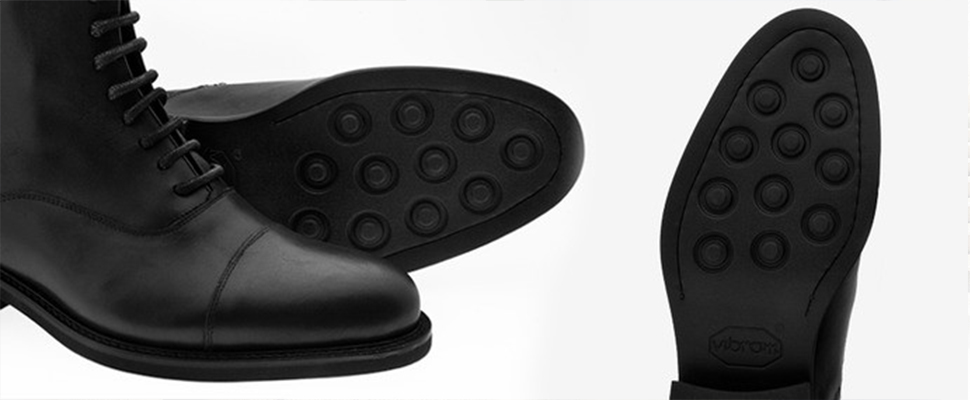 There is a solution! Perhaps you are familiar with ‘Dainite’ style studded rubber soles. Well, Vibram makes the best of these all-weather soles, and they are available to anyone who needs them via GuidoMaggi Luxury Shoes. In fact, any boot or shoe style with a round toe-cap can be made with Vibram soles. These are not ‘commando’ style soles, often called ‘waffle stompers’. They are discreet, for the fashion conscious wearer, who desires better traction on slippery surfaces.