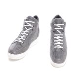 Last but not least are the Tobago high-top elevated sneakers. This model is finely crafted and exclusive featuring a white sole and Hermes gray crocodile leather. As with any of these shoes, the sole is in super-light natural rubber.