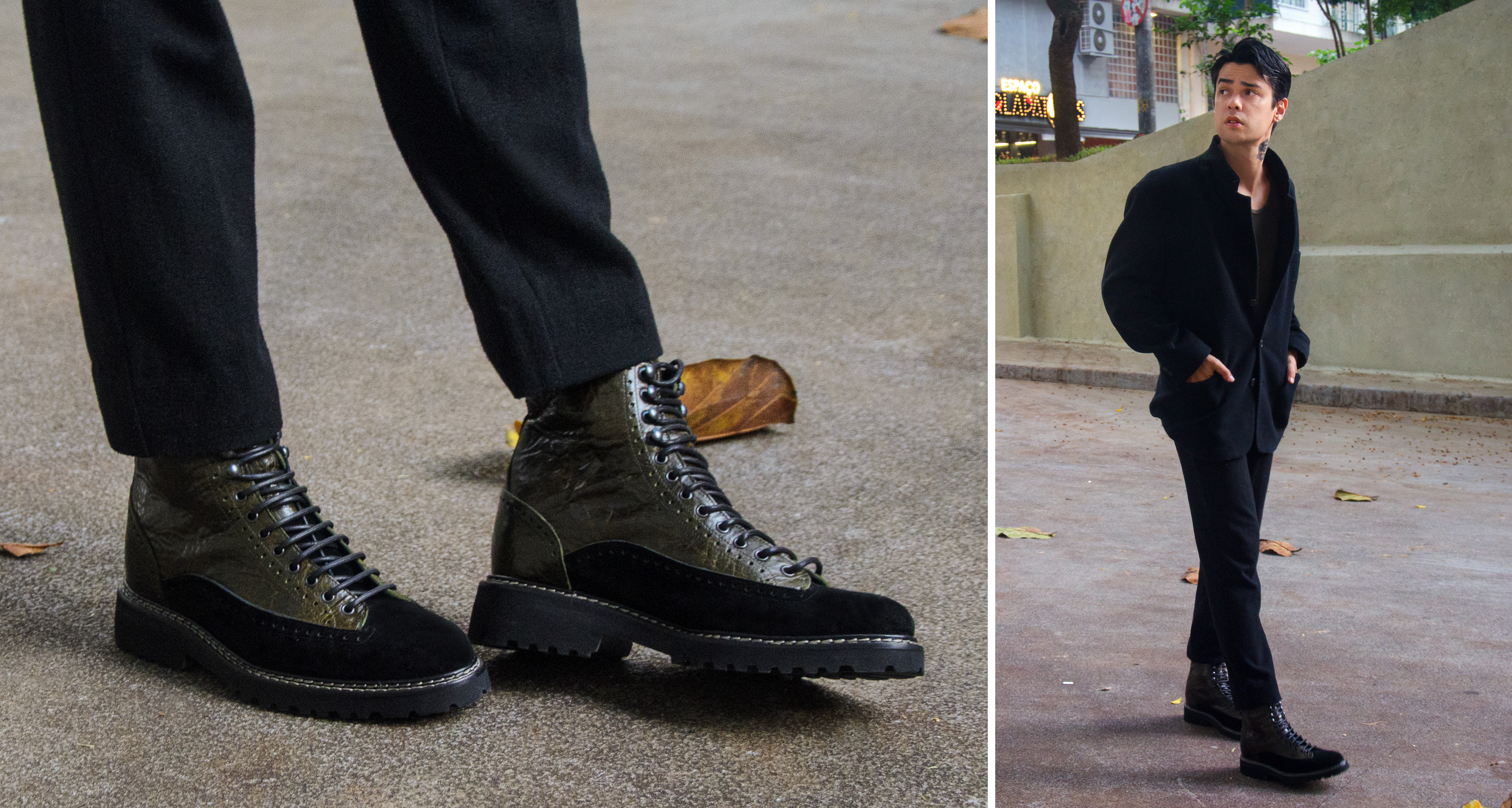 Wear a pair of Caledon boots with beige chinos or gray wool trousers and an Oxford shirt for a refined yet relaxed look. Add a tweed blazer or a shearling coat for a final touch that conveys warmth and elegance. For a more urban style, pair these boots with slim-fit jeans and a leather jacket, completing the outfit with an oversized scarf and minimal accessories.