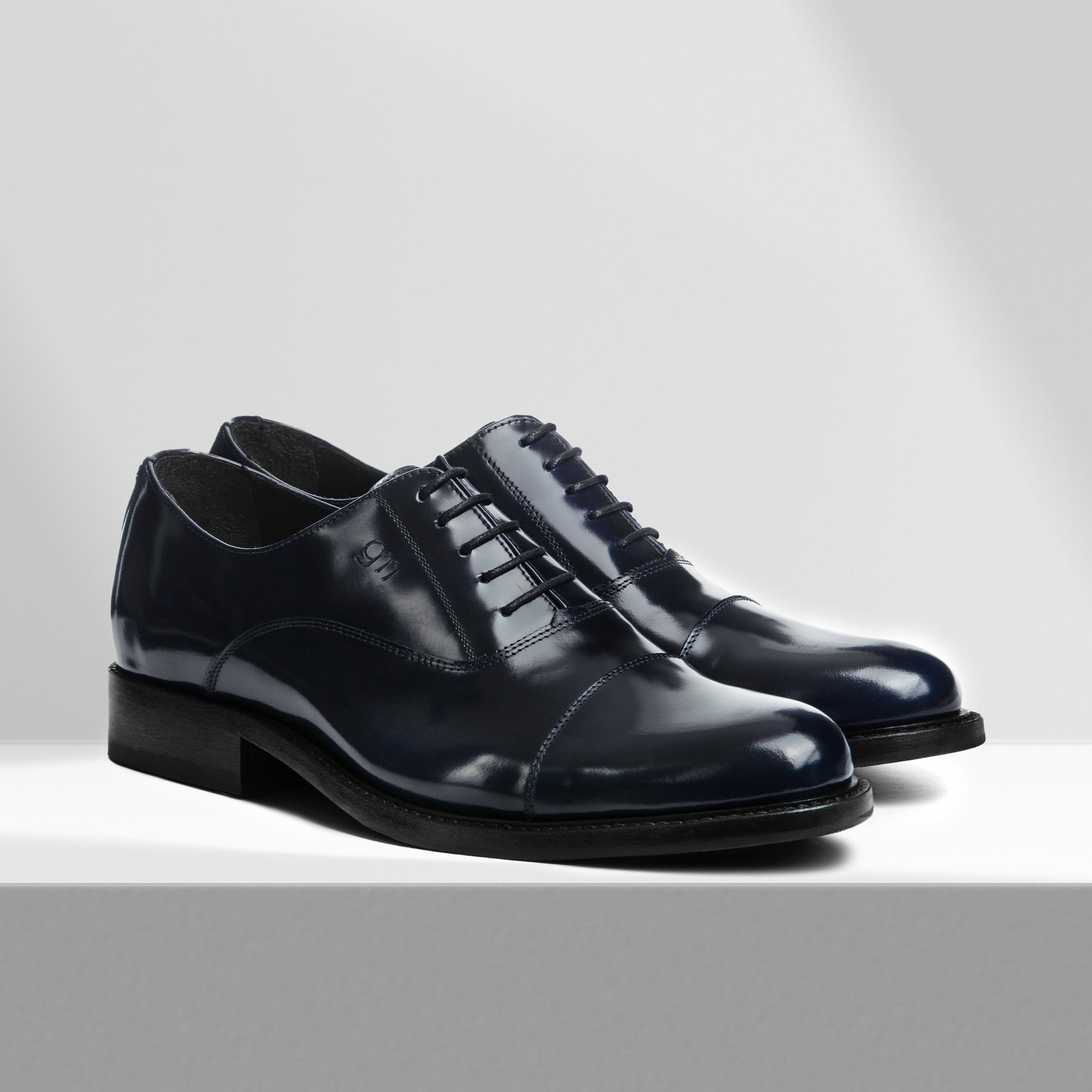 1. Choose a colorful version or one in different materials. Opt for a pair of Oxfords in bright colors such as blue, green or burgundy, or in materials other than the traditional black or brown leather, such as suede or mixed fabrics. This will add a fresh and original touch to your outfit. For example, take a look at GuidoMaggi’s Piave blue elevator dress shoes with an upper in a unique color thanks to “crust” calfskin in distinctive pastel shades between navy blue and cobalt blue and a heigh increase up to 3.1 inches.