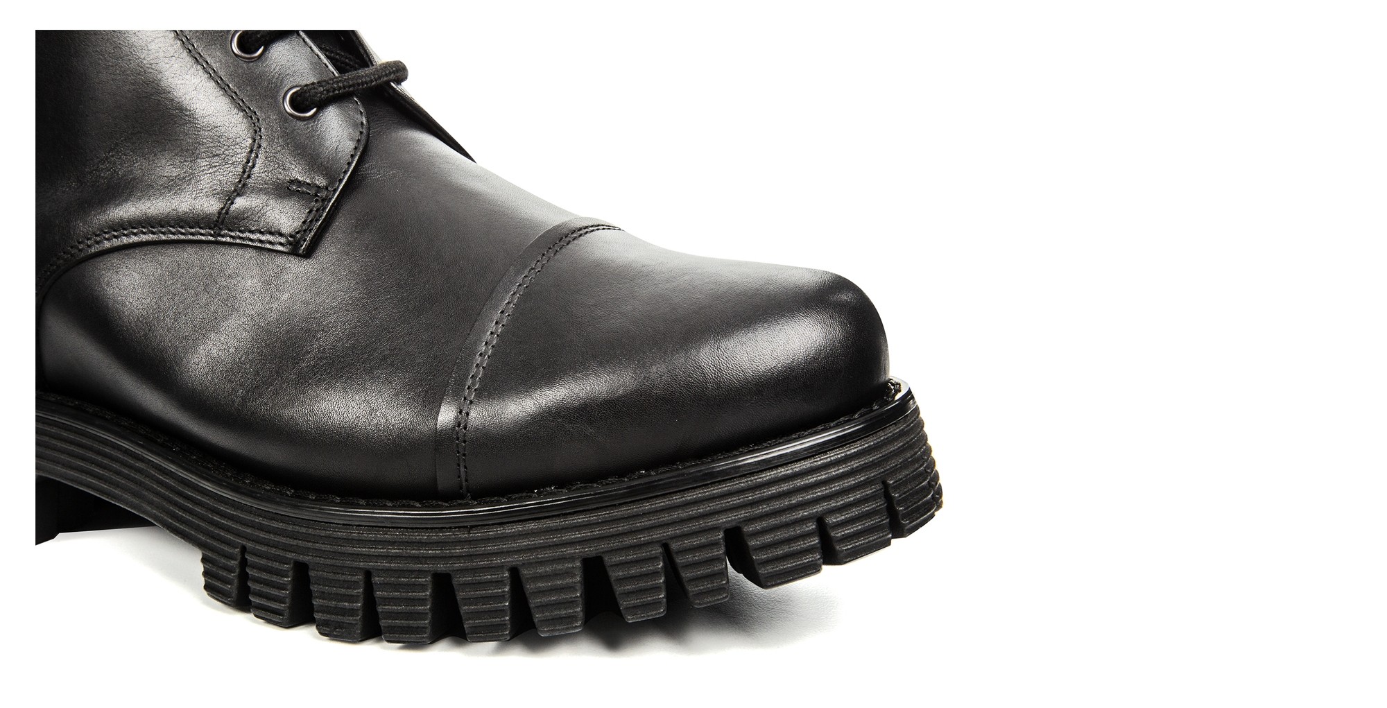 Casual chic: the combat boot, designed by GuidoMaggi features a design that reveals its strong character. For those who want to be stylish even with a less formal look, this elevator boot will add class and personality.