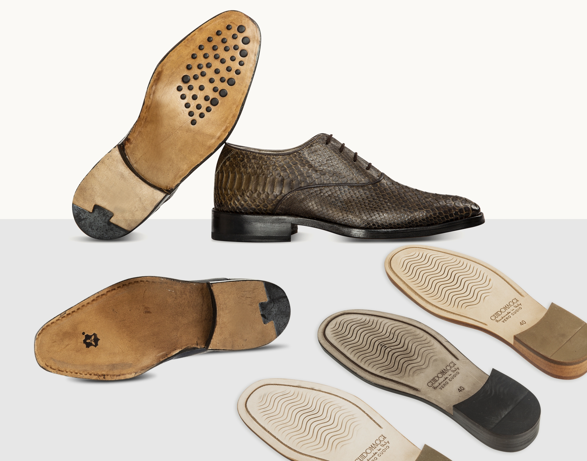 From the one in 100% Italian leather to natural rubber, made with Goodyear construction or stitched at sight: you can choose the sole you prefer for your GuidoMaggi elevator shoes. Each choice will guarantee excellent quality and absolute comfort.