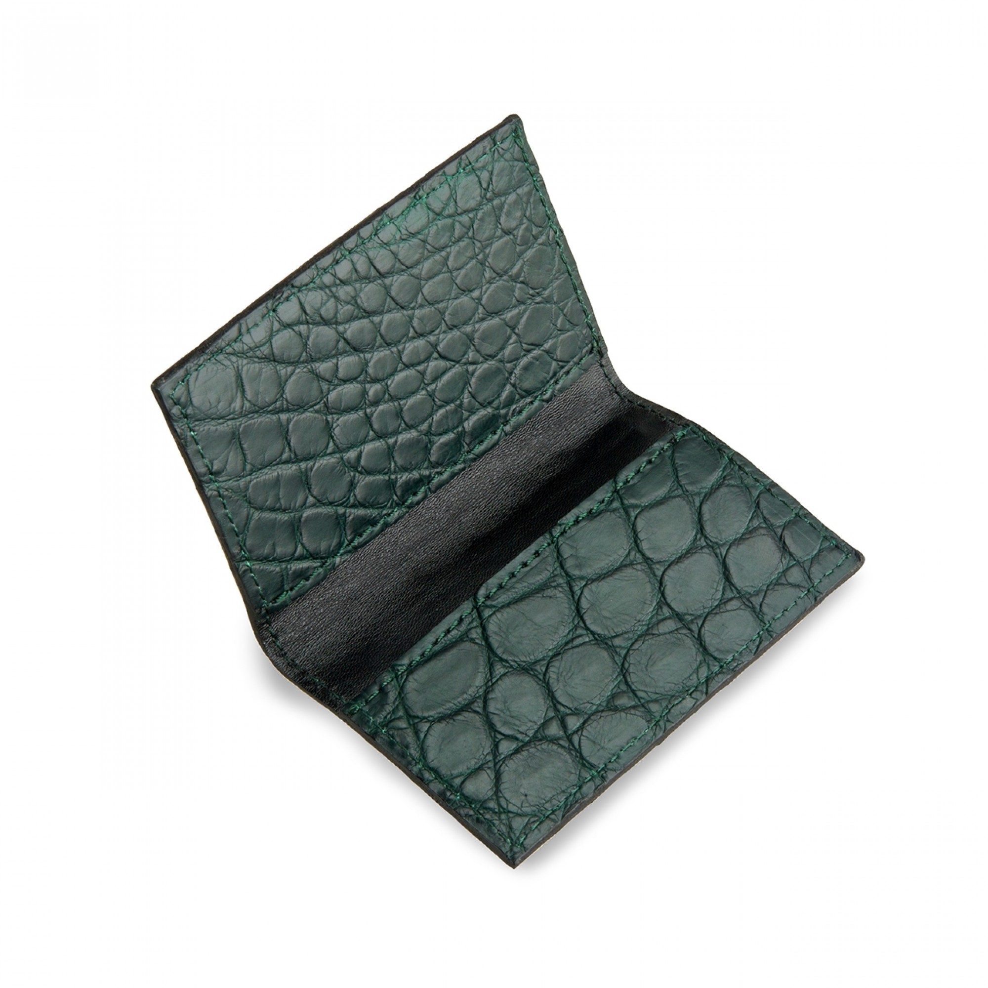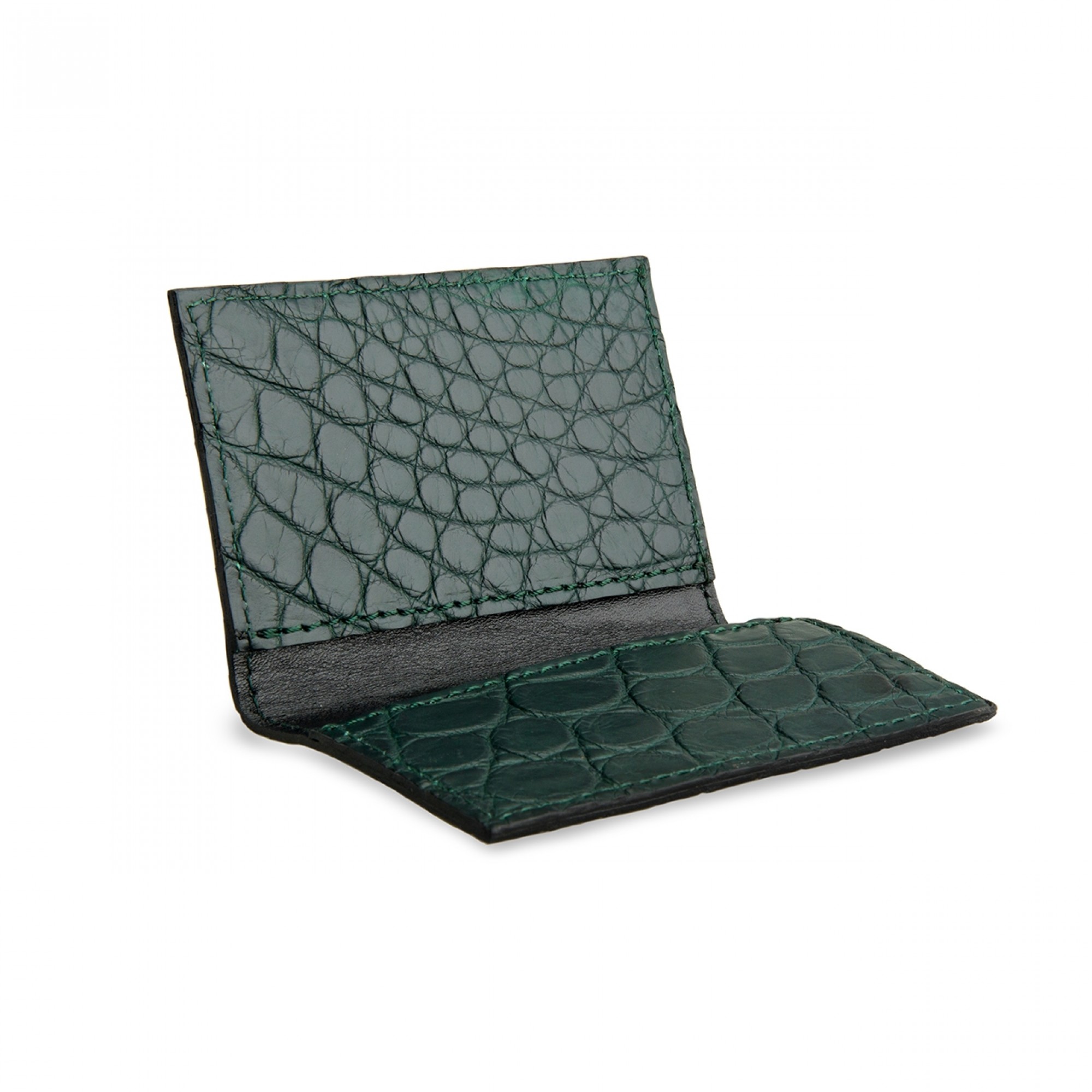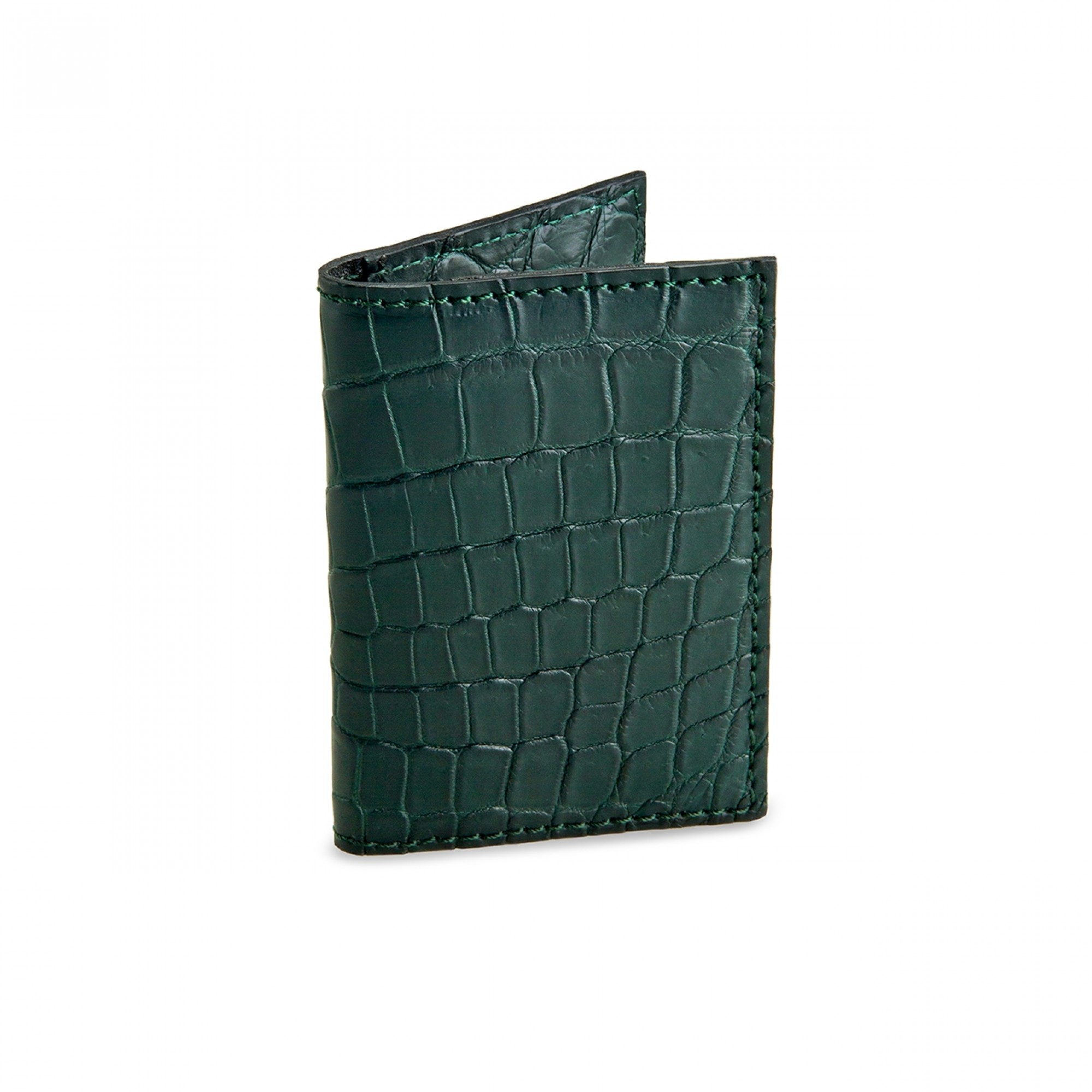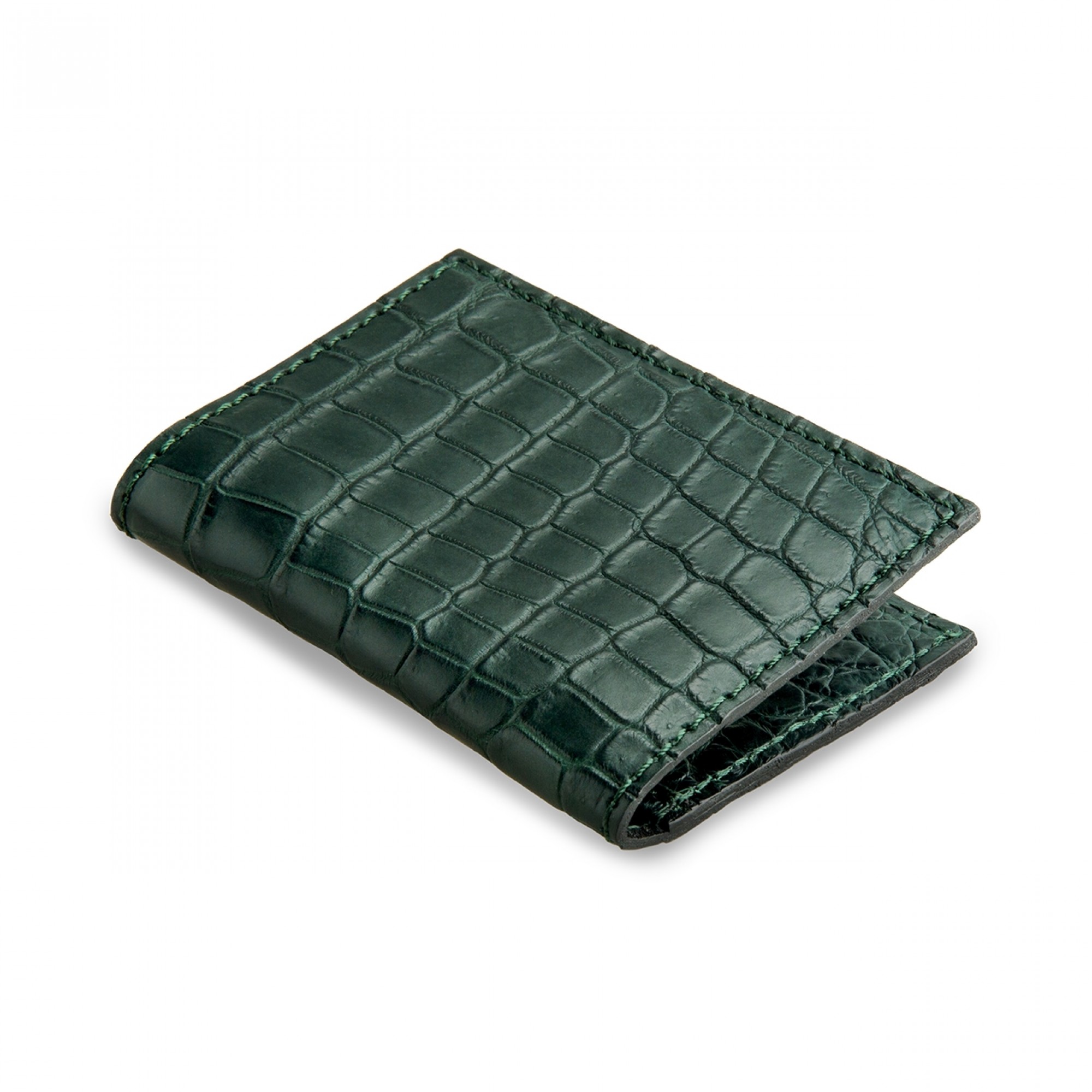 Luxury document holder (identity card / passport) in Hermès alligator leather of a green color. Handmade in Italy. Dimensions: 10 x 9.5 - Open 17 cm