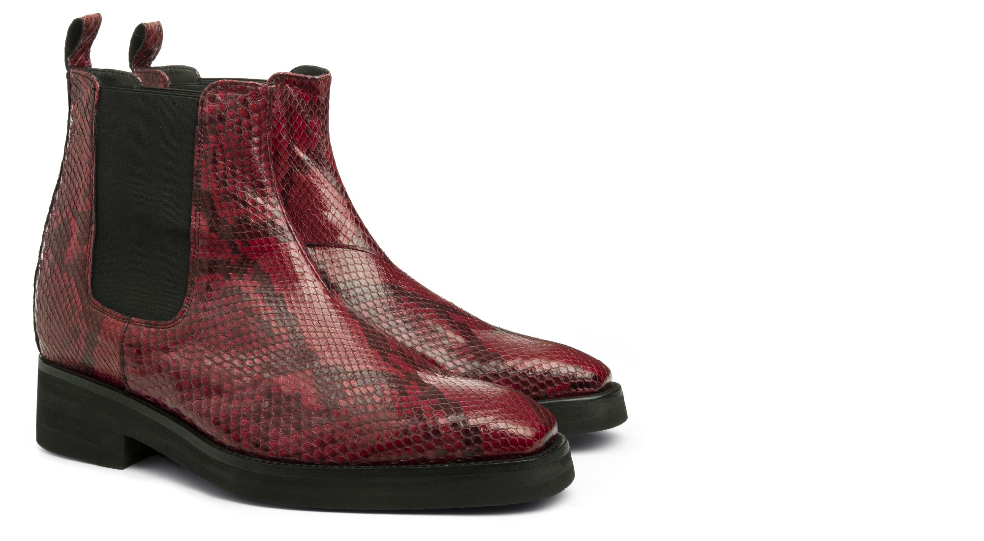 An exclusive, handmade and tailor-made, elevator ankle boot for lovers of true luxury. The upper is in fine Hermes python, with an unprecedented reference to the sophisticated Gucci style. A touch of class enriched by the red nuance with black spots. Soft elasticated sidebands and super light rubber sole. A lifting model with a strong character, designed for those who want only the best. Up to 4.3 inches more in height. 100% made in Italy.
