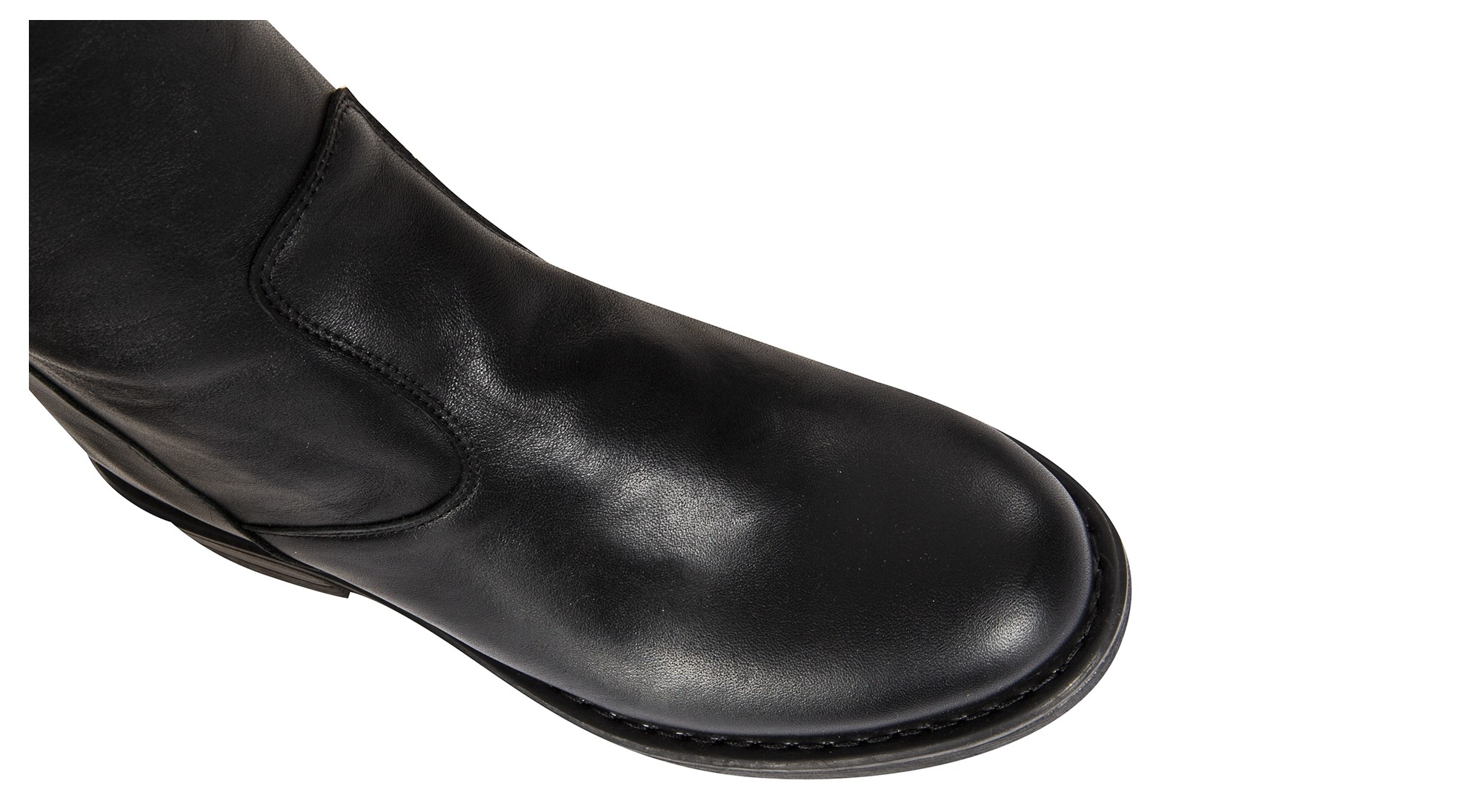 An elevator boot with soft and well-defined lines and a tube leg with an attractive wavy cut that will make your silhouette look even more elegant and slender. Strictly hand-sewn by the expert GuidoMaggi craftsmen, this model is made of fine full-grain leather and has a super-light rubber sole, resulting in an exclusive combination of refinement and comfort. Up to 3.1" of extra height, and ideal for the casual-chic outfits of the season. Handmade in Italy.
