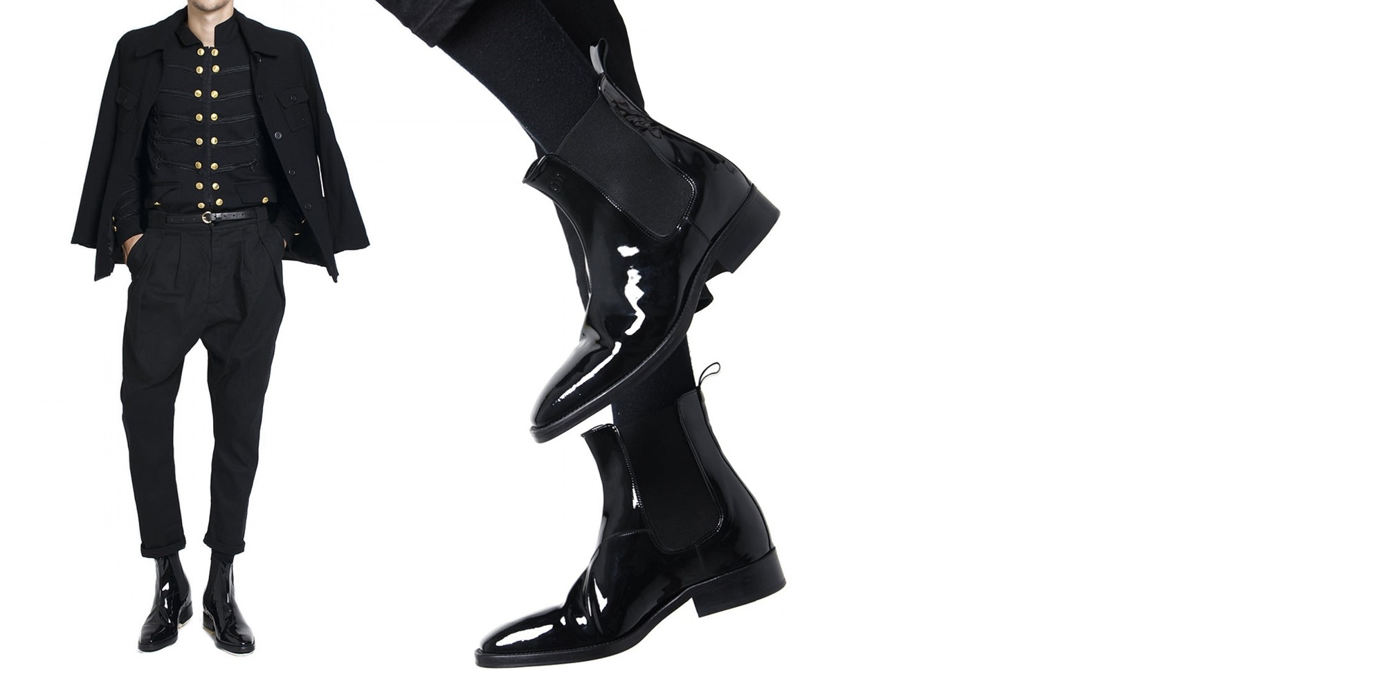 Upper in calf black patent leather. Full soft leather lining. Upper leather, outsole and midsole are sewn at sight. Insole and midsole in genuine leather. Leather heel with special anti-slip rubber. Dual elastik silk panel for an easy, comfortable fit. Available with: Handcrafted leather outsole with special anti-slip rubber or High quality rubber sole anti-slip. Height increase: from 2.4 inches (6cm) to 4 inches (10cm). Hand Made in Italy