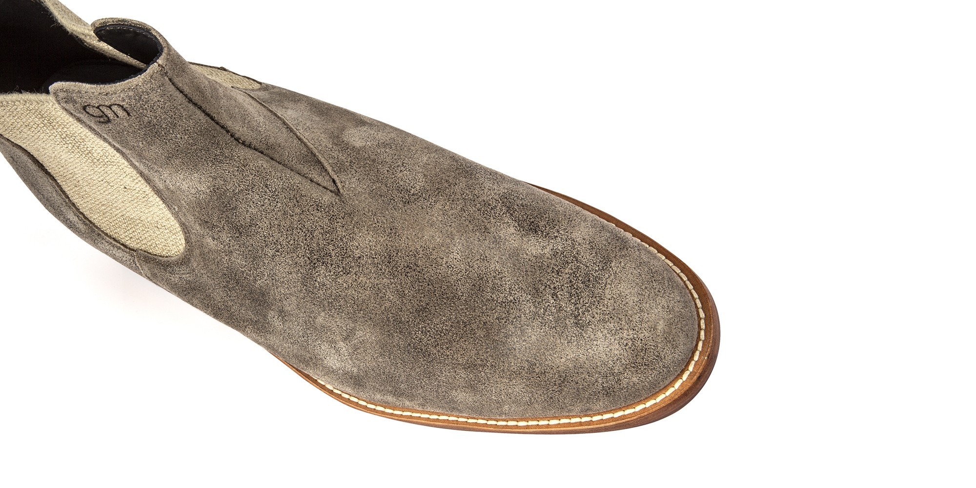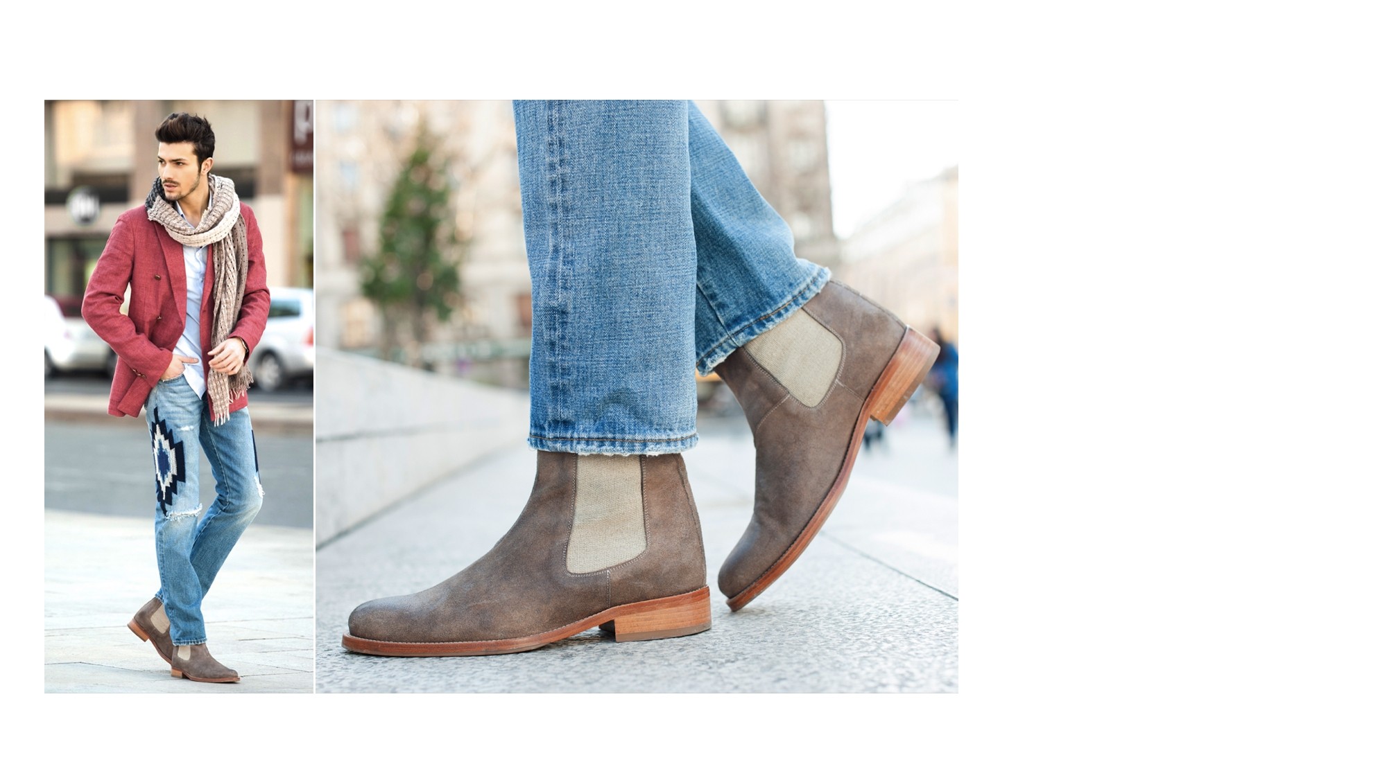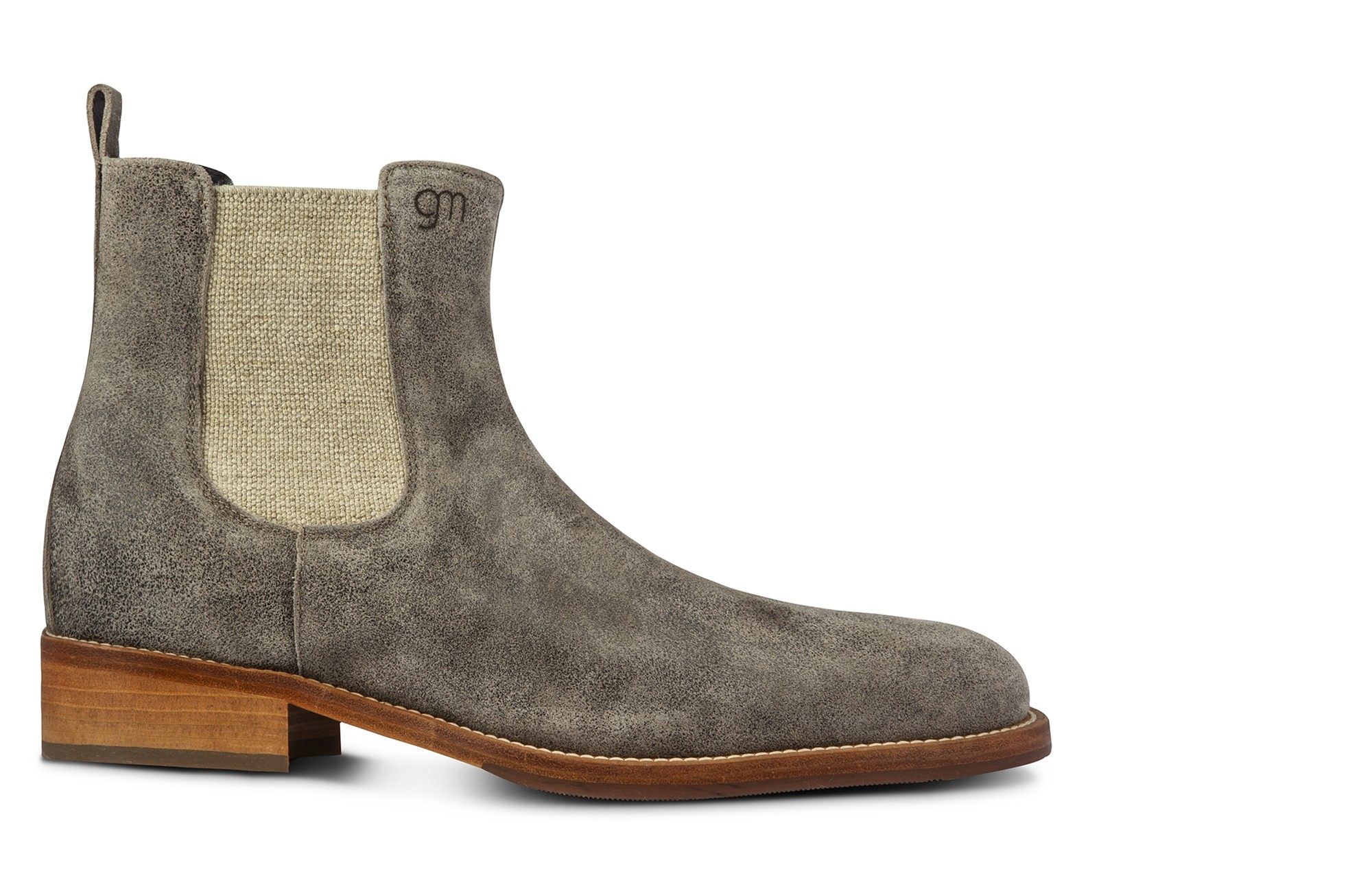 An elevator Chelsea boot featuring a slender design and an invisible inner elevator system able to increase height up to 4 inches (10 cm) in total comfort.