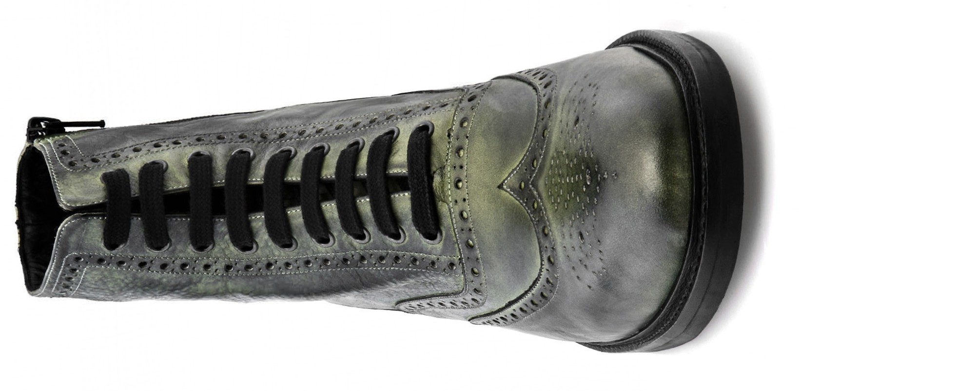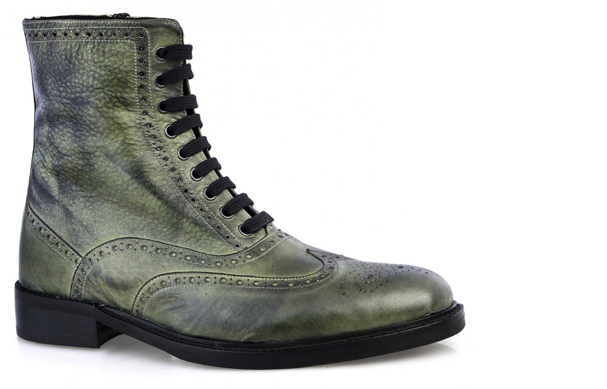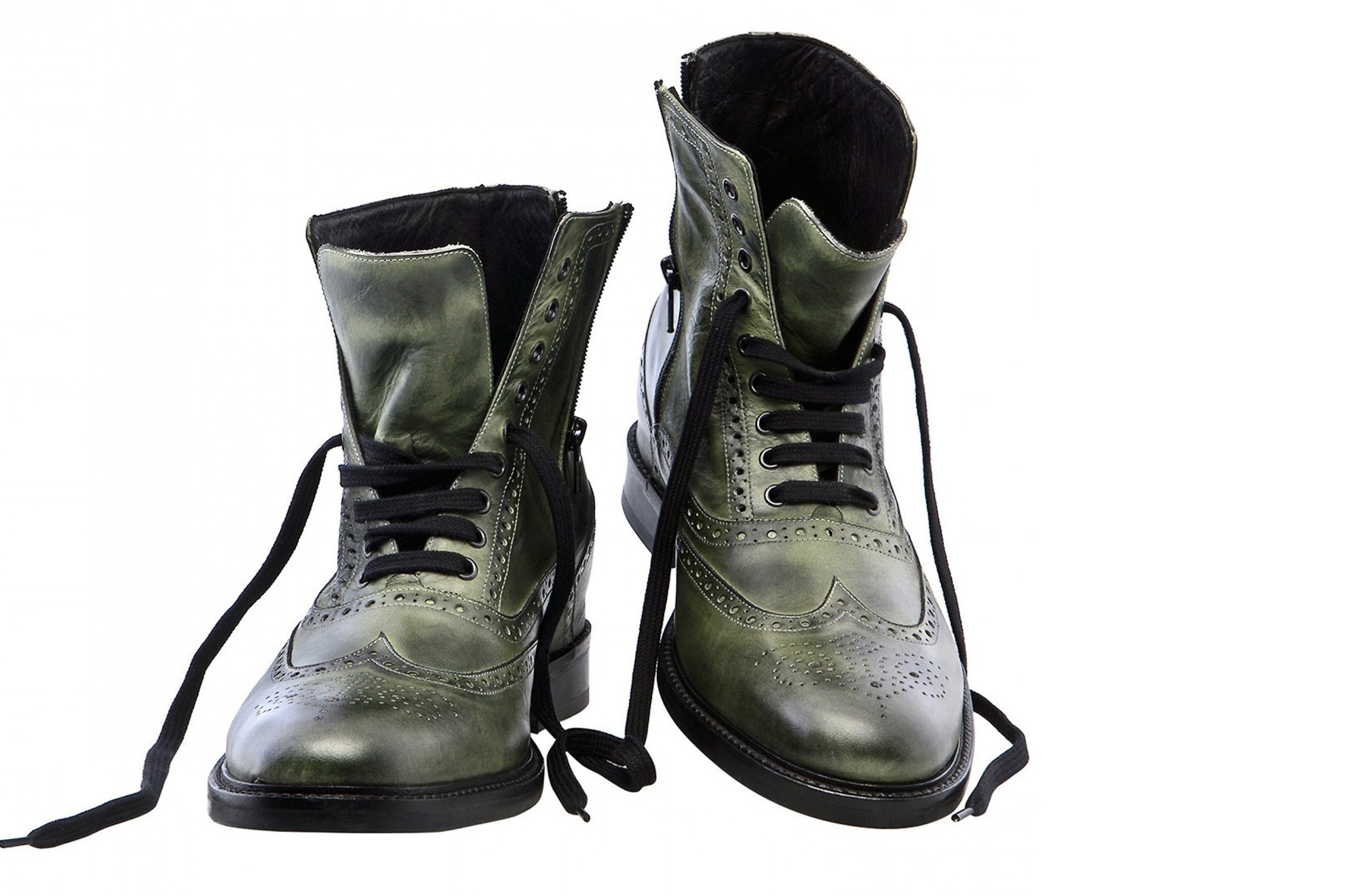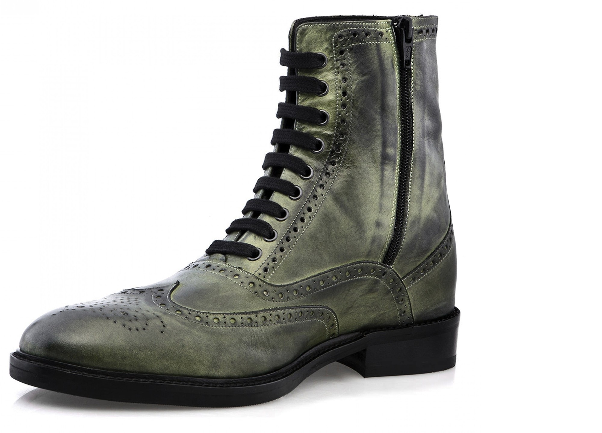 Upper in green burnished full grain leather. Full soft leather lining. Upper leather, outsole and midsole are sewn at sight. Insole and midsole in genuine leather. Leather heel with special anti-slip rubber. Cotton waxed shoe laces. Available with: Handcrafted leather outsole with special anti-slip rubber or High quality rubber sole anti-slip. Height increase 2.75inches(7cm) or 3.1inches(8cm) or 4 inches(10cm). Hand Made in Italy