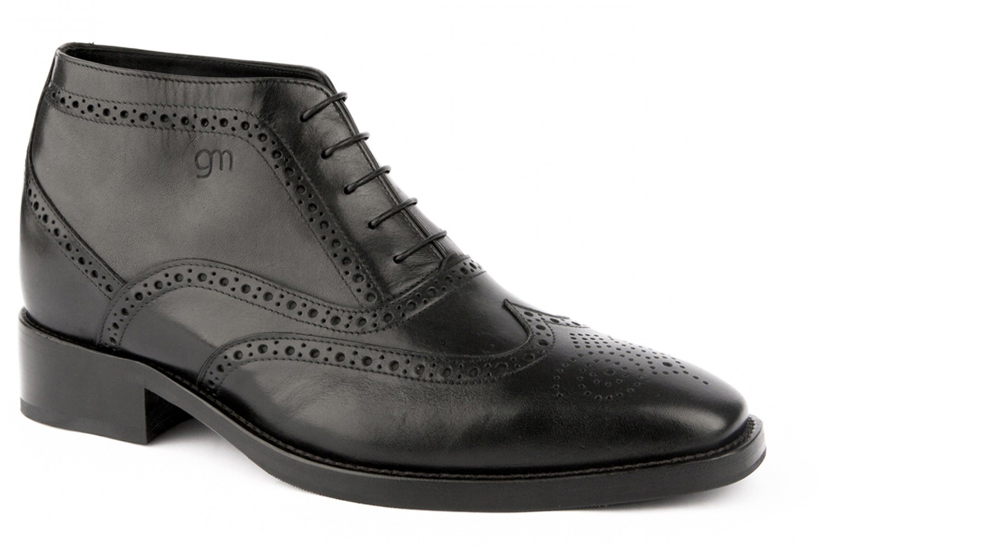 Elegant ankle boots featuring a black upper in full grain leather with a brogue wingtip design, punched by hand. The comfortable inner lining is made of soft goatskin. The outsole is made of 100% natural leather, handcrafted, with anti-slip. The black laces are waxed. The insole and midsole are made of genuine Italian leather.