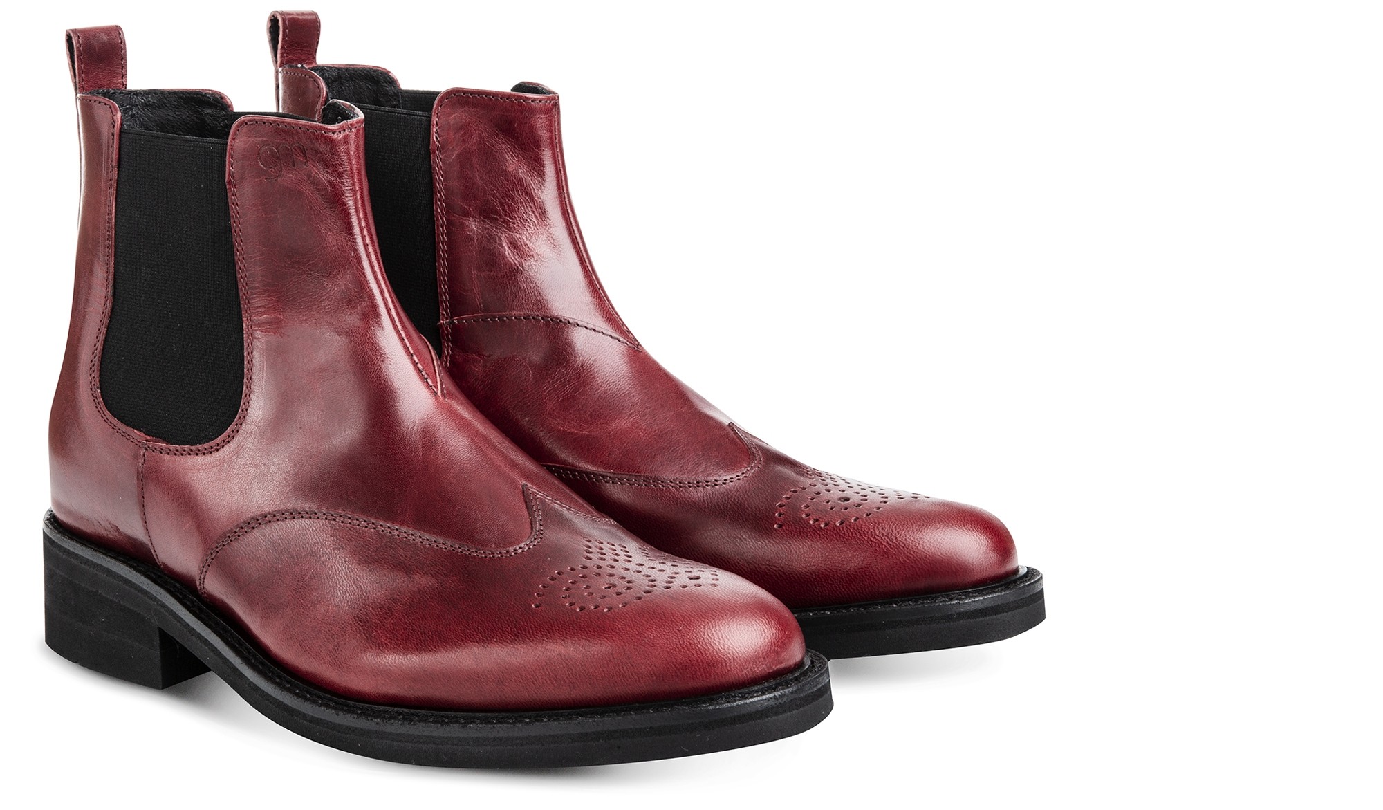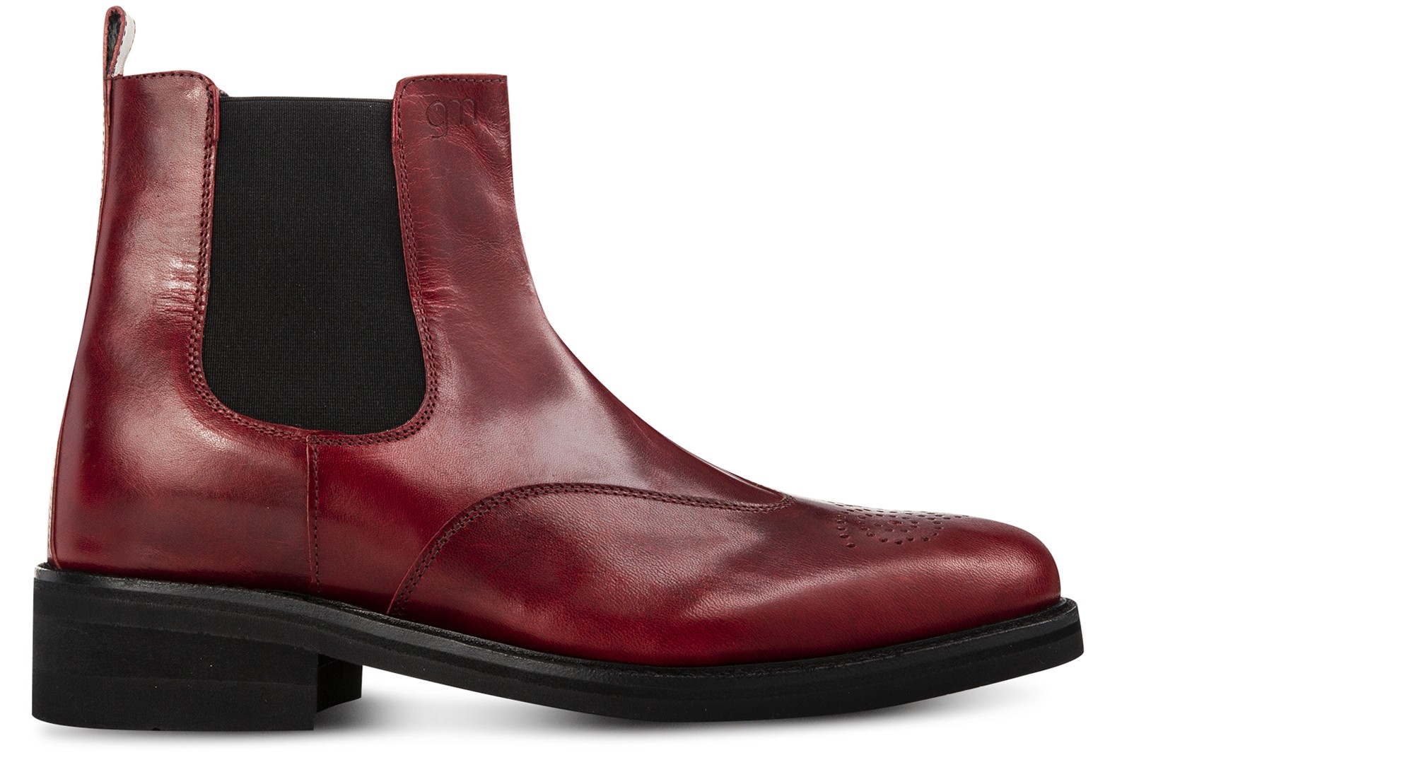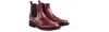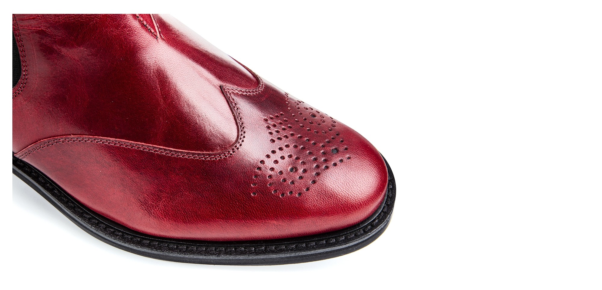 Outstanding character, style and elegance for this new chelsea elevator boot by GuidoMaggi: a must-have in a man's wardrobe this season. This elevator shoe for men has a bright burgundy leather upper and black elastic, brogues, dovetail and shoe puller.