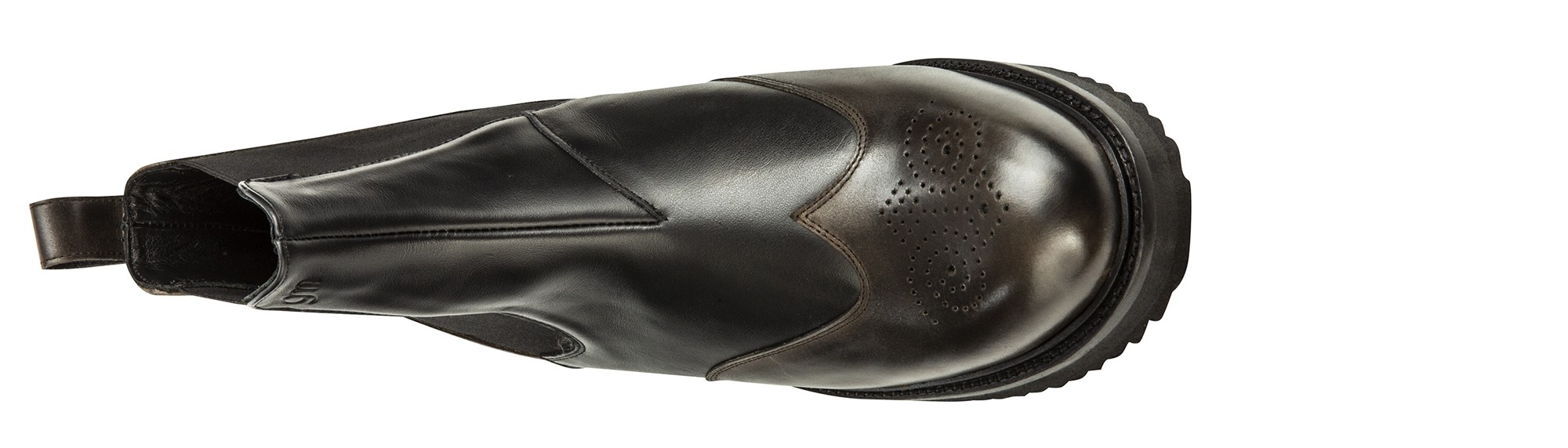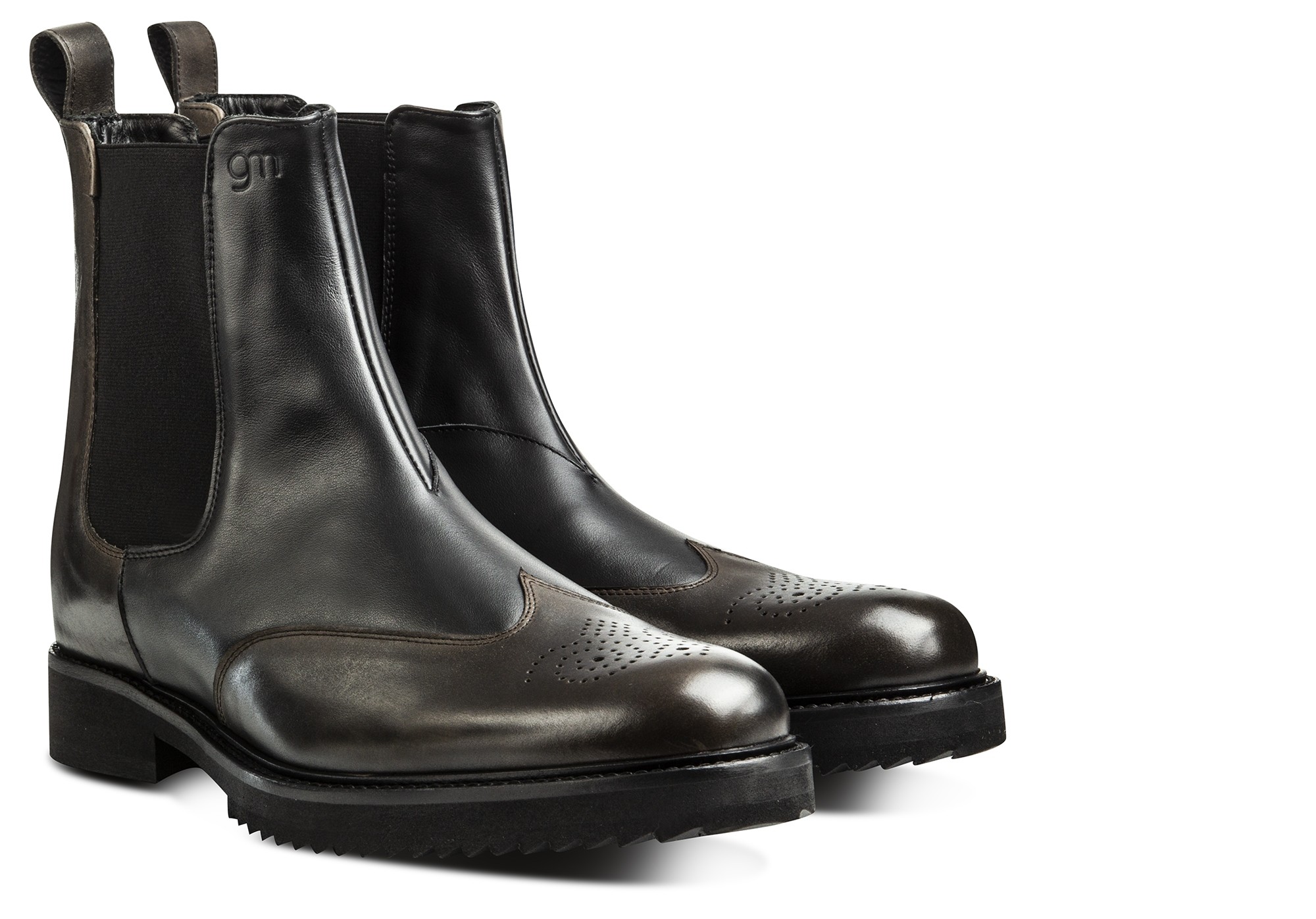 Character, personality, and style: these are the premises of the new elevator Beatles boots, designed by GuidoMaggi. The upper is handcrafted leather with an innovative double-tone colour: the front in black, while the back and toe in a captivating shade of iridescent buffered grey. The elevator shoe is further embellished with an elegant dovetail and flower toe. With silk elastic and shoe puller, it offers up to 4.0" of extra height in total comfort and discretion. An exclusive model that can enhance the casual-chic outfits of the season. 100% made in Italy.