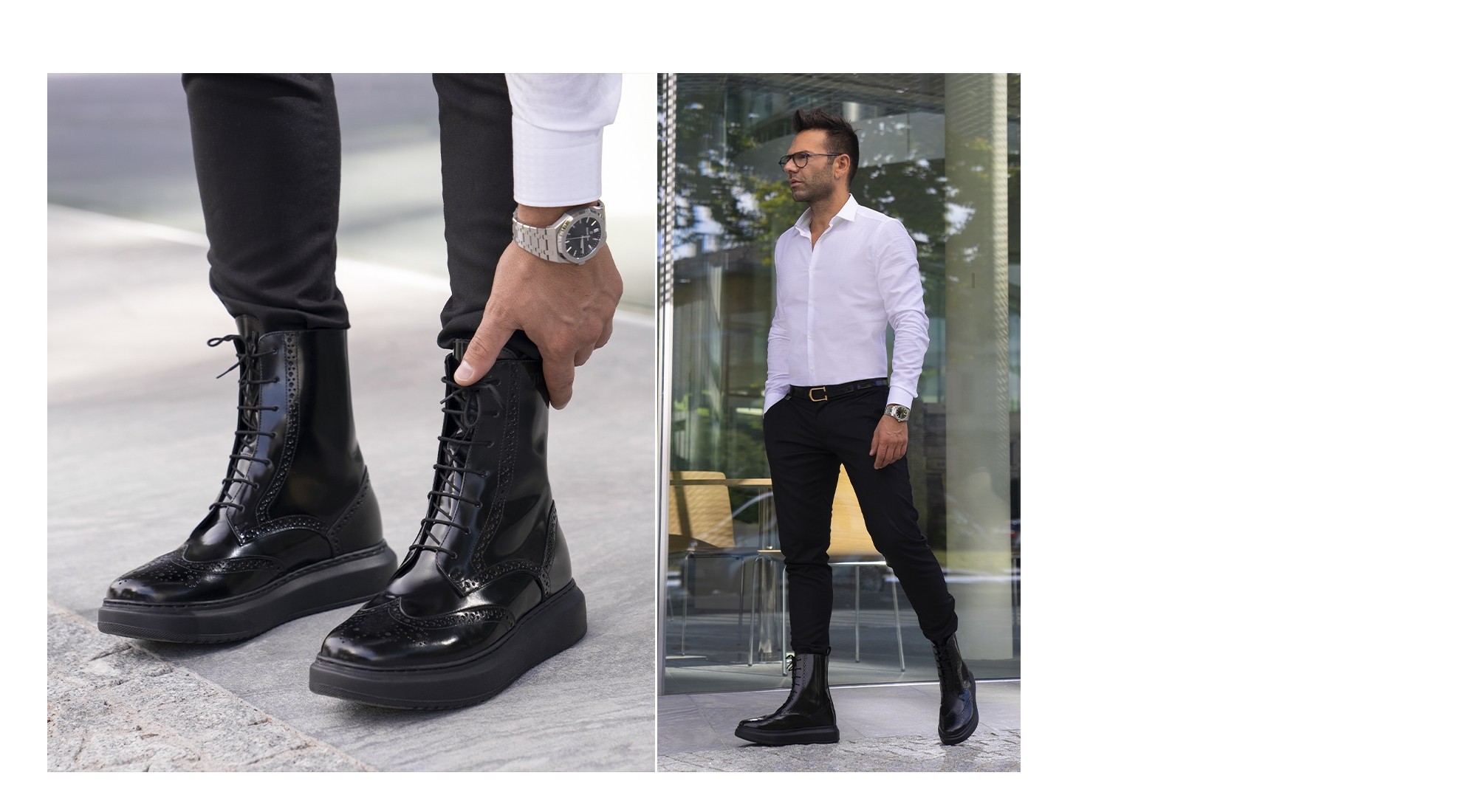 Edison is a versatile boot with a contemporary design able to increase height from 2.4 (6 cm) up to 4 inches (10 cm) in absolute comfort. Handmade in Italy.