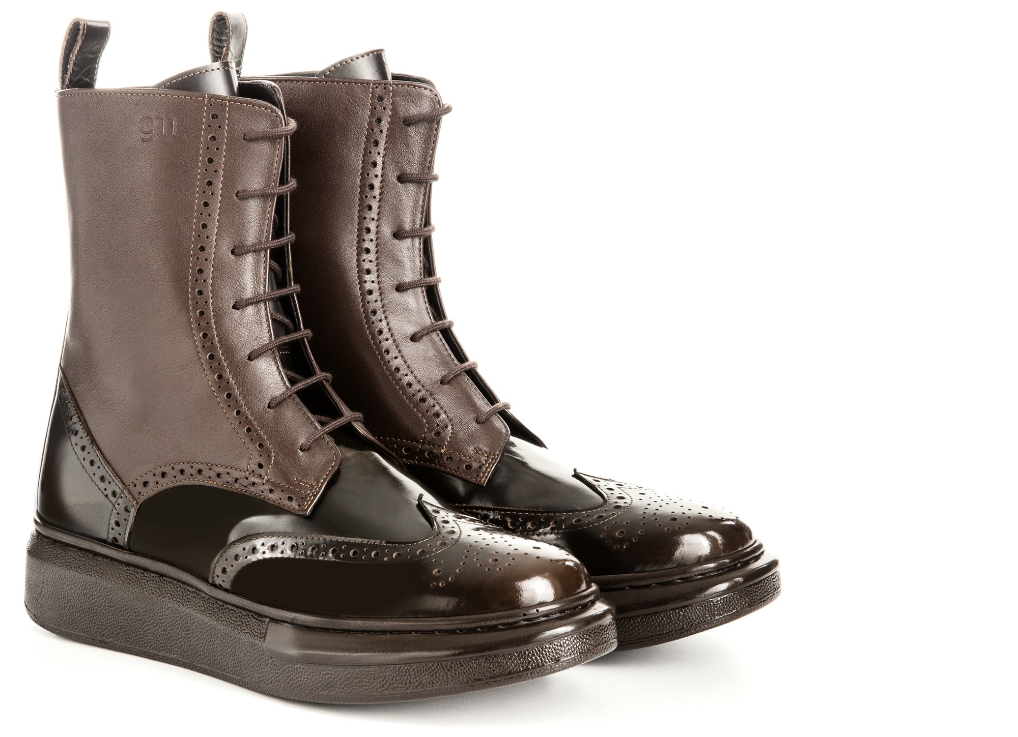 This elevator model signed by GuidoMaggi, meticolously finished in every detail, is ideal for those who love long walks. It has tone-on-tone laces that create an unprecedented contrast with the shades of brown, making it even more stylish. Handmade in Italy.