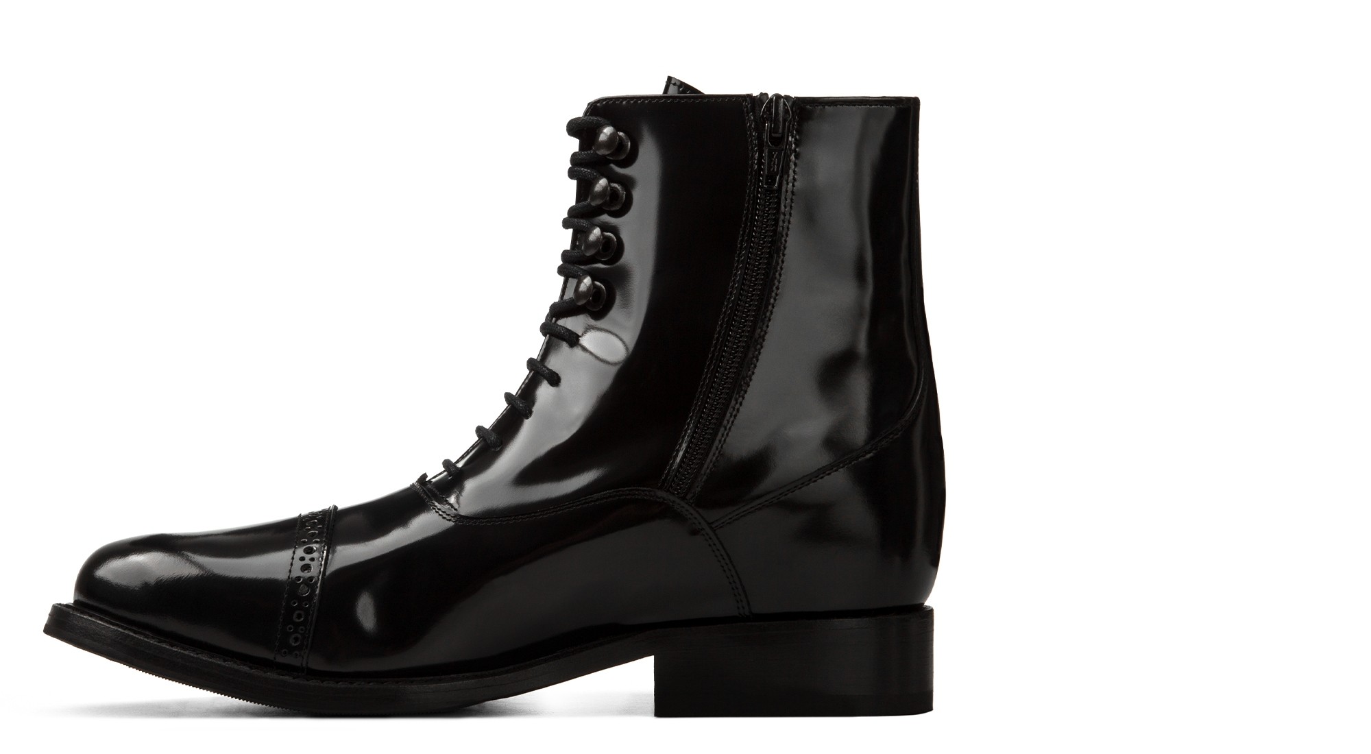 The Farnese combat boot in black patent leather is the ultimate expression of contemporary luxury style. Radiant, elegant, and full of personality, its genuine Italian leather sole adds a touch of class to the most sophisticated outfits while harmoniously increasing stature.