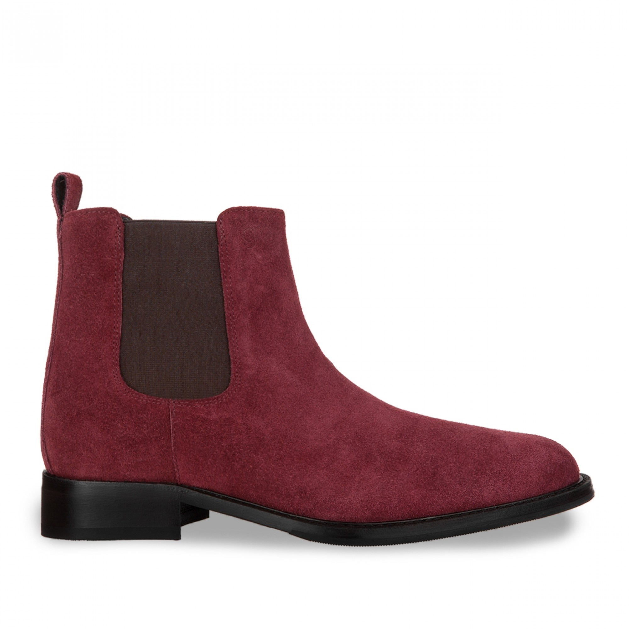 Modern reinterpretation of the classic Beatle Boots with upper in fine burgundy suede and stiched leather sole with anti slip rubber.