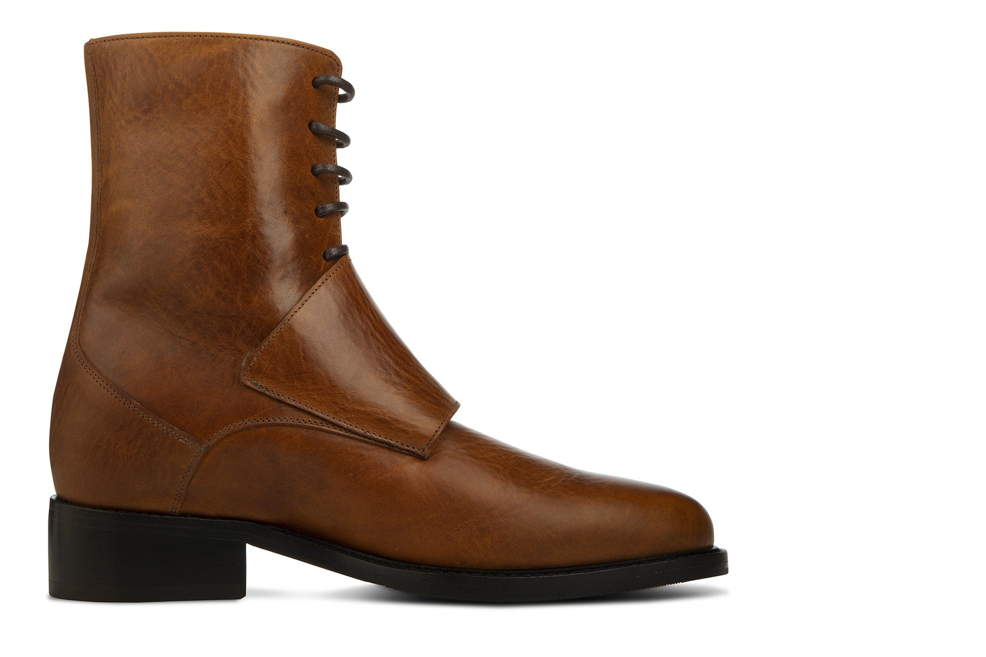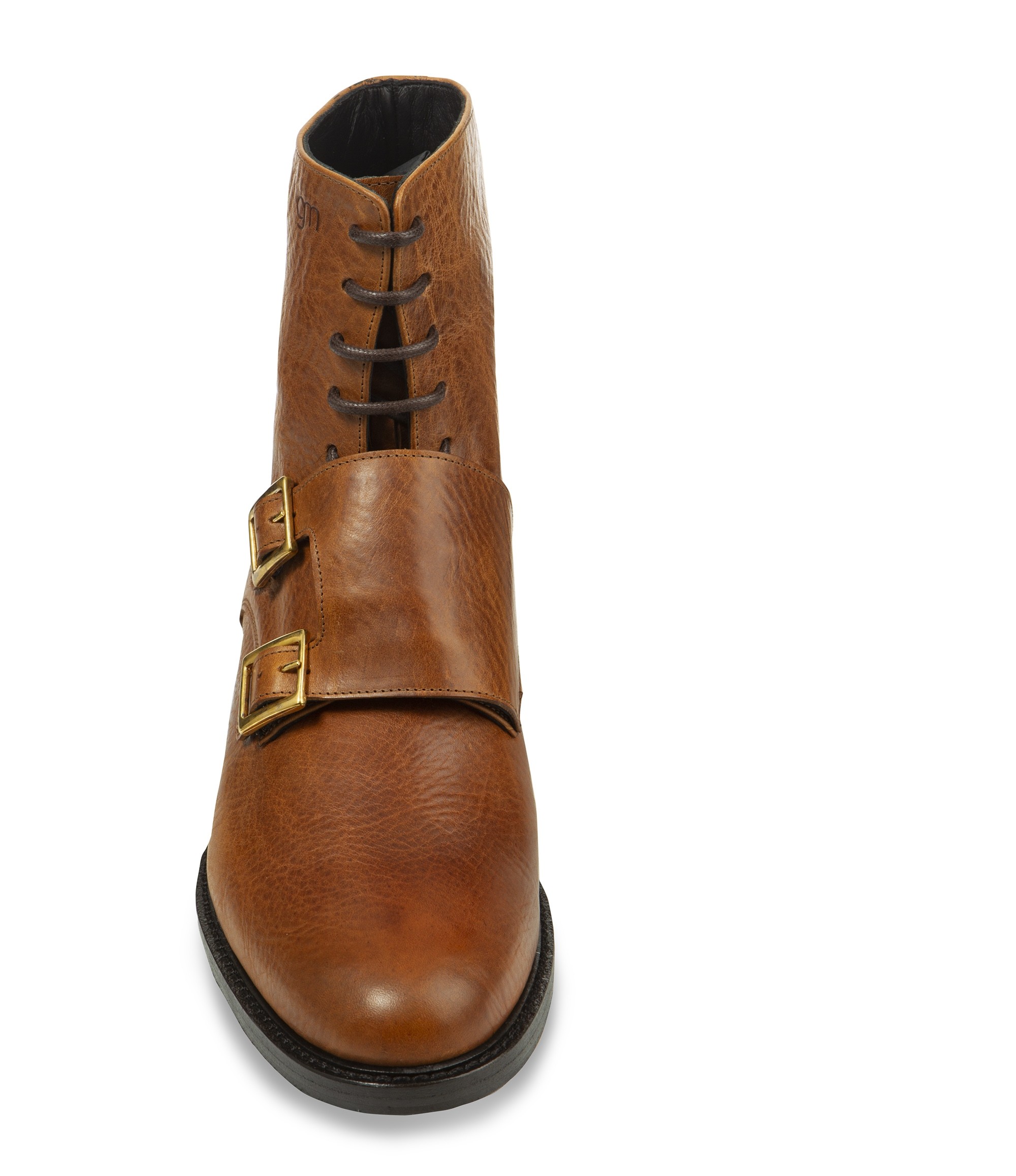 Unique and original, the GuidoMaggi elevator boot with double buckle and laces. It has an elegant flap, a vintage style that turns a little on the dandy side, embellished with gold-plated and micron-plated buckles. The upper is in Tuscan nappa leather with a lived effect. Ideal for spring/summer casual-chic looks, it ensures an extra 4.0" in total comfort and discretion. The sole is in 100% Italian leather.
