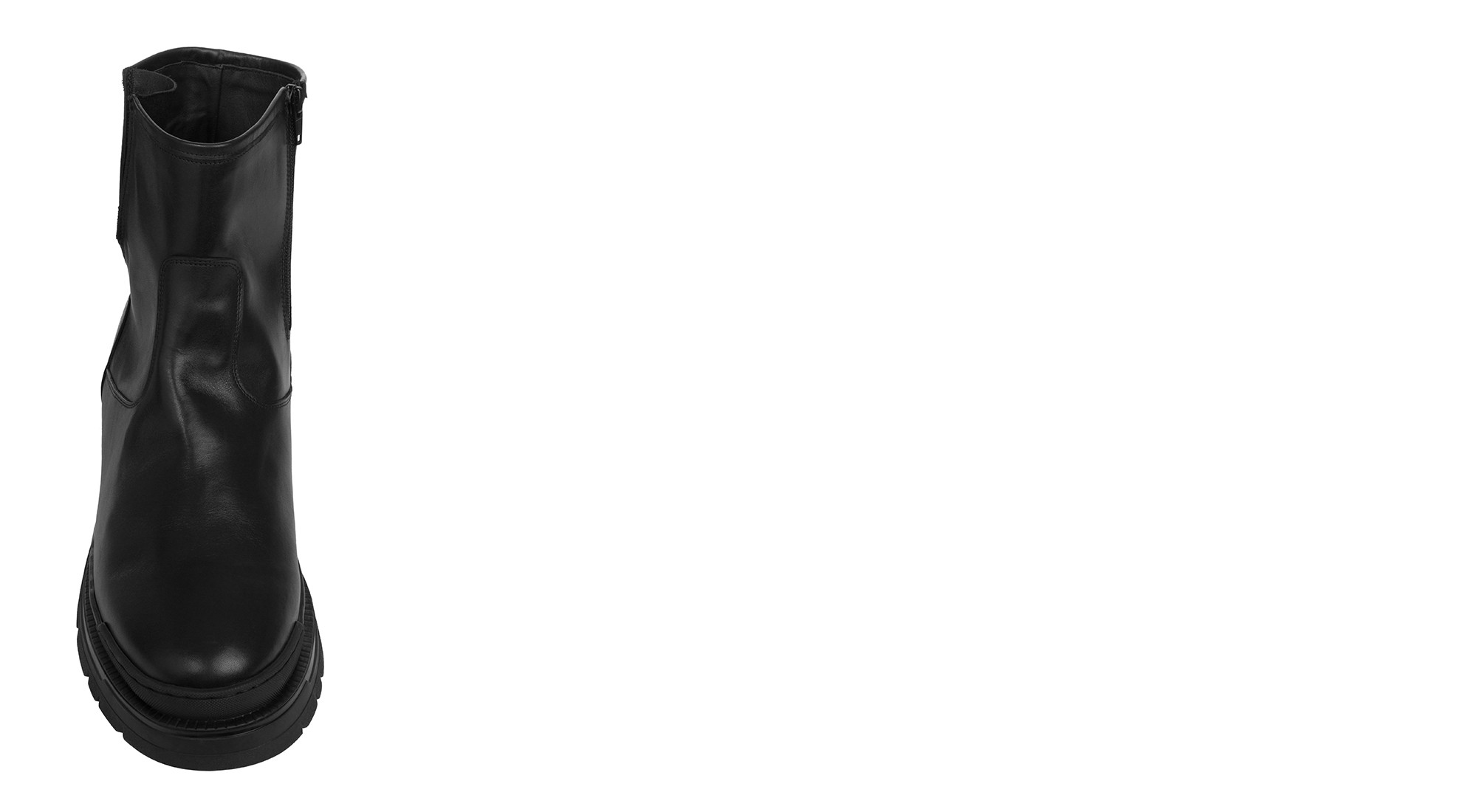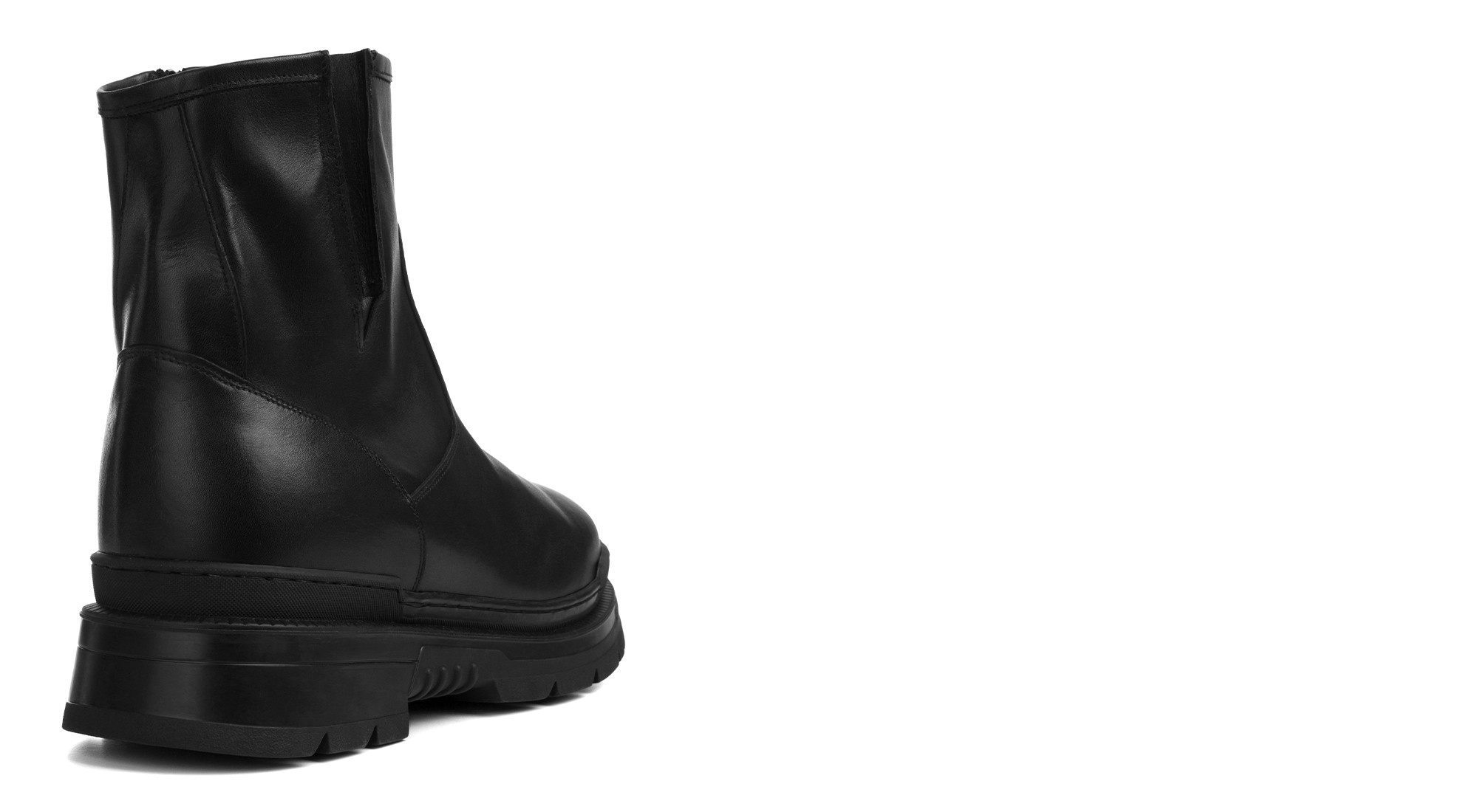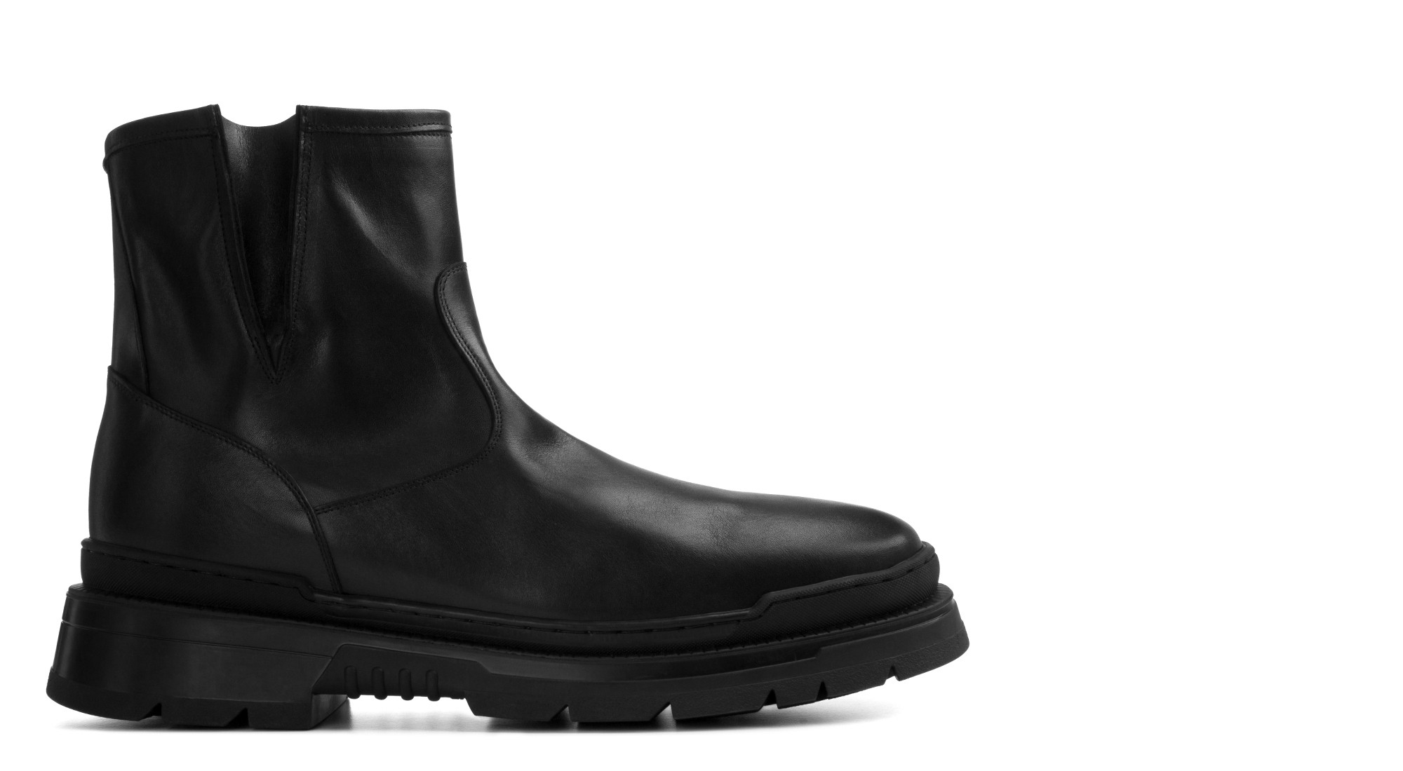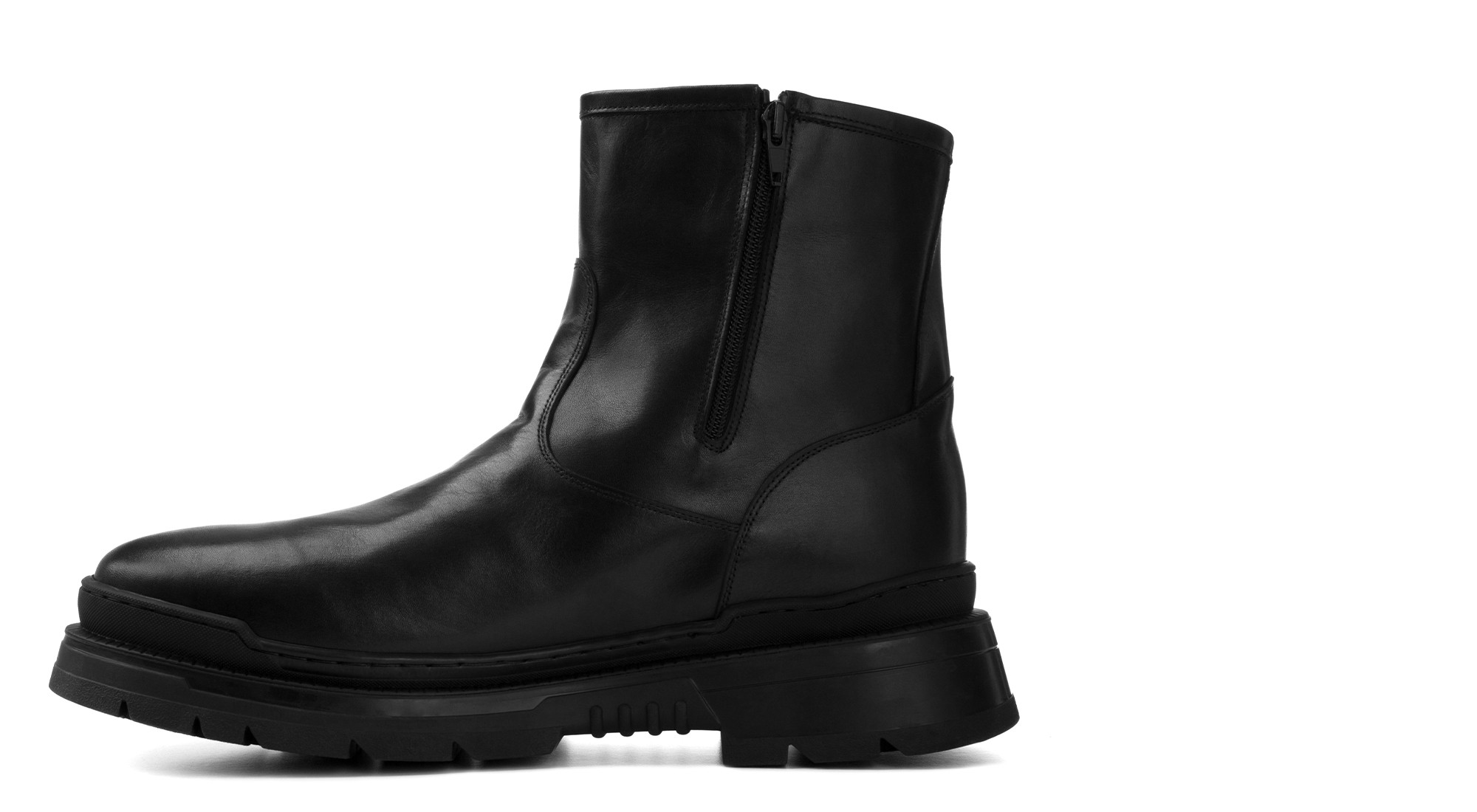 Handmade leather boots with a black vegetable-tanned calf leather upper, featuring a side zip and 100% rubber outsole. The urban design adds a bold touch to your everyday outfits.