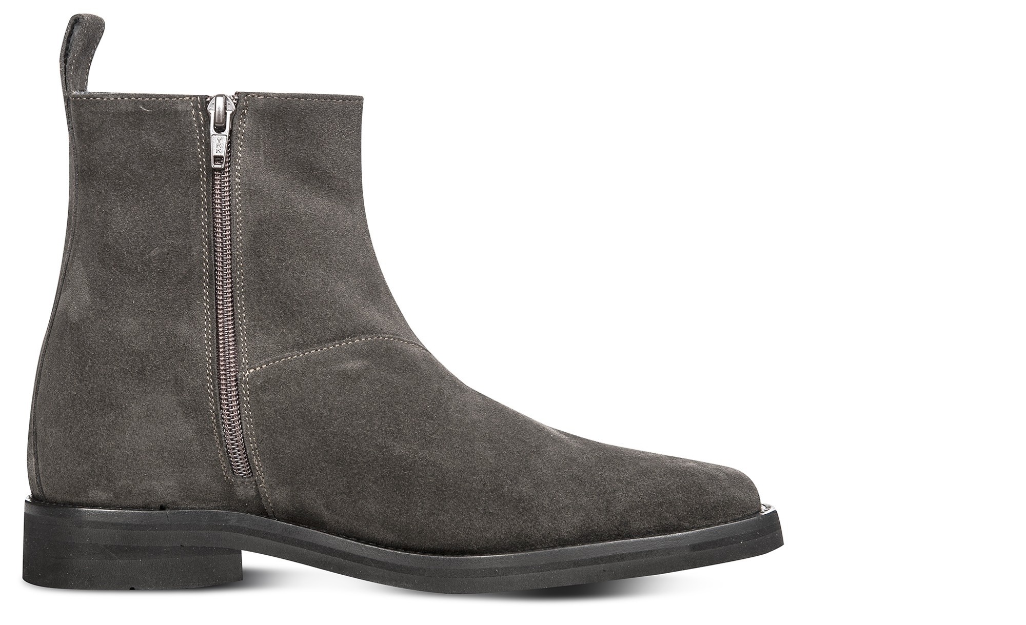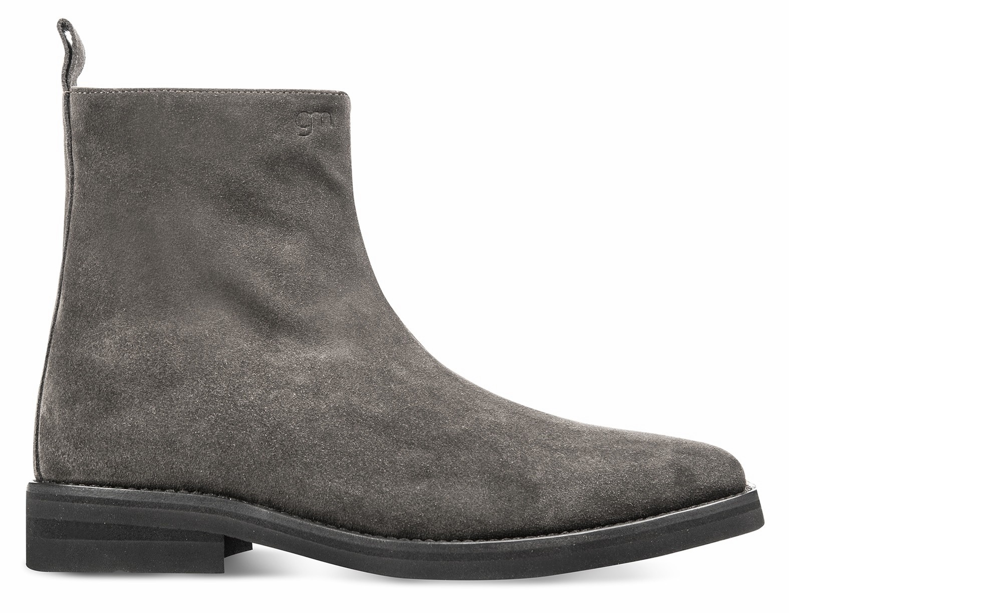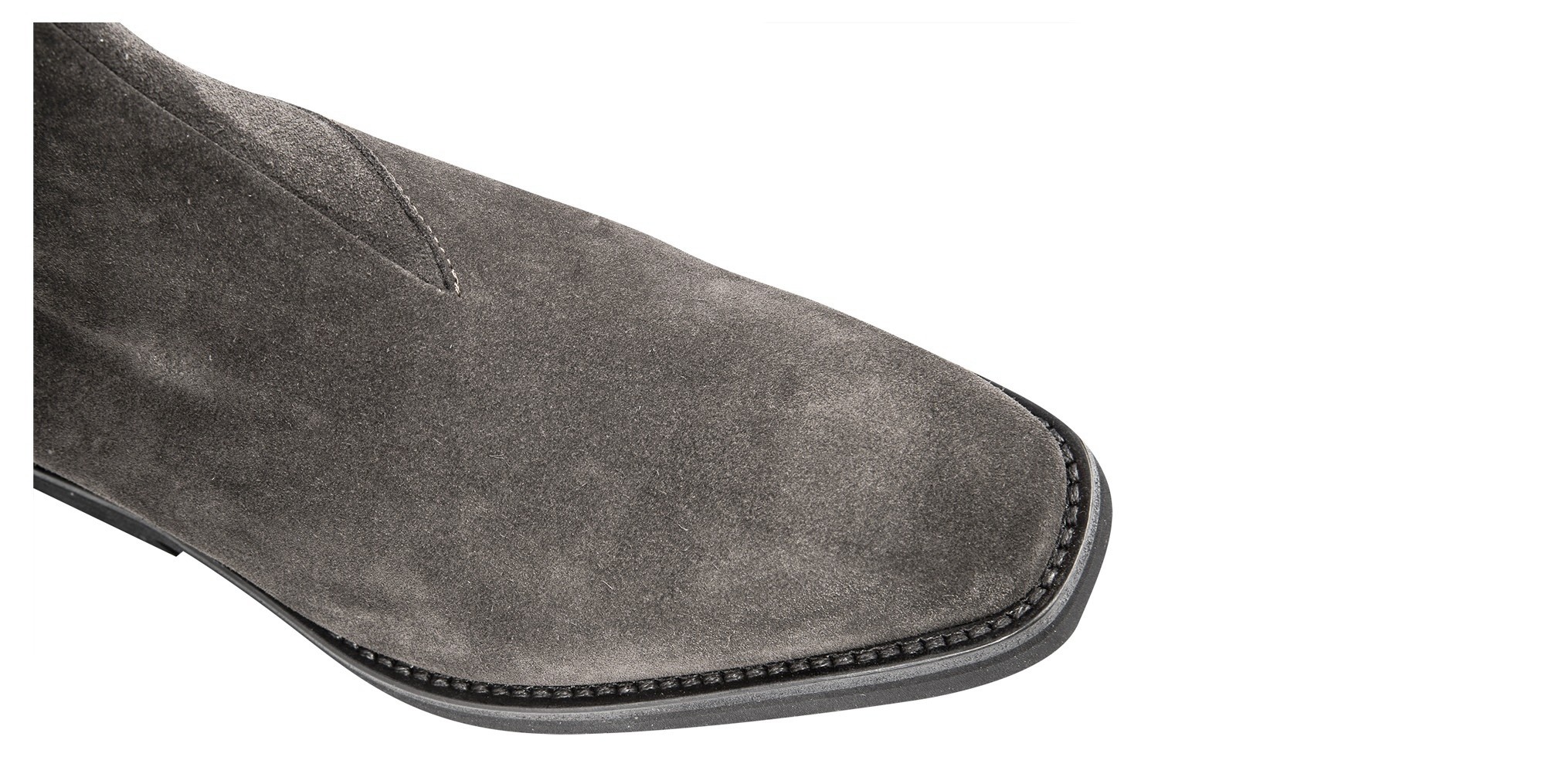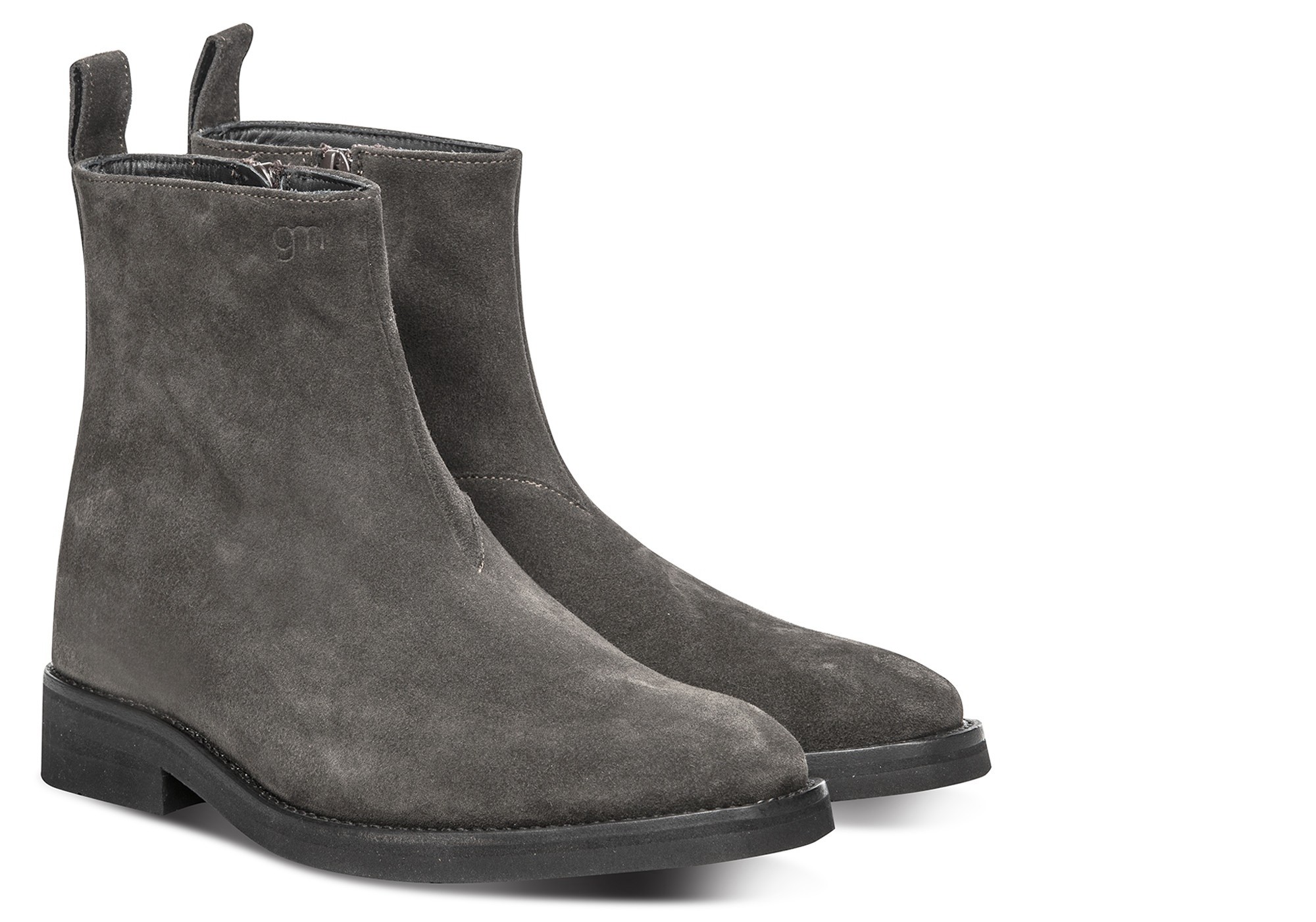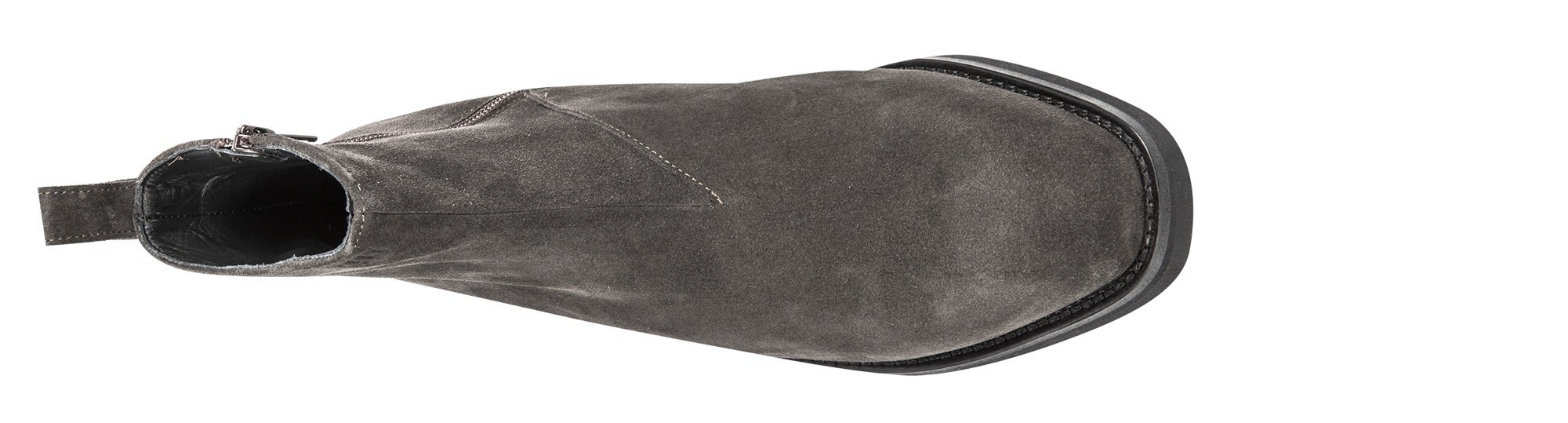 Handcrafted elevator chelsea boots with upper made of soft suede calf leather featuring a particular dove grey color and Vibram rubber sole. The closure is regulated by a side zip.