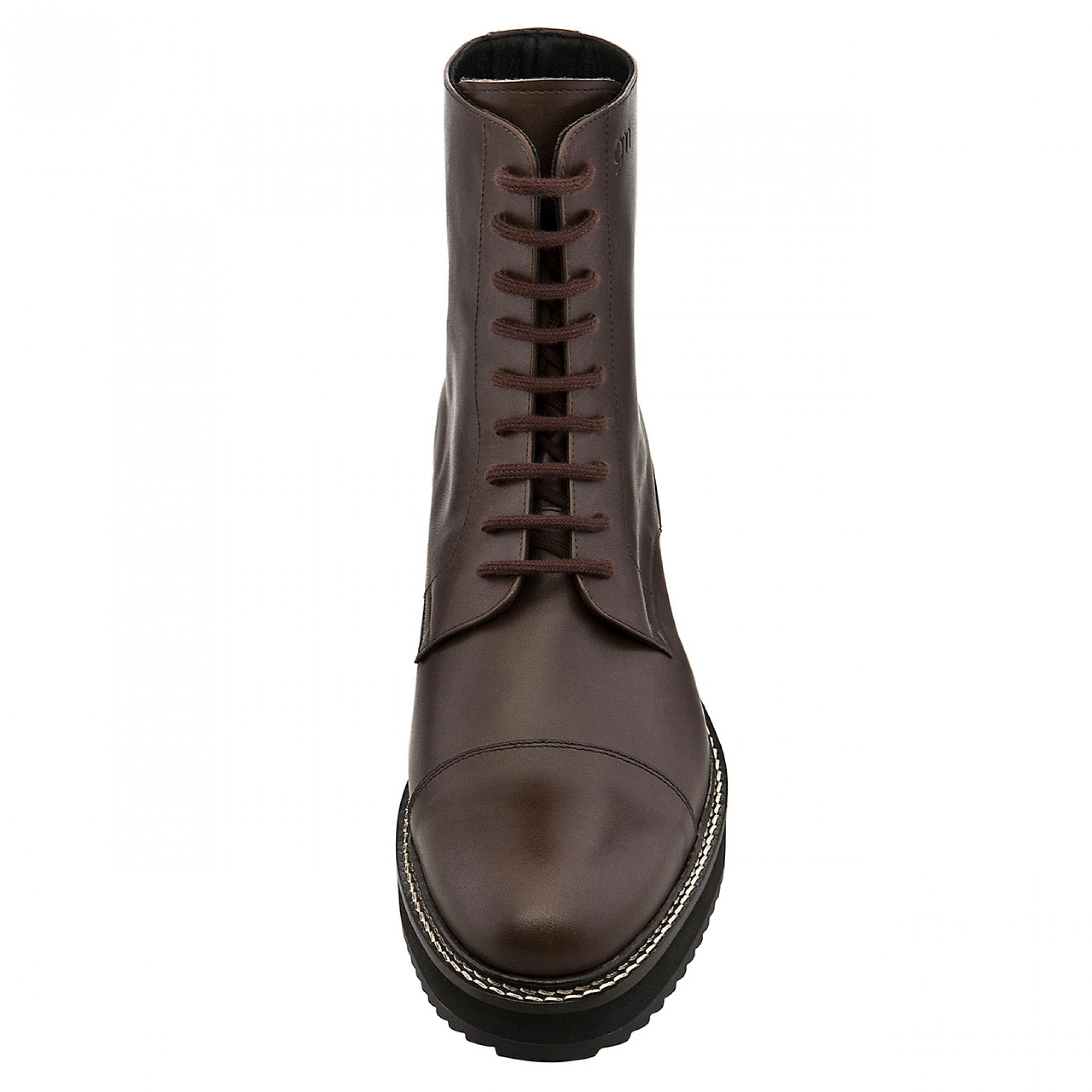 Upper in dark brown full grain leather. Lining in soft goatskin. Insole and midsole in genuine leather. Cotton waxed shoe laces. Handcrafted, anti-slip rubber sole. Height increase: 4 in(10cm) , 4.3 in(11cm), 5in(12.5cm), 5.3 in(13,5cm), 6 in (15cm). Hand Made in Italy