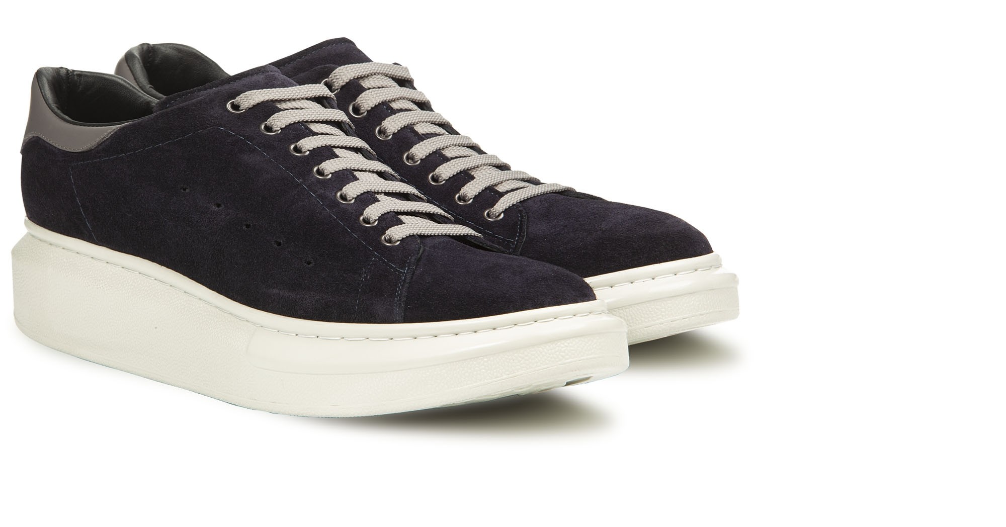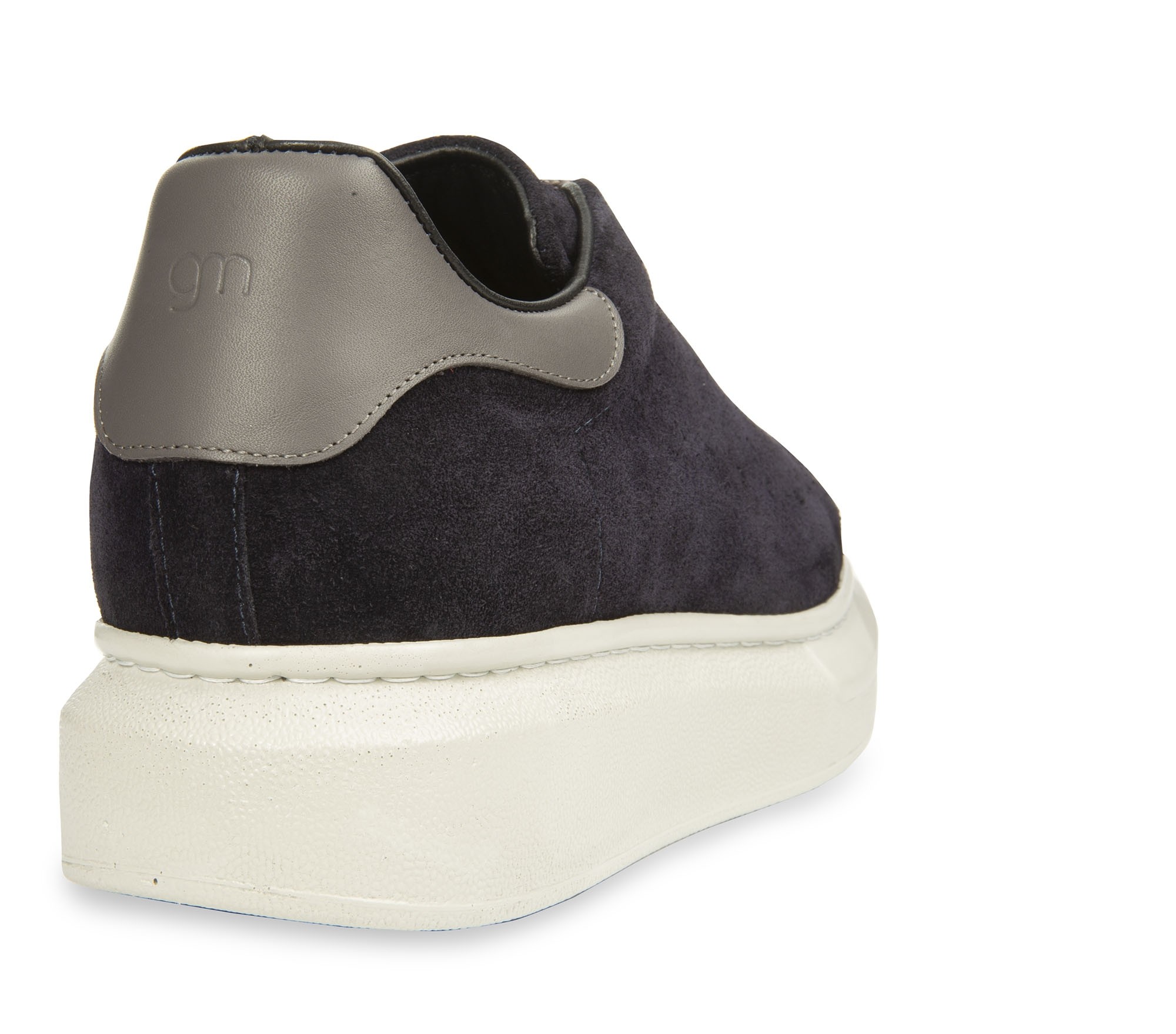 GuidoMaggi's elevated sneakers are dynamic and discreet, elegant and refined. The sports shoes from the Lecce-based fashion house go further, redefining the boundaries of urban style. The upper, masterfully handcrafted by the brand's skilled artisans, is in soft navy blue suede, while the spur is in gray full-grain leather. The super-lightweight sole is made of light beige rubber. Ideal for sporty chic looks, it adds up to 3.1"of extra height. Handcrafted in Italy.