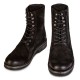 Red and black: these are the main colours of the Stendhal elevator boots, made with upper in tumbled calf leather and shiny calfskin. The striped sole is made of super-light rubber.