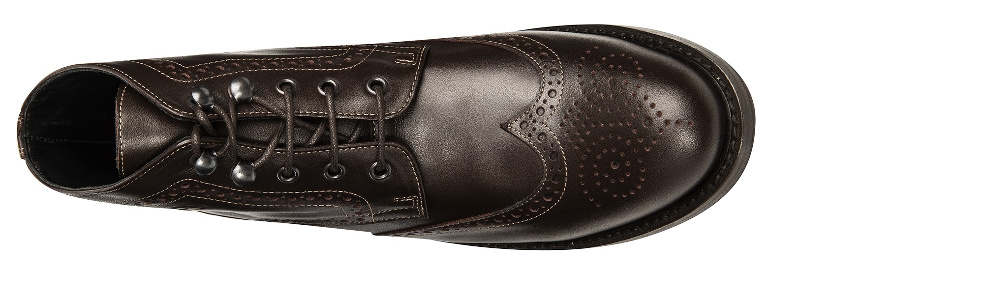 The essential design of the GuidoMaggi's elevator Derby boot is personalized by a genuinely unique brogue processing. Timeless elegance, the perforated dovetail gives the shoe an exclusive allure, a detail that expresses refinement and fine craftsmanship. The upper is in full-grain leather, has classic eyelets and hooks, and the sole is 100% Italian leather. Increase your height up to 3.1" in total comfort and discretion. Perfect for seasonal casual chic outfits, the model combines the charm of English style with the quality of the true Made in Italy.