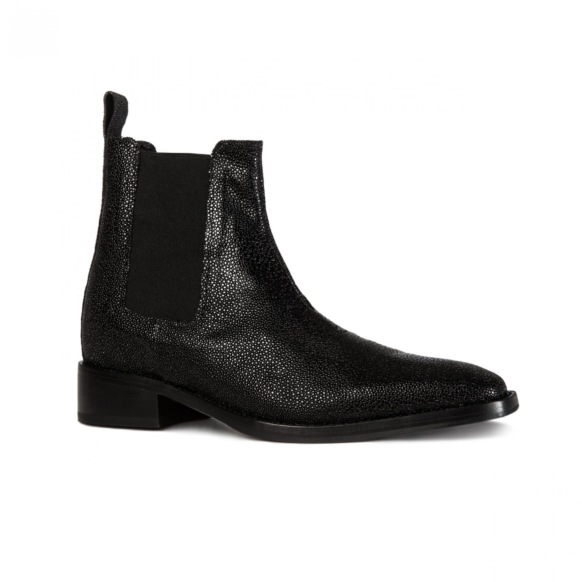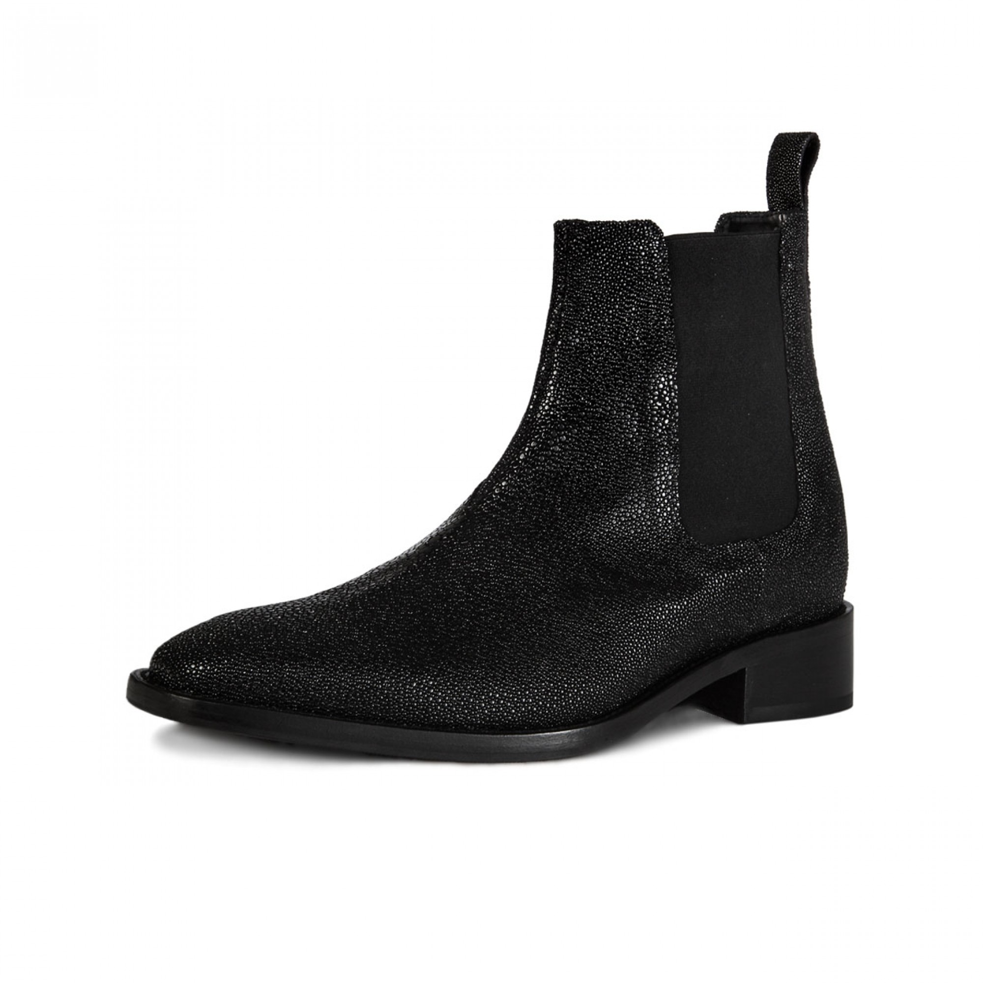 Exclusive height increasing ankle boots with upper in fine stingray leather and Blake stitched leather sole. The stingray skin - also known as Galuchat - boasts a great durability and has always been highly appreciated for its extraordinary pearly effect.