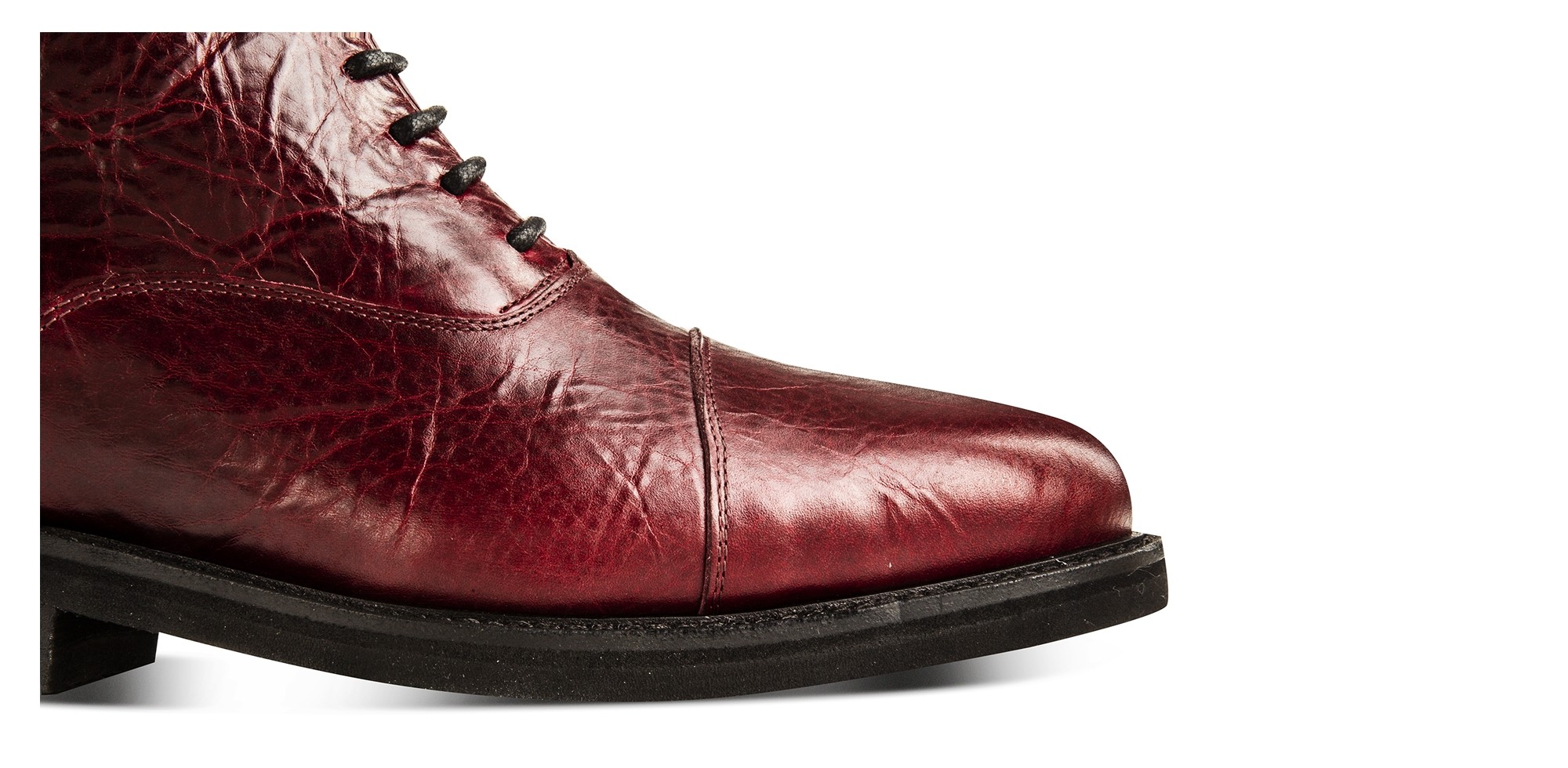 Ankle boot in burgundy Tuscan nappa leather with a stunning vintage effect and super light rubber sole and hook laces that adds a sophisticated tone. It is a timeless men's elevator model, handmade by our master craftsmen, whose charm increases over time as you wear it. Great fit, suitable for every season's outfit, increases height up to 4 inches ( 10 centimetres )in total comfort and discretion. 100% made in Italy.
