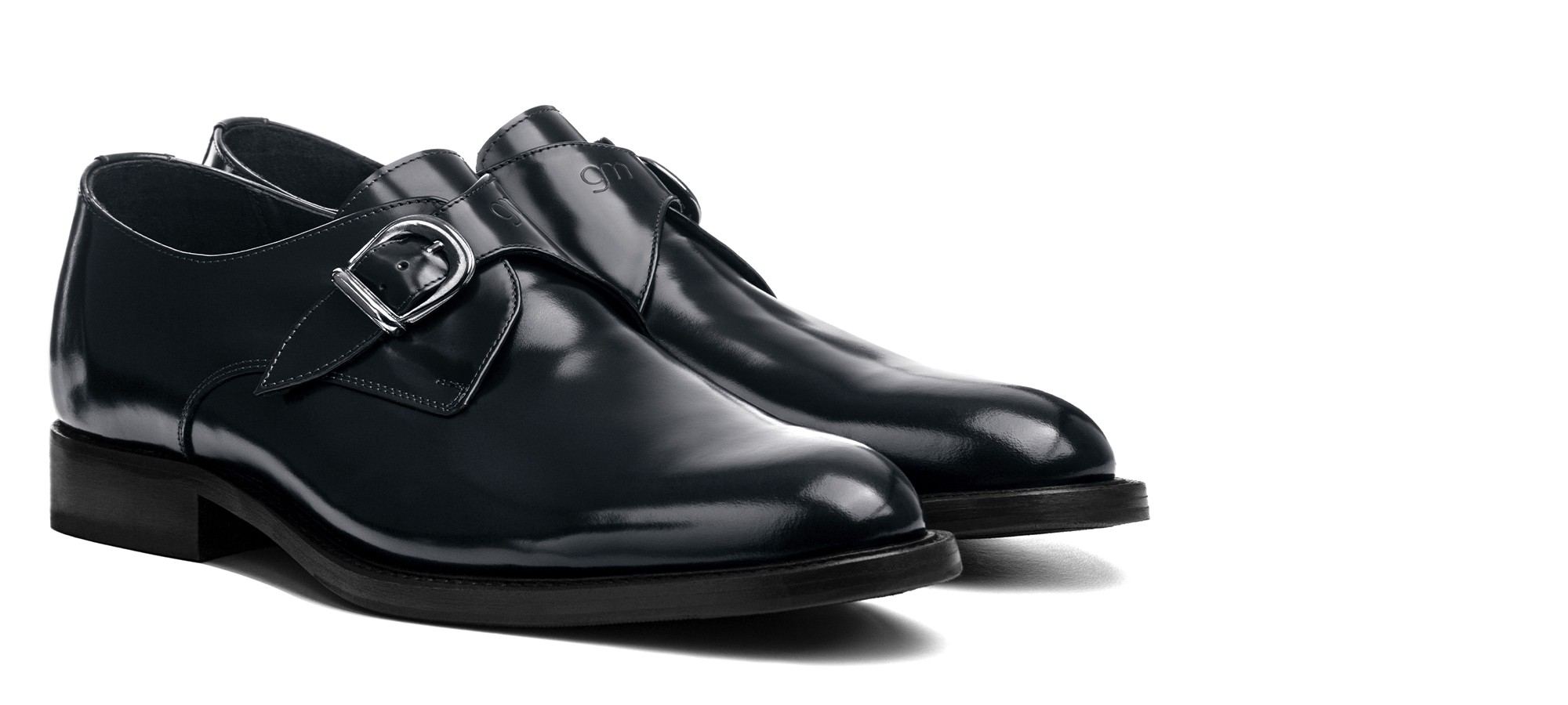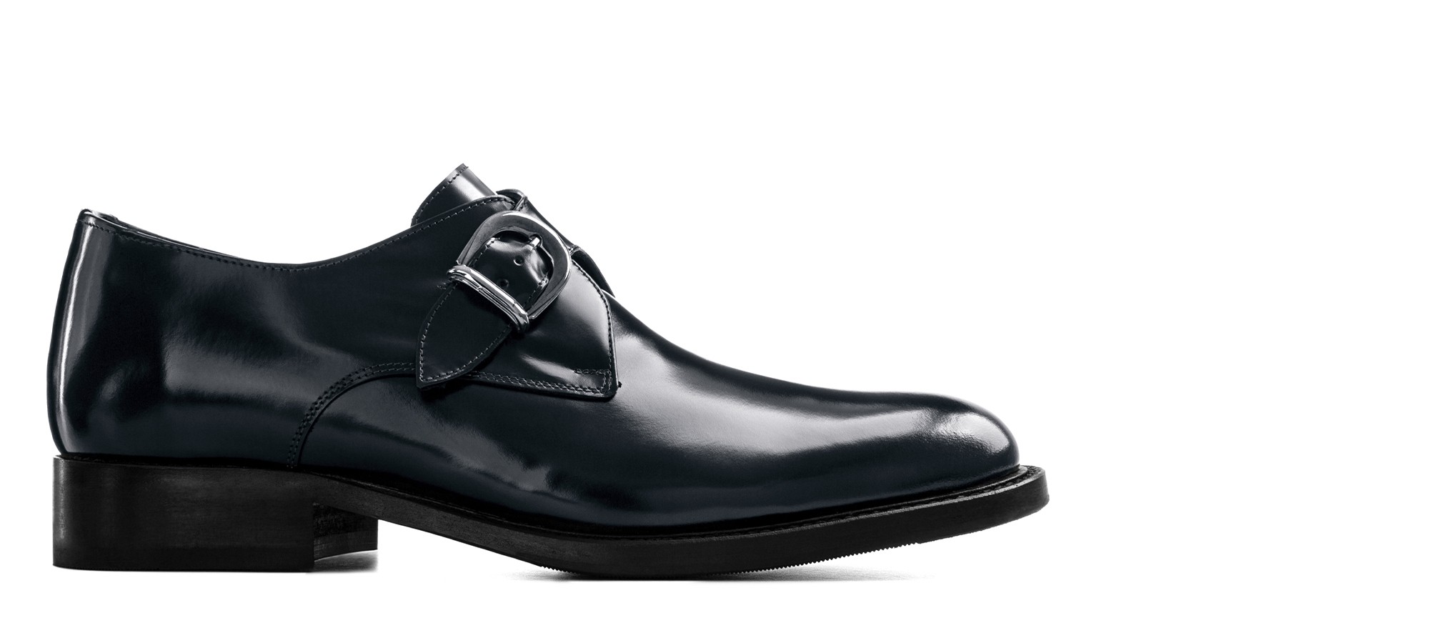 Handmade Italian craftsmanship, this monk strap model is crafted from soft, shiny brushed blue calf leather of premium quality. Featuring a single silver buckle, this shoe features a 100% Italian leather sole.
