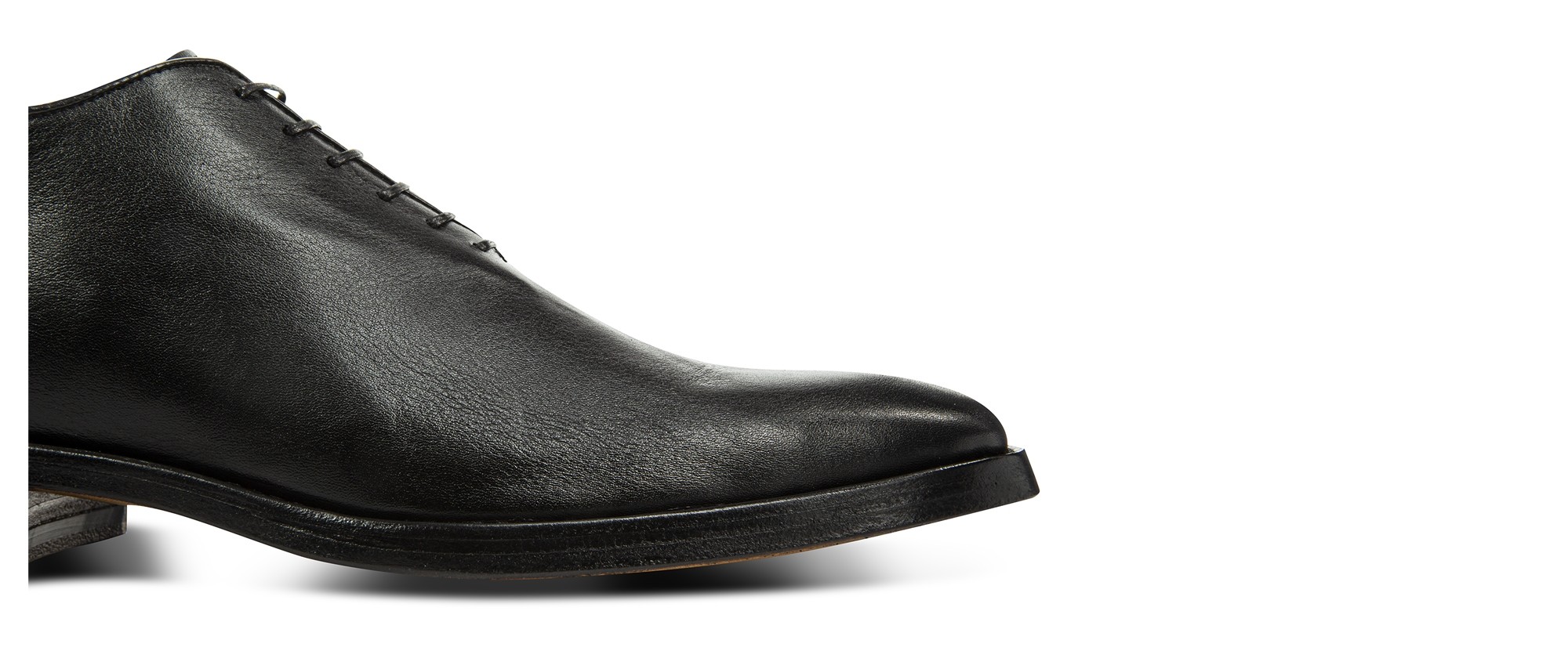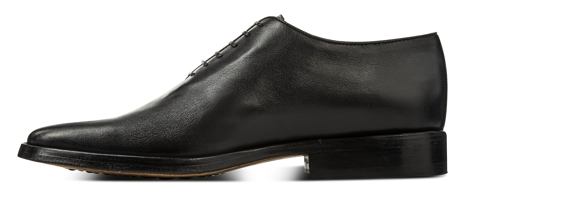 Elevator wholecut dress shoes handmade using the fine Goodyear welt construction with upper in vegetable tanned full grain black leather and real leather sole.