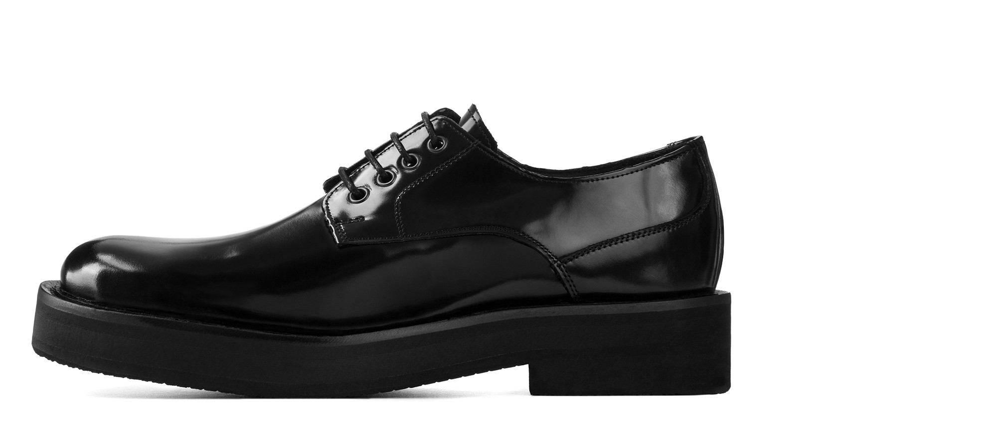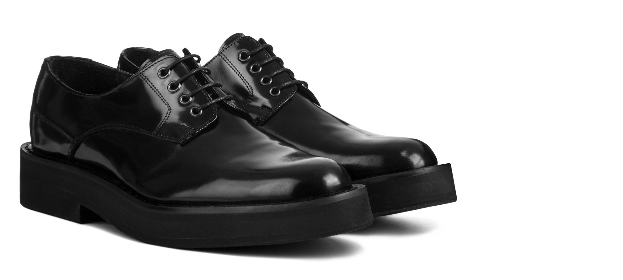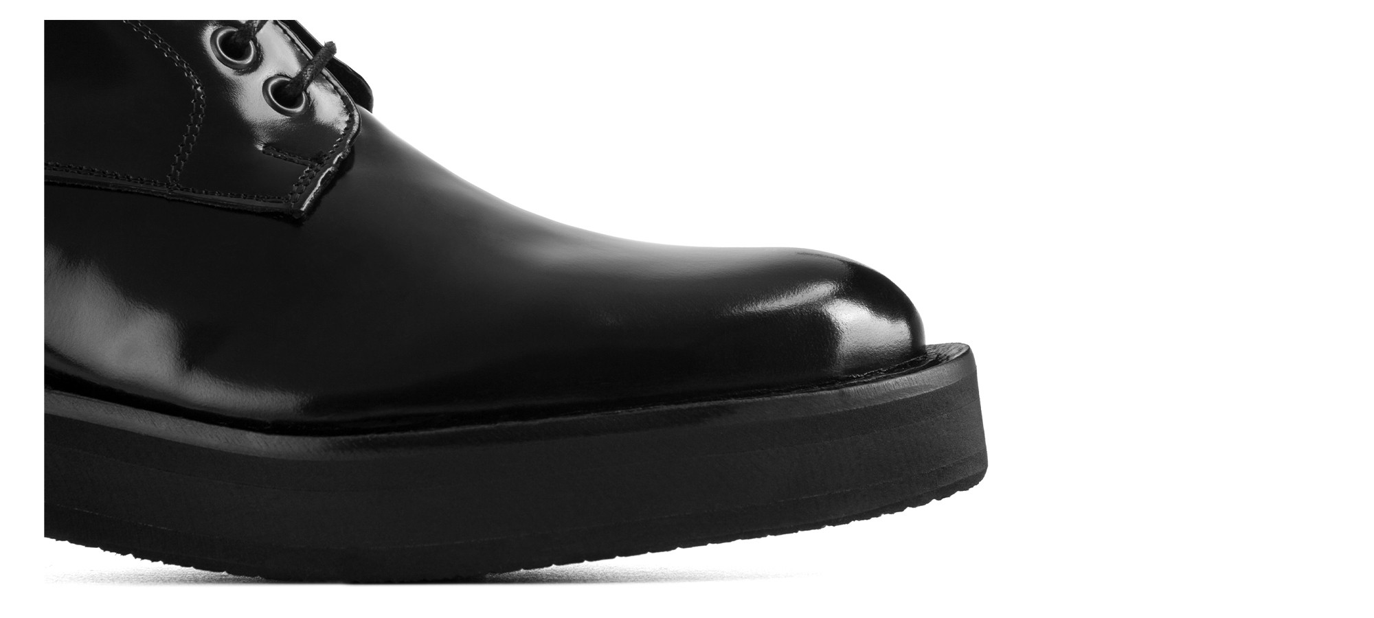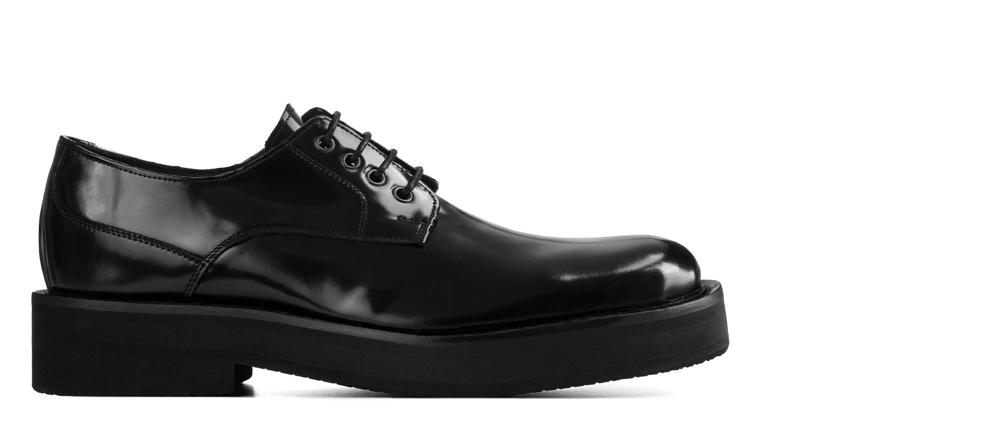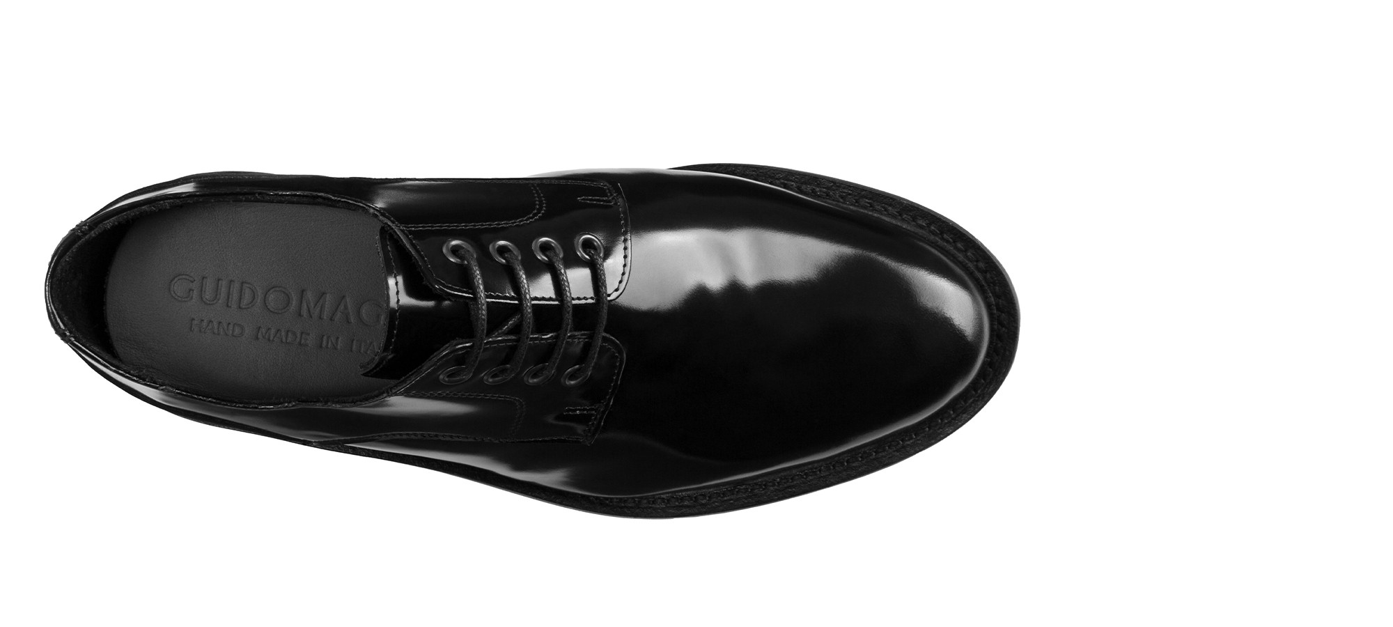 The Panoramica is a patent leather Derby with a bold character, made unique by its substantial sole and the patent leather upper. Ideal for minimalist yet strong looks, it features an internal elevator system that adds up to 3.1 inches of height with secrecy and flair.
