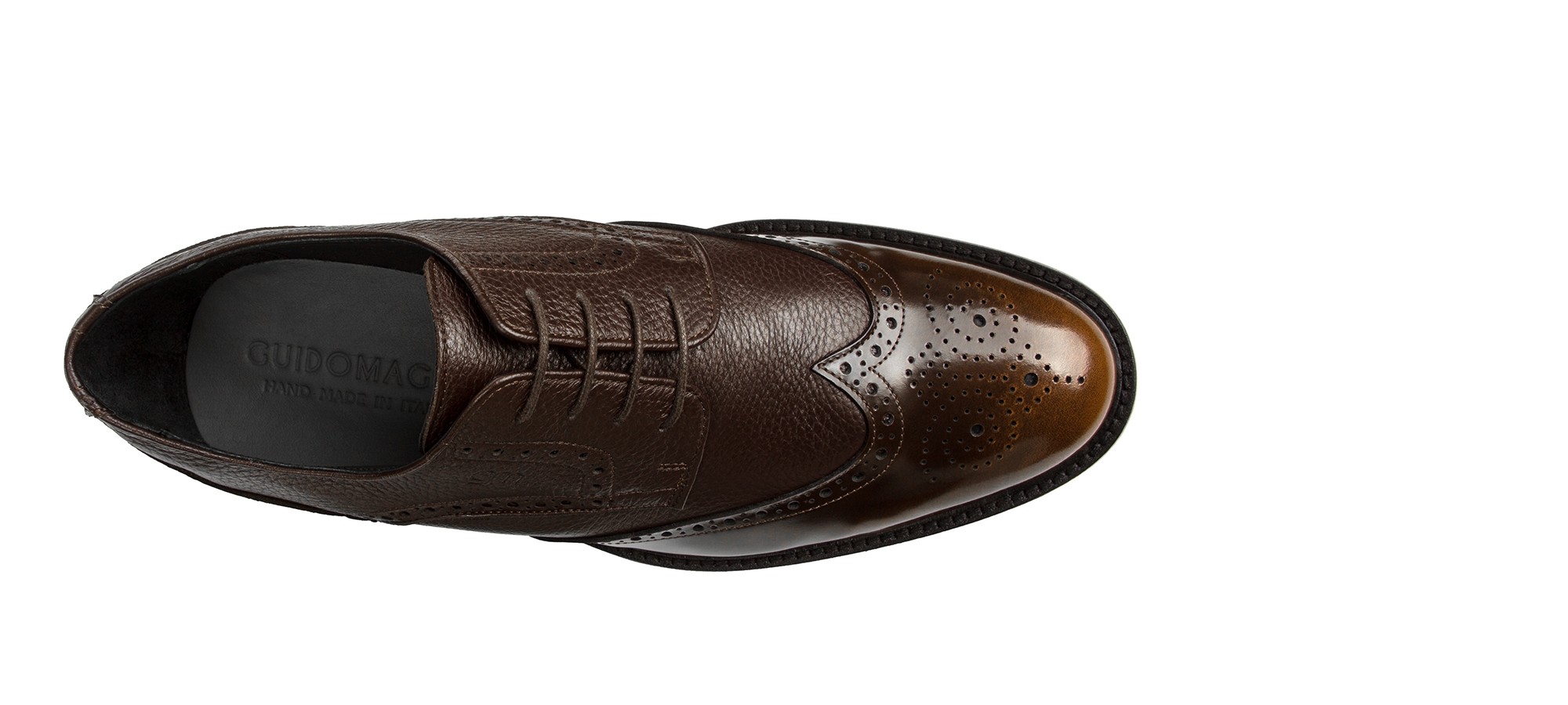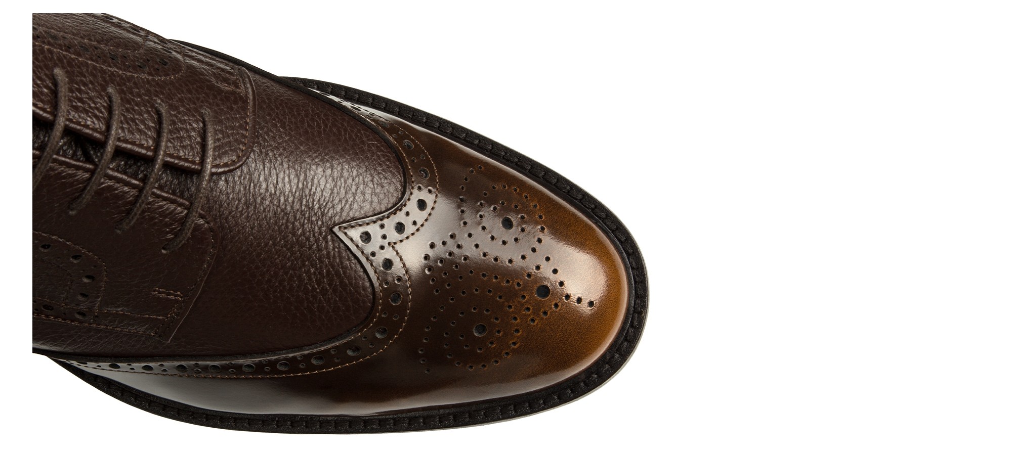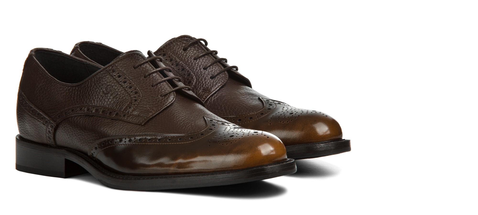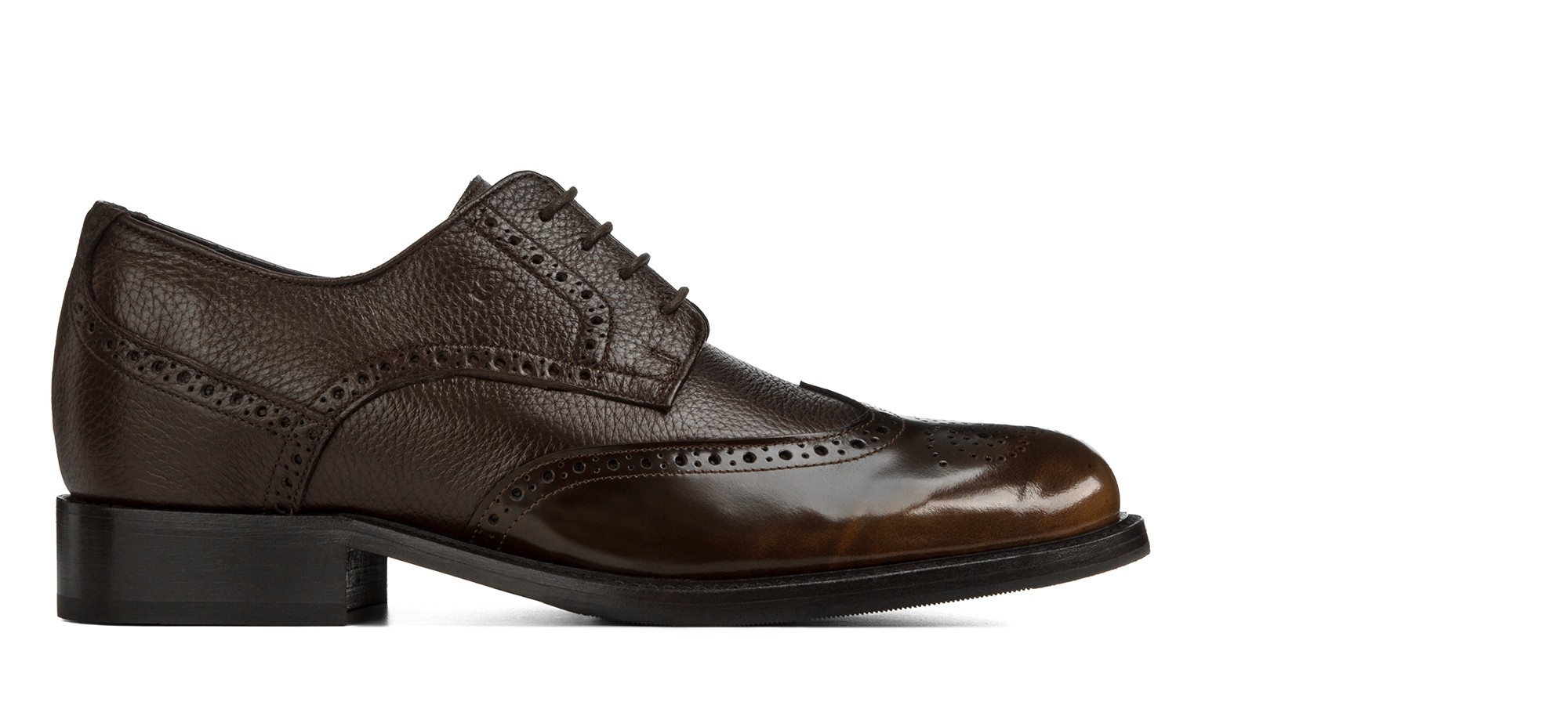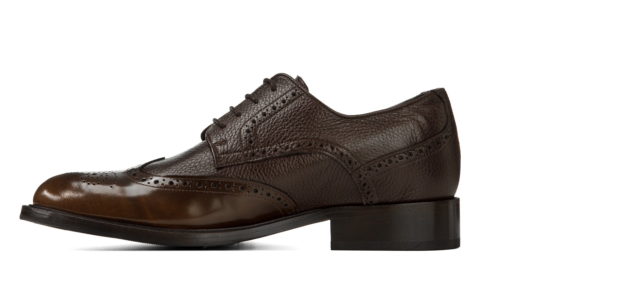 The Vipiteno Brogue Derby combines soft deerskin with a semi-glossy toe featuring a hand-finished "asportato" effect, achieving a perfect balance between craftsmanship and sophistication.