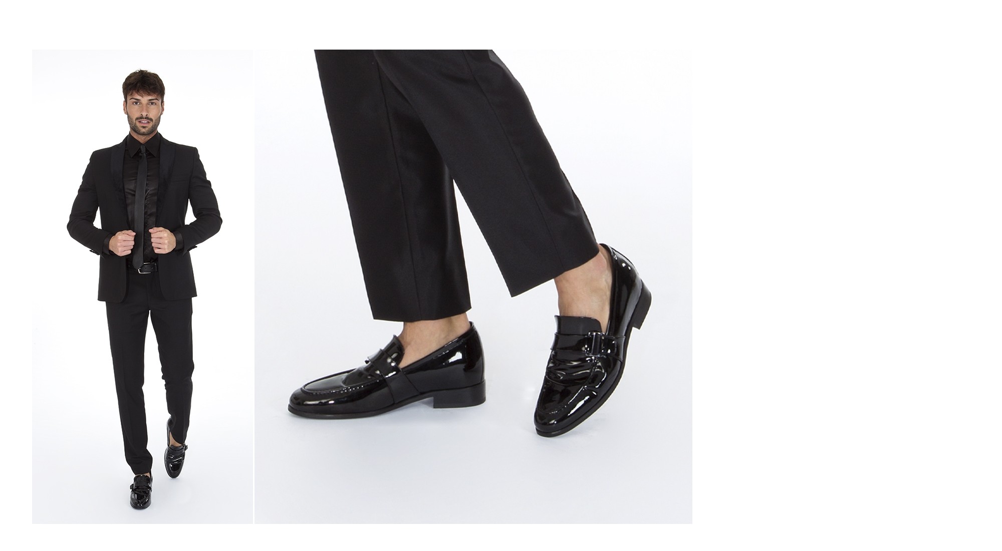 - Upper in calf black patent leather