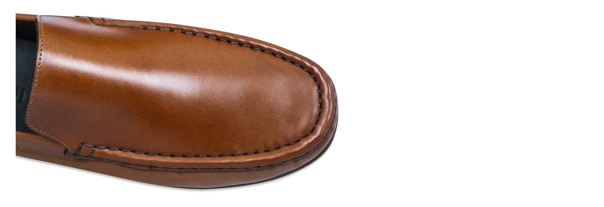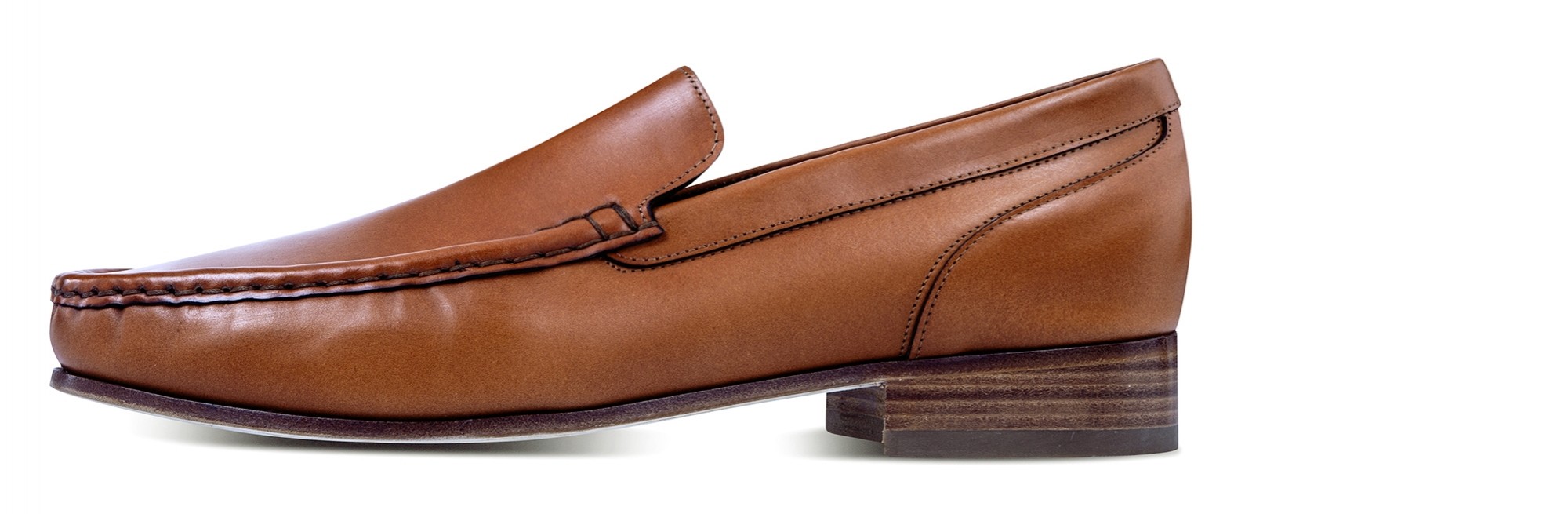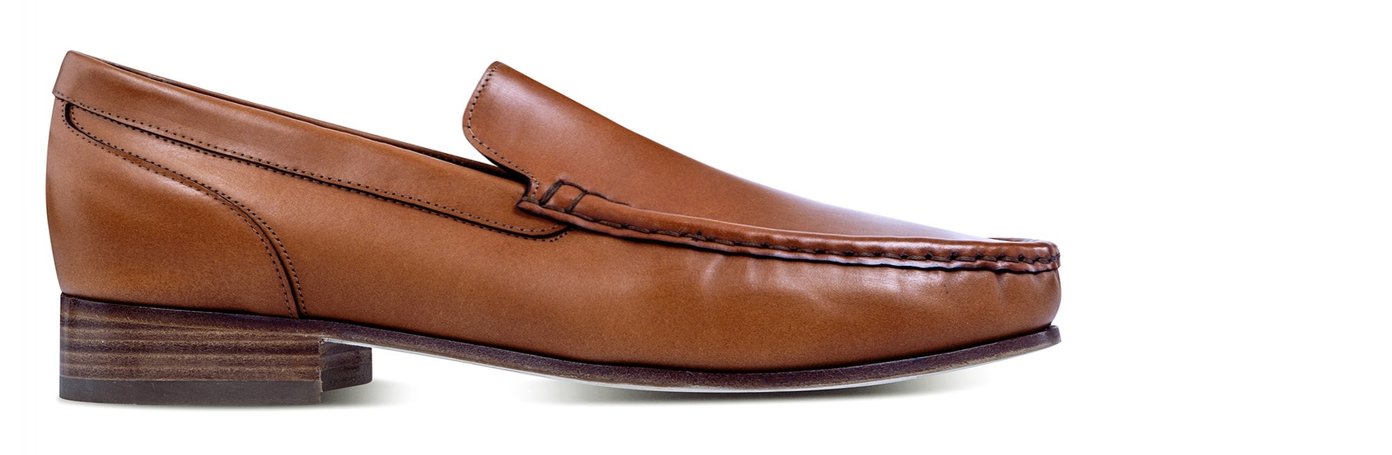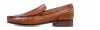 Luxury elevator loafers made of fine Shell Cordovan leather featuring a warm brown nuance and Goodyear welted leather sole.