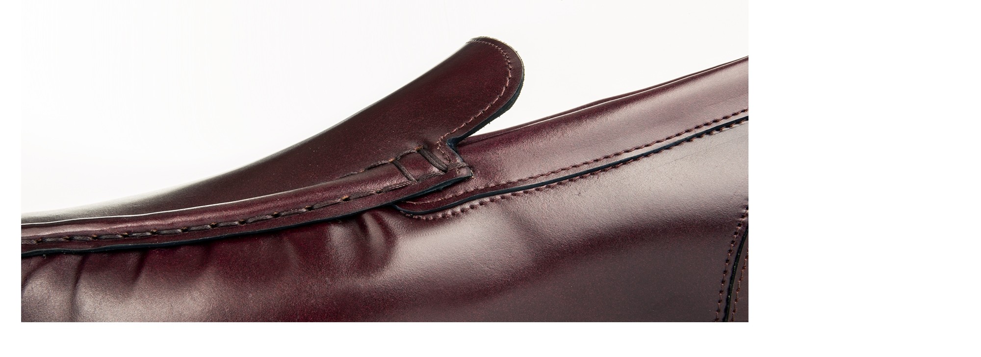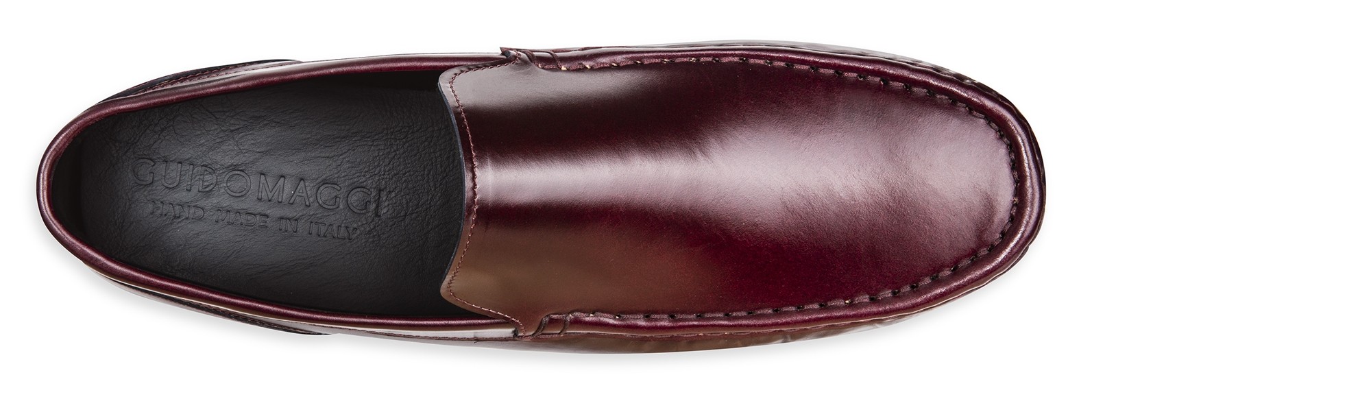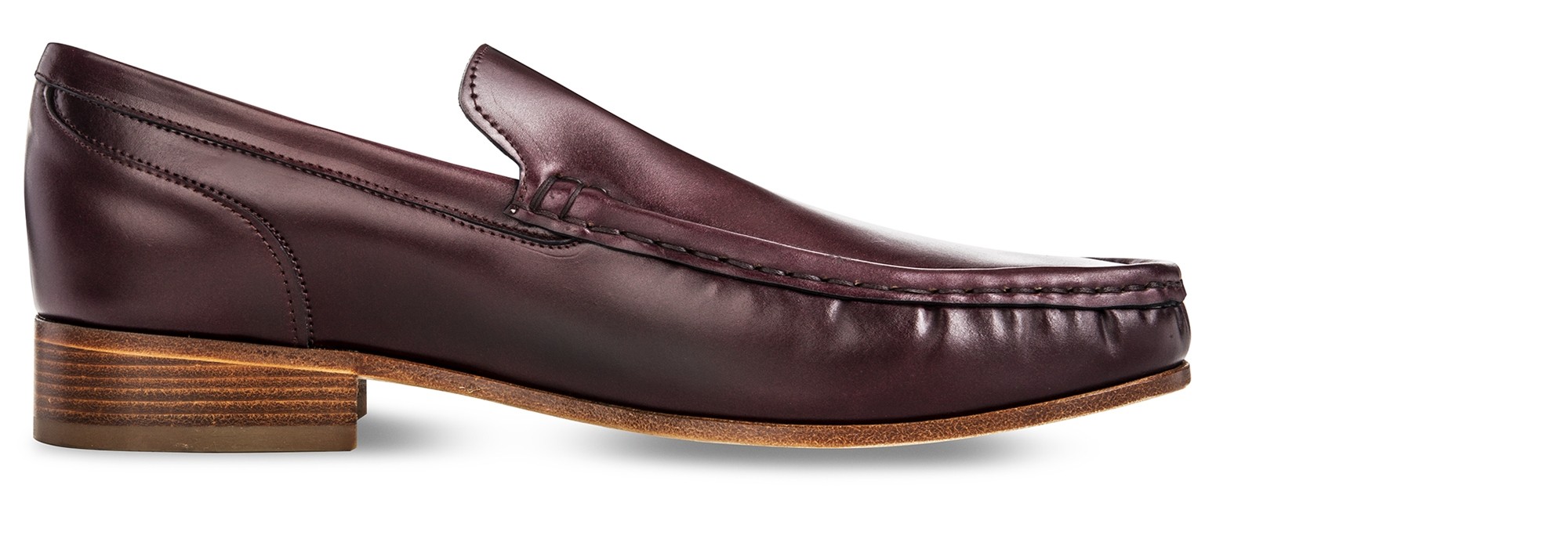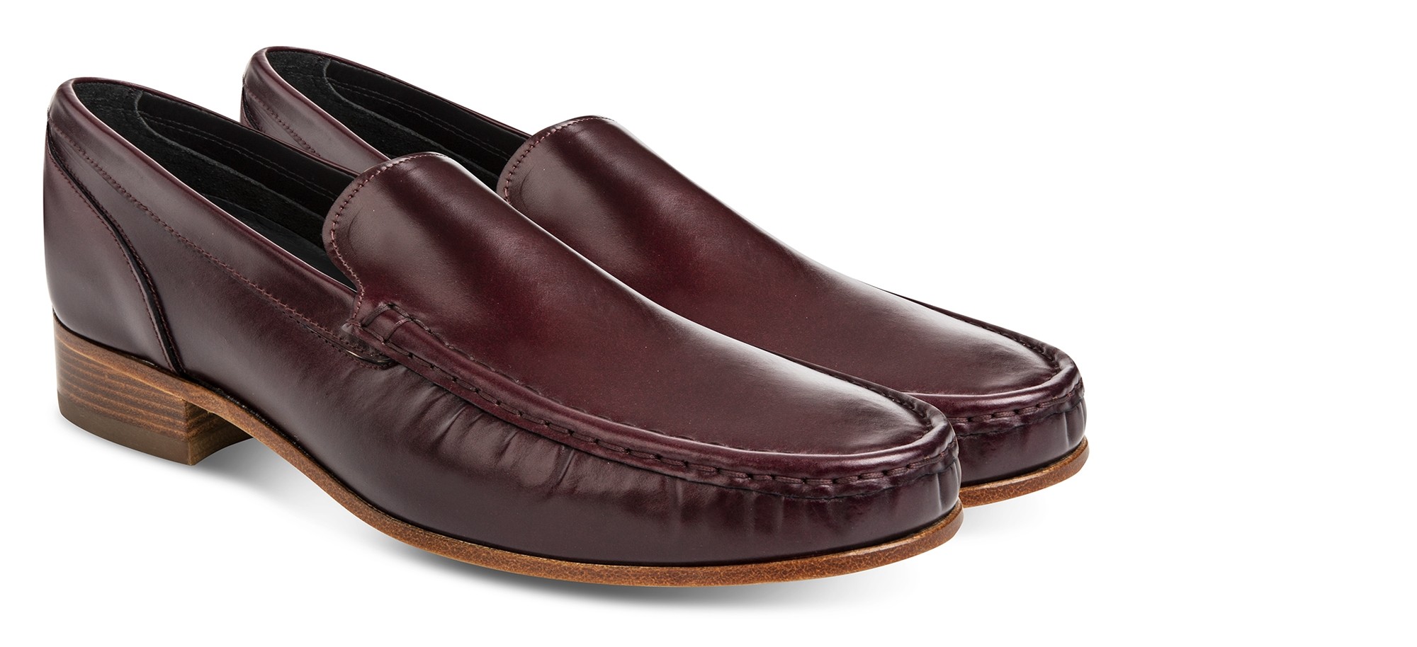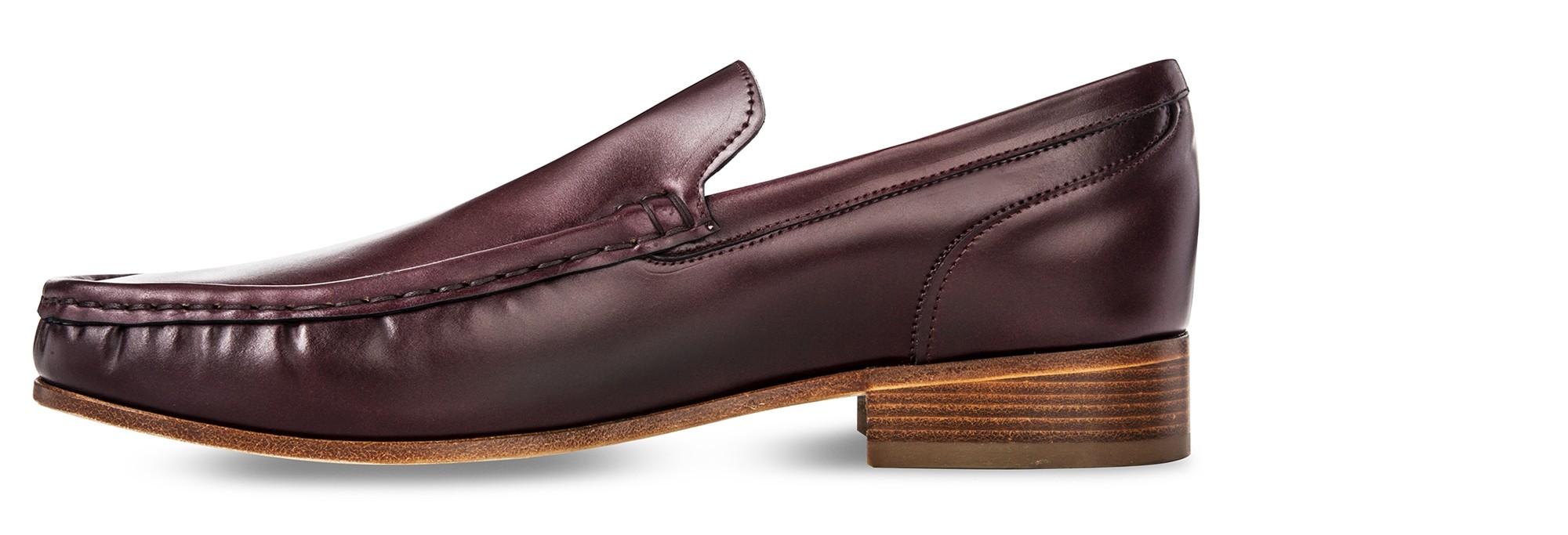Elevator loafers made of genuine shell cordovan leather featuring an intense burgundy color and stiched leather sole with anti slip rubber.