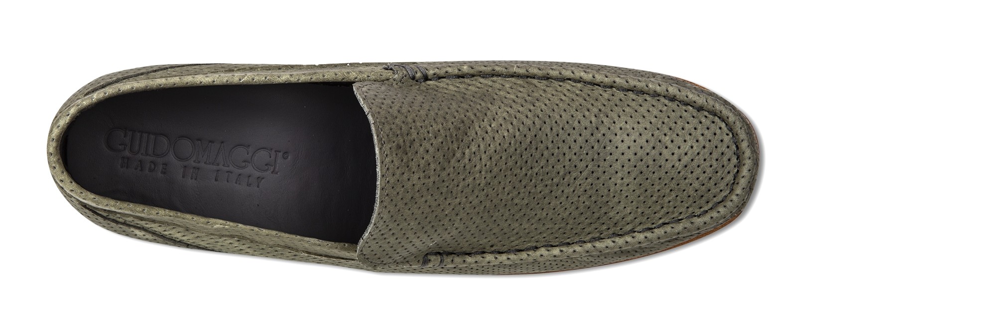 The elegant upper in perforated full grain gray leather, defines the new "Honduras" elevator loafers by GuidoMaggi.Their refined color shades make them suitable for the best occasions of this spectacular Summer 2016. The meticulous craftsmanship of the leather also allows the foot to breathe, ensuring extreme comfort.